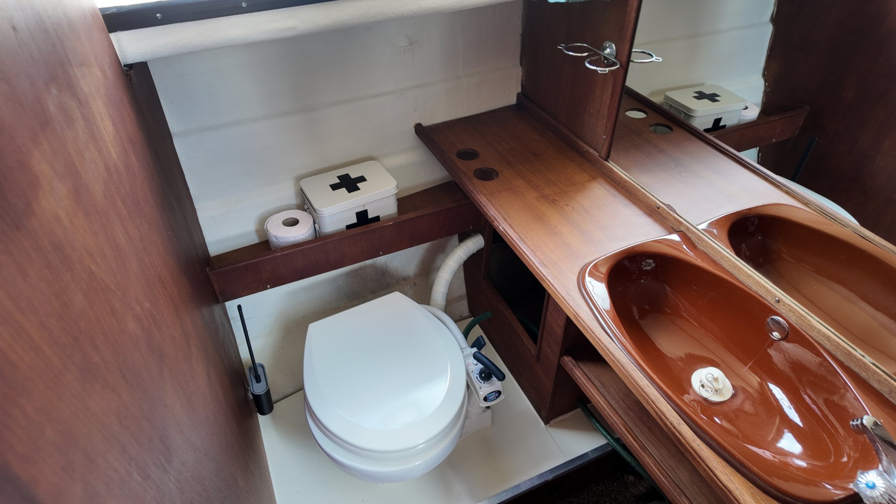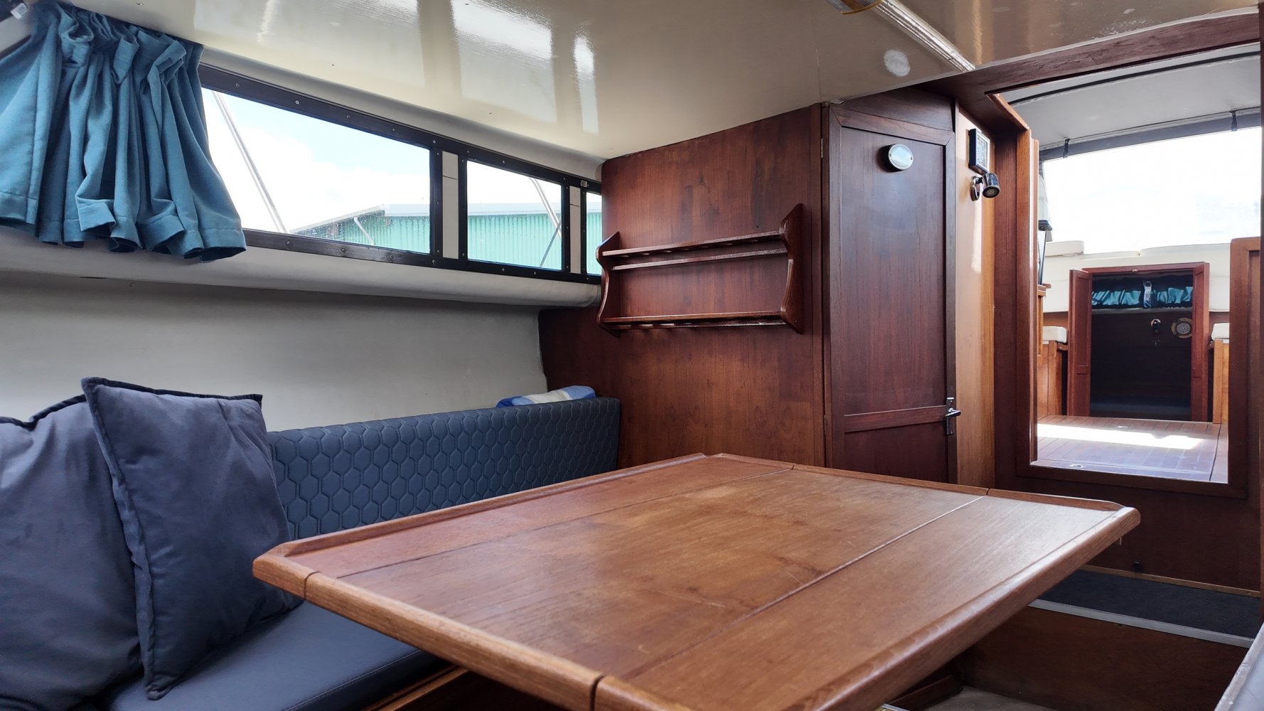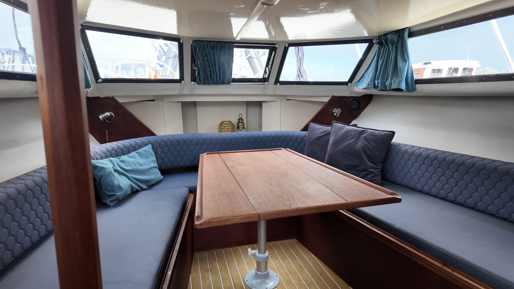 De voorkajuit is voorzien van een toiletruimte en een ruime rondzit die gemakkelijk om te bouwen is tot bed.
