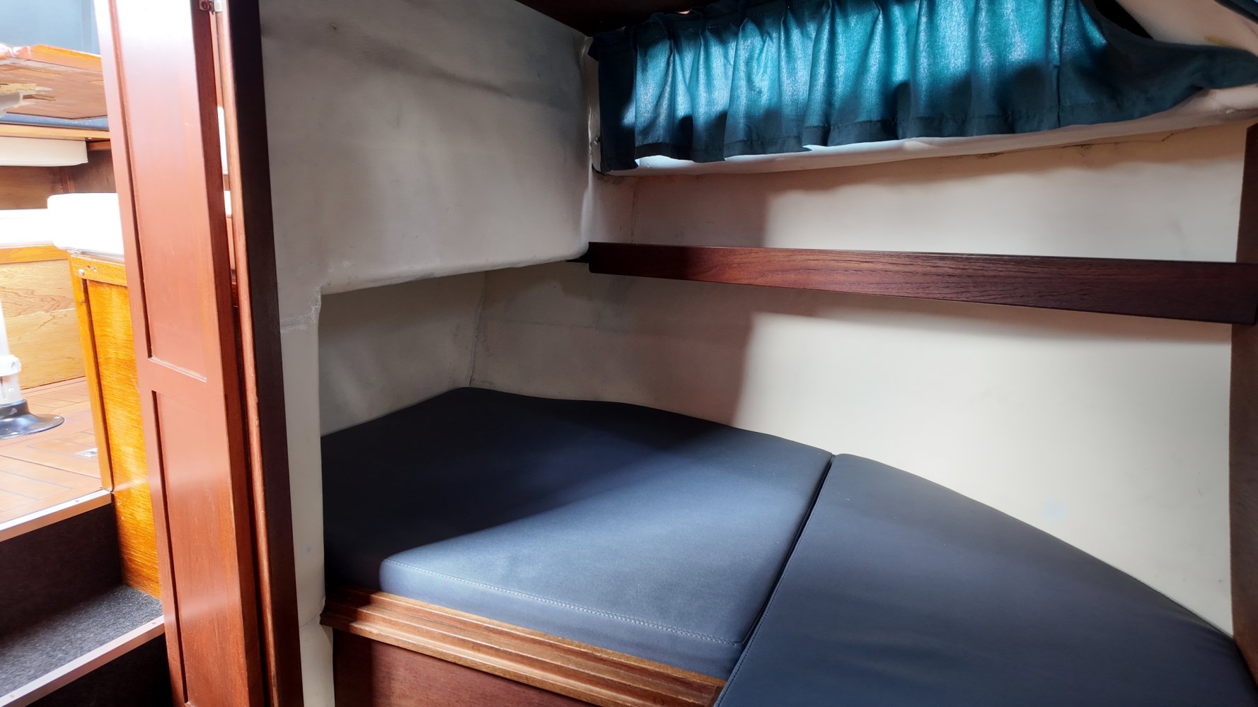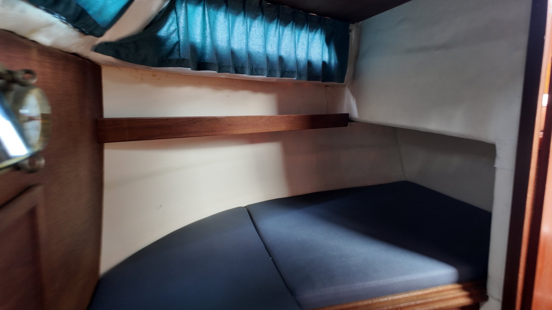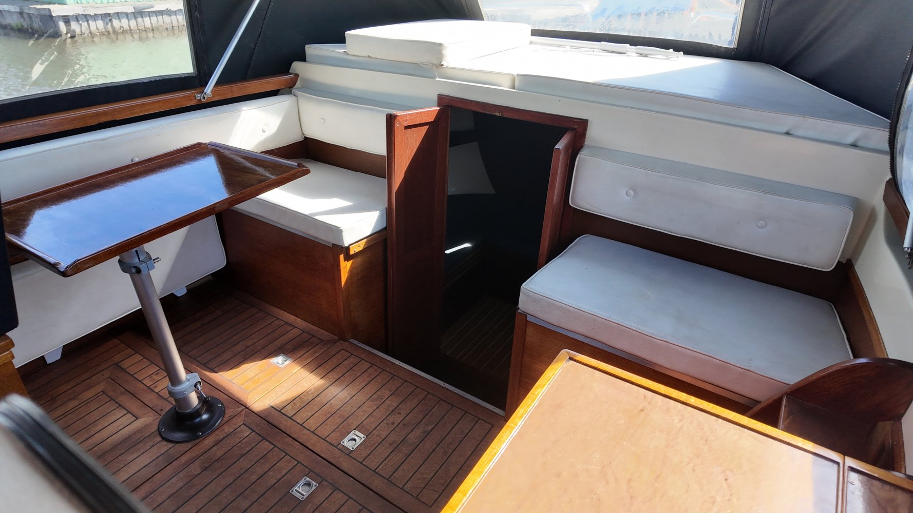 De voorkajuit is voorzien van een toiletruimte en een ruime rondzit die gemakkelijk om te bouwen is tot bed.