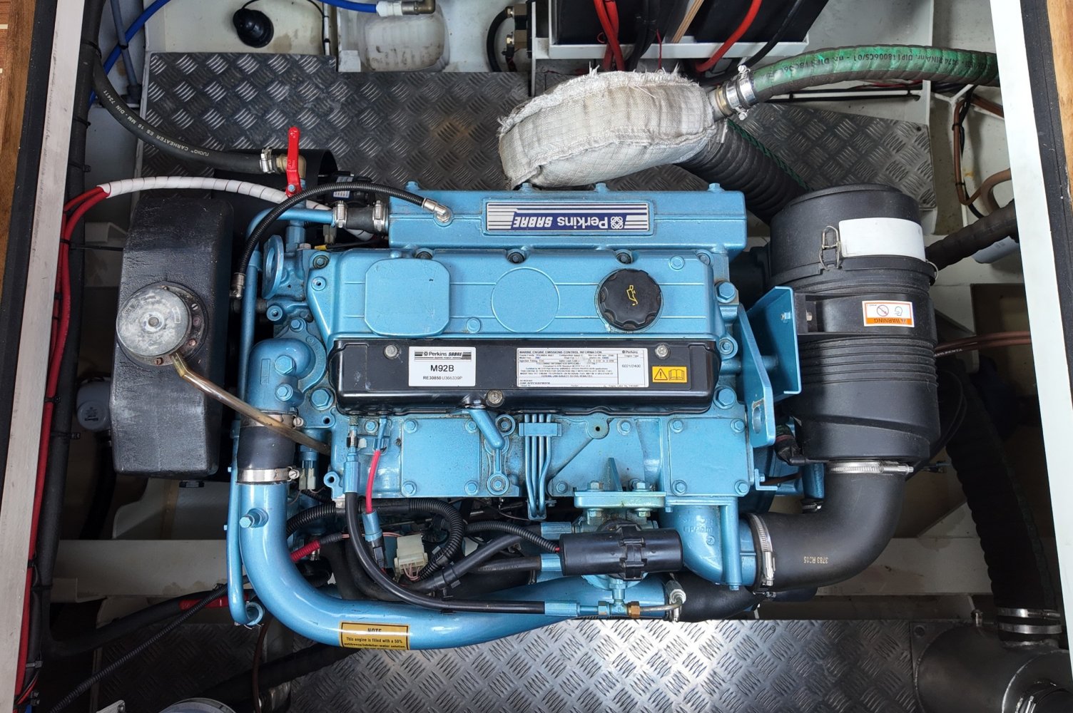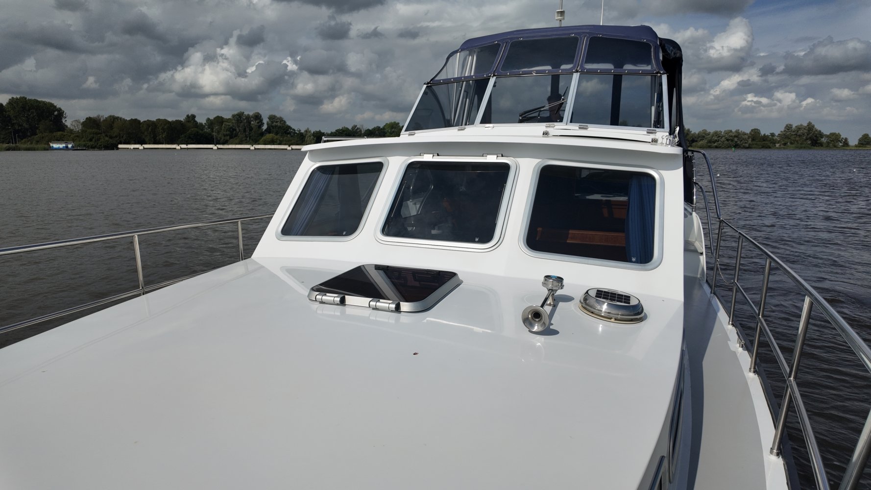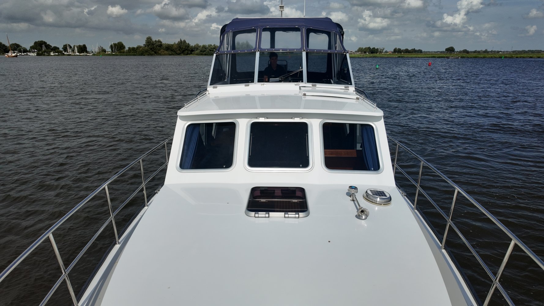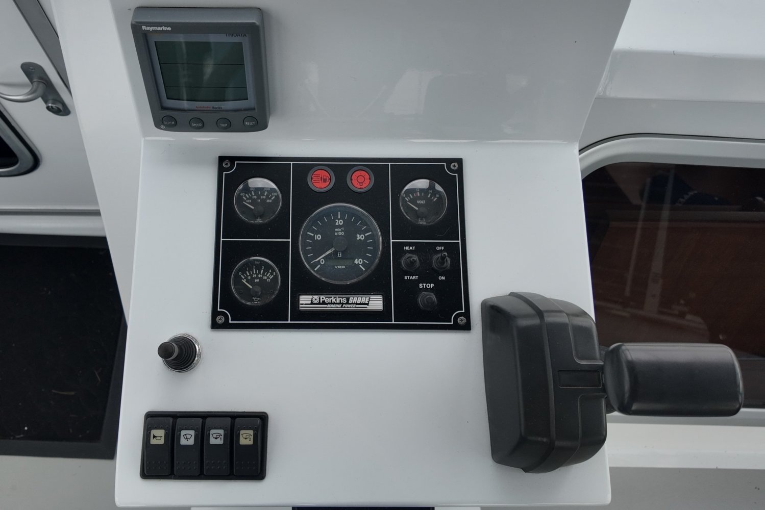 De stuurstand boven beschikt over een minimalistische doch functionele indeling. Via het luik waar u de kwaliteit van deze werfgebouwde Pedro gelijk al opmerkt loopt u met een trap de salon binnen. Deze beschikt over een binnenstuurstand en een ruime bank. Naar achteren toe vindt u aan stuurboordzijde de ingang naar de badkamer voorzien van douche en toilet. Daarnaast, midscheeps, vindt u de ingang naar de achterste slaapkamer. Deze beschikt over een half vrijstaand bed die nog wel zo gepositioneerd is dat u niet over uw partner hoeft te klimmen wanneer u 's nachts van bed moet.