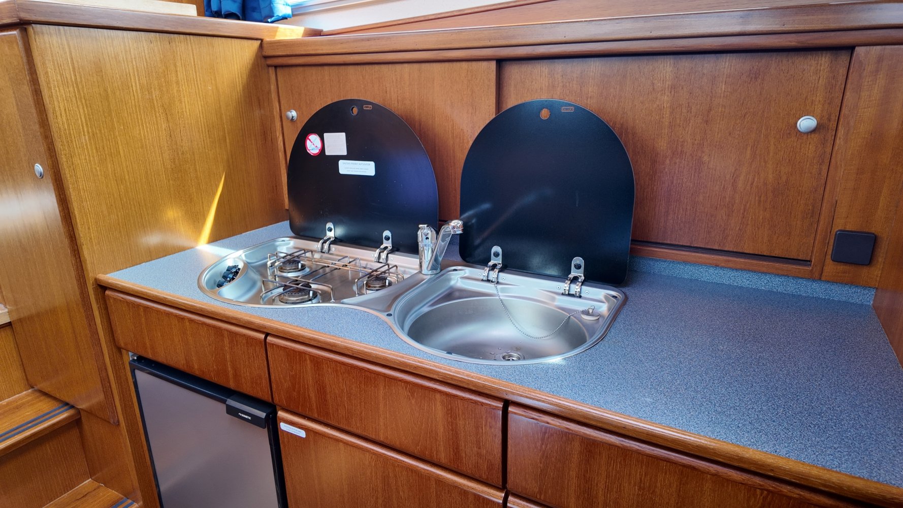 Deze koelkast vindt u in de keuken voorin het schip die overigens van alle gemakken is voorzien zoals een 3 pits gaskookplaat en wastafel. Aan de overzijde vindt u nog de dinette met helemaal voorin het schip een open voorpiek voorzien van een v-bed. Dankzij de open voorpiek voelt deze Pedro Skiron 35 ruimer aan dan zijn soortgenoten.