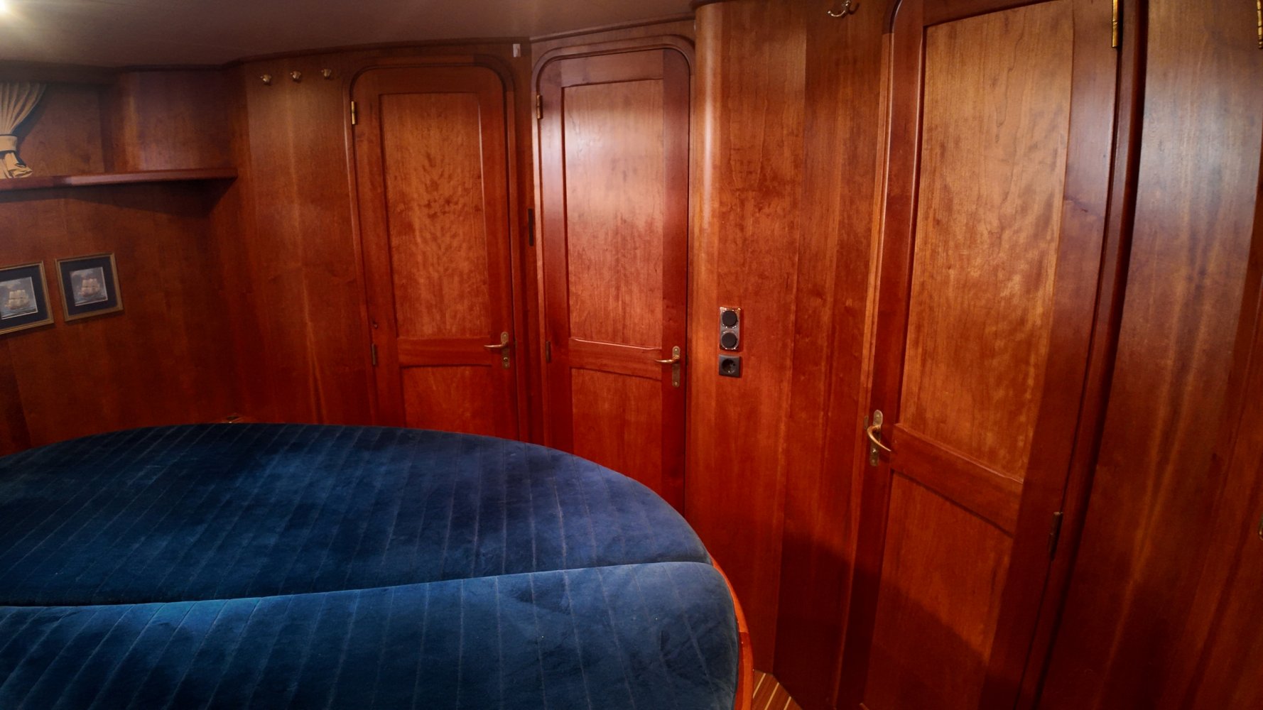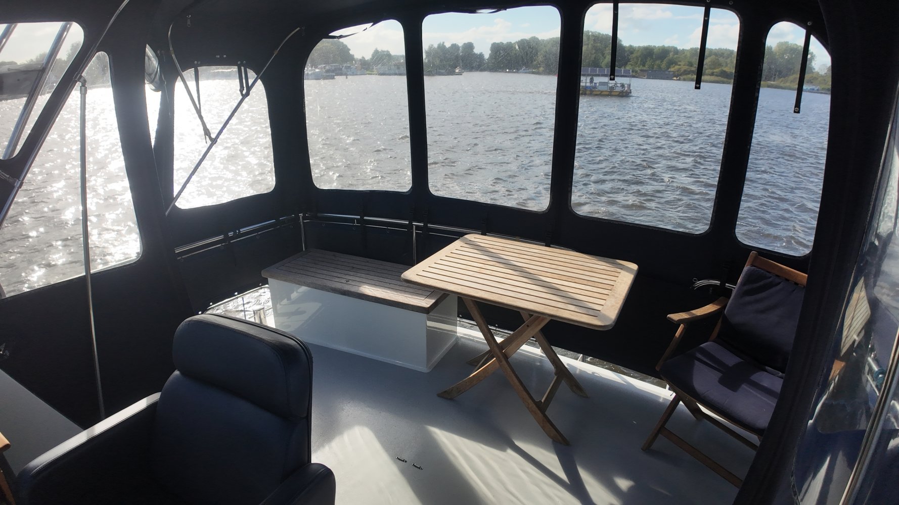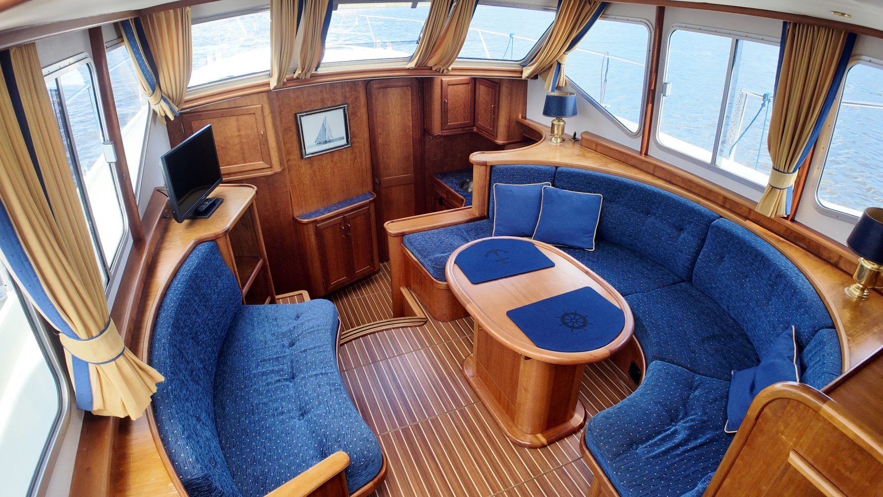 De betimmering bestaat uit massief afgewerkt kersenhout, dit geeft het schip een luxe uitstraling. In de salon bevindt zich een halve rondzit wat zorgt voor een gezellige warme sfeer.