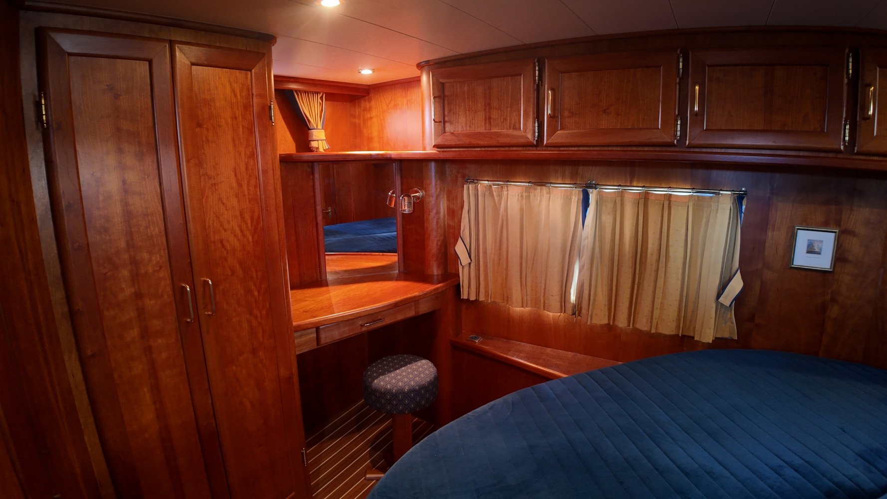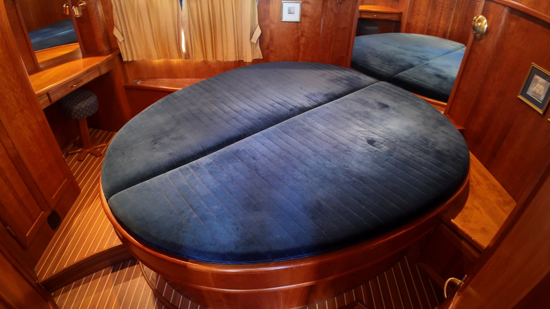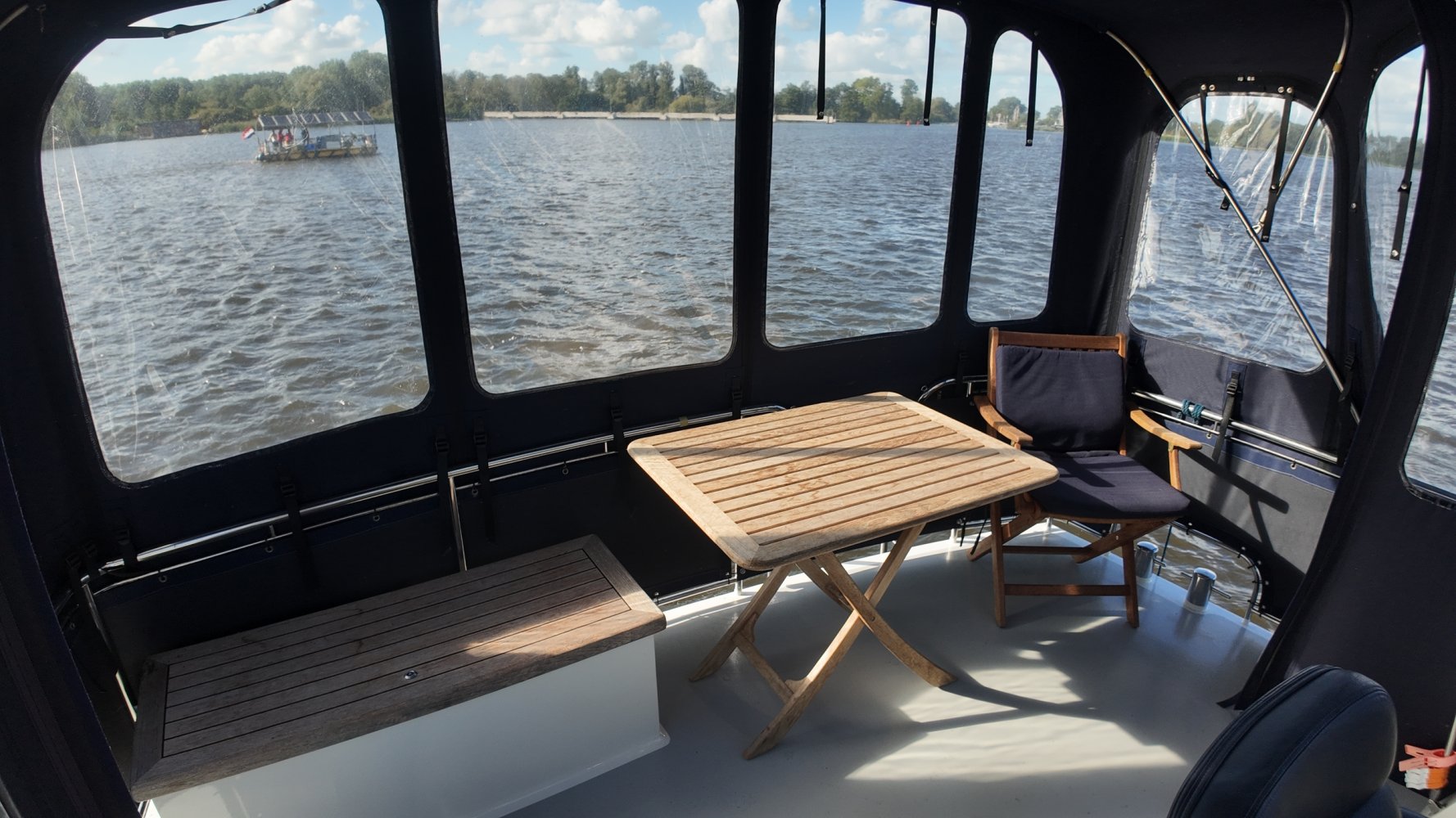 De betimmering bestaat uit massief afgewerkt kersenhout, dit geeft het schip een luxe uitstraling. In de salon bevindt zich een halve rondzit wat zorgt voor een gezellige warme sfeer.
