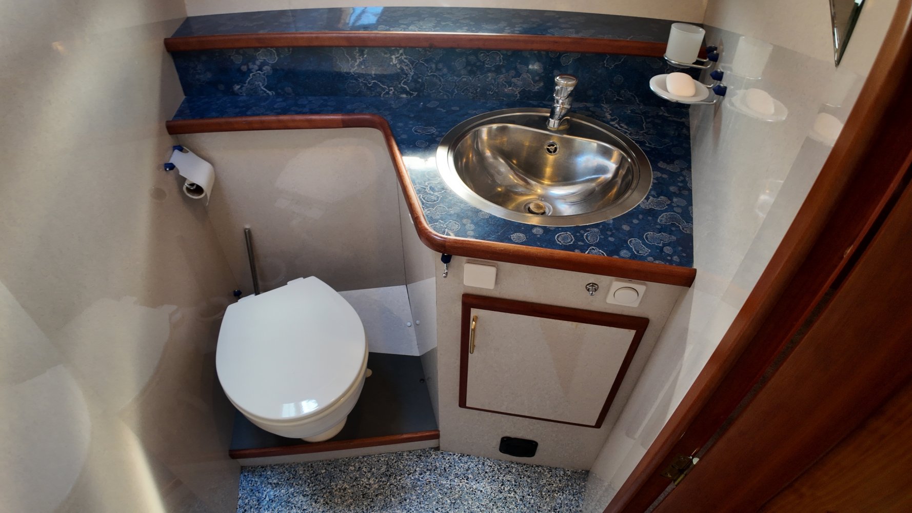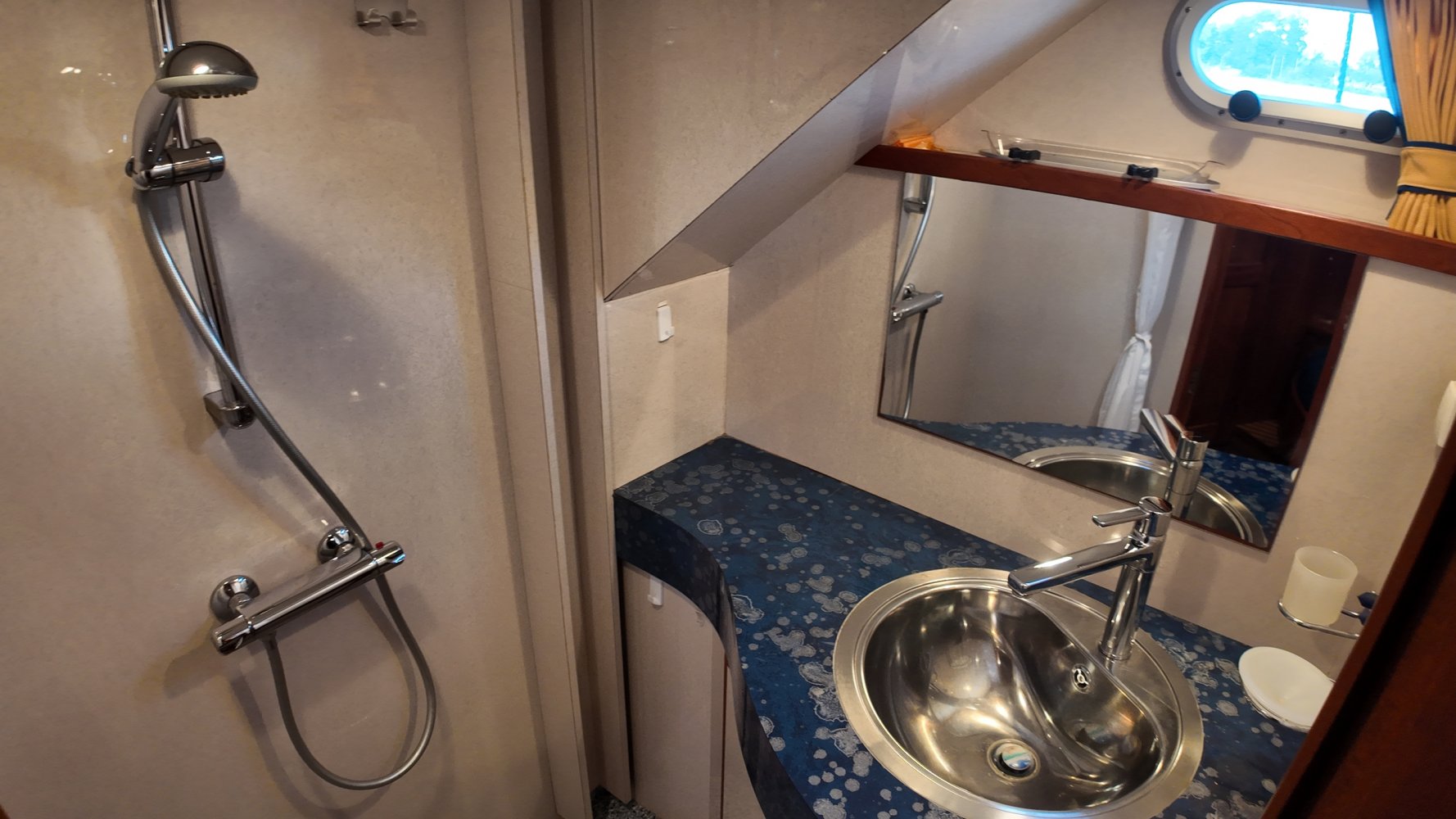Deze Thomasz 11.70 Business Class is zeer compleet, met in de royale voor- en achterkajuit een volledig vrijstaand bed voorzien van eigen sanitair (2x douche + toilet)
