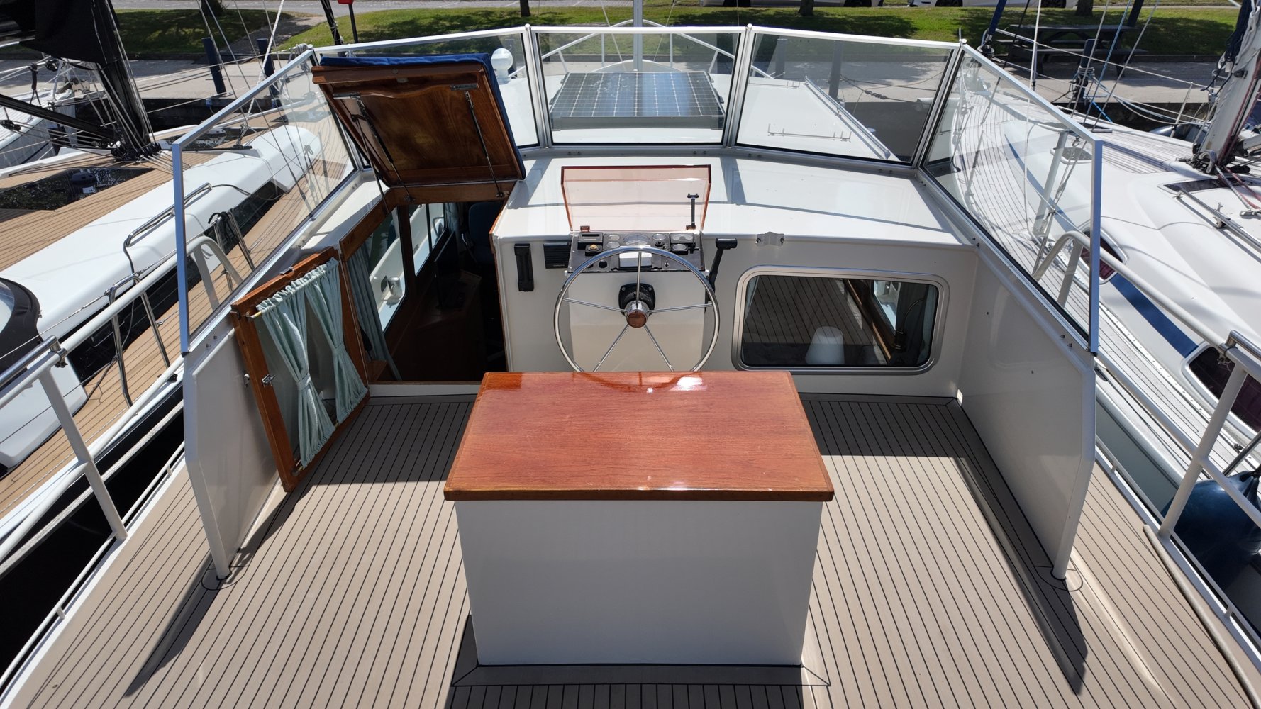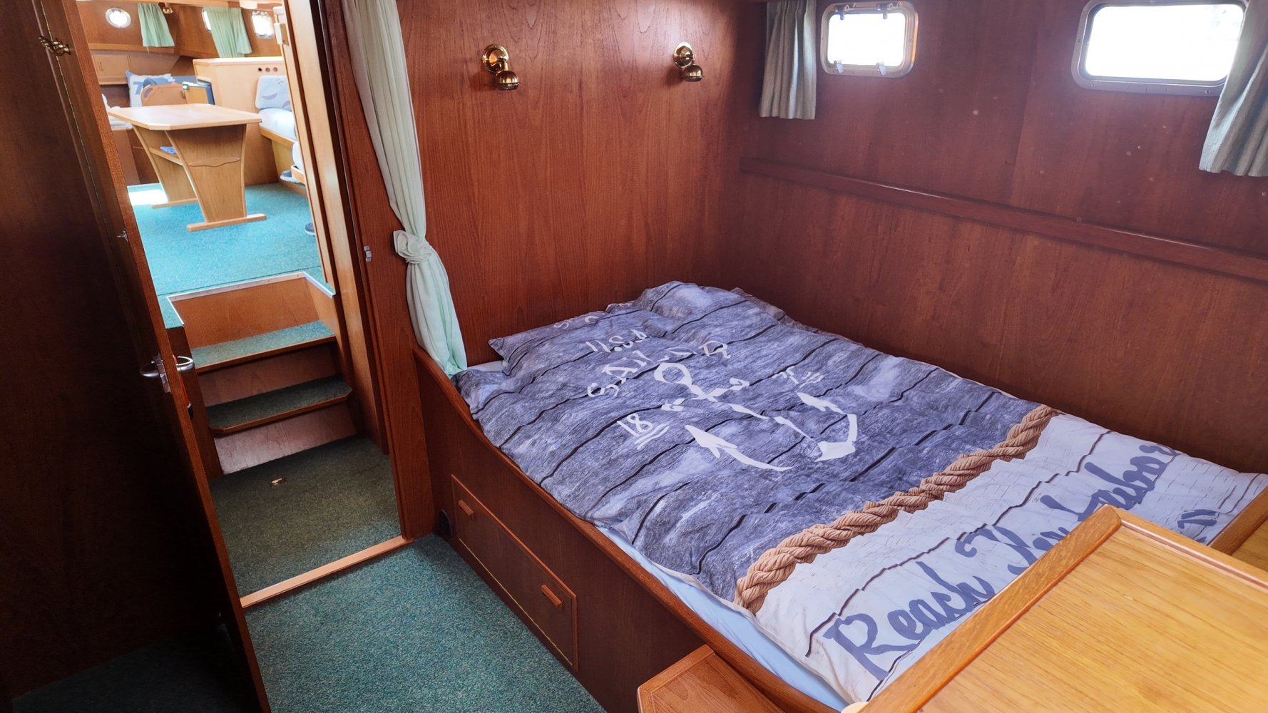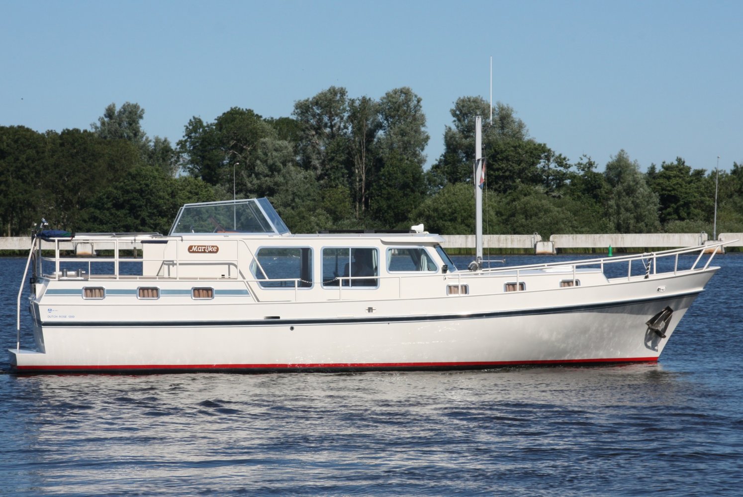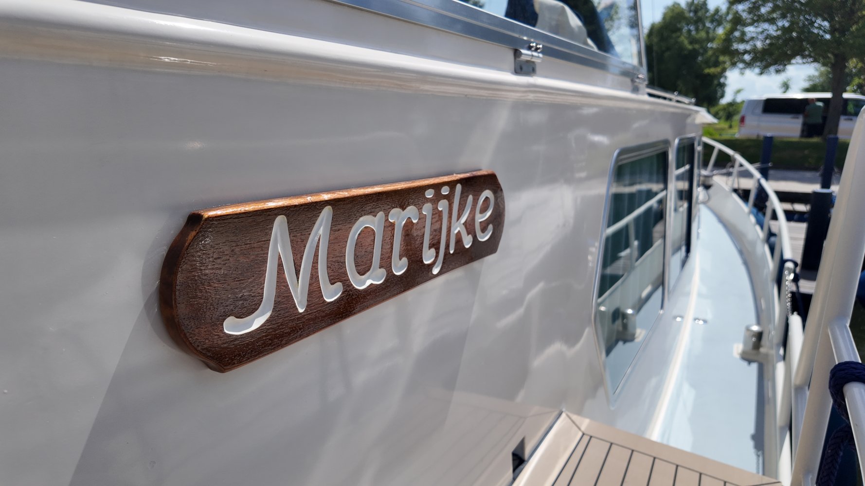 "Marijke" , de Bekebrede 12.00 Dutch-Rose spiegelkotter was het eerste schip wat wij verkochten na onze start hier in Terherne. Met "Marijke" begon het dus en die start was goed! Al binnen 2 weken was ze verkocht, wat gezien de staat etc.van het schip ook niet vreemd was. Ze was van 1e eigenaar, die er heel goed op gepast heeft, maar de tweede eigenaar doet er niet voor onder. "Marijke" is dus zeer goed onderhouden en in details nog verder verbeterd. Deze Bekebrede 12.00 Dutch-Rose spiegelkotter is met zorg en aandacht voor het detail ingetimmerd met vol-Teak. De motorruimte is smetteloos, net als de rest van het schip tot in elk hoekje!. Het is een ruim familieschip, compleet uitgerust. Het achterdek is voorzien van een nieuwe, stormvaste Bimini en elk luik of bakskist is voorzien van een huik of hoes zodat de weersinvloeden en UV straling geen verwoestende werking op het lakwerk hebben . Dit zegt wat over de eigenaar! Deze rondspant spiegelkotter is geschikt voor alle vaarwateren en direct klaar voor uw volgende vakantie! Vraag onze verkoopcrew naar meer informatie of een bezichtigingsafspraak op deze Bekebrede 12.00 Dutch Rose spiegelkotter op: +31566-769009, of info@terhernenautic.nl.
