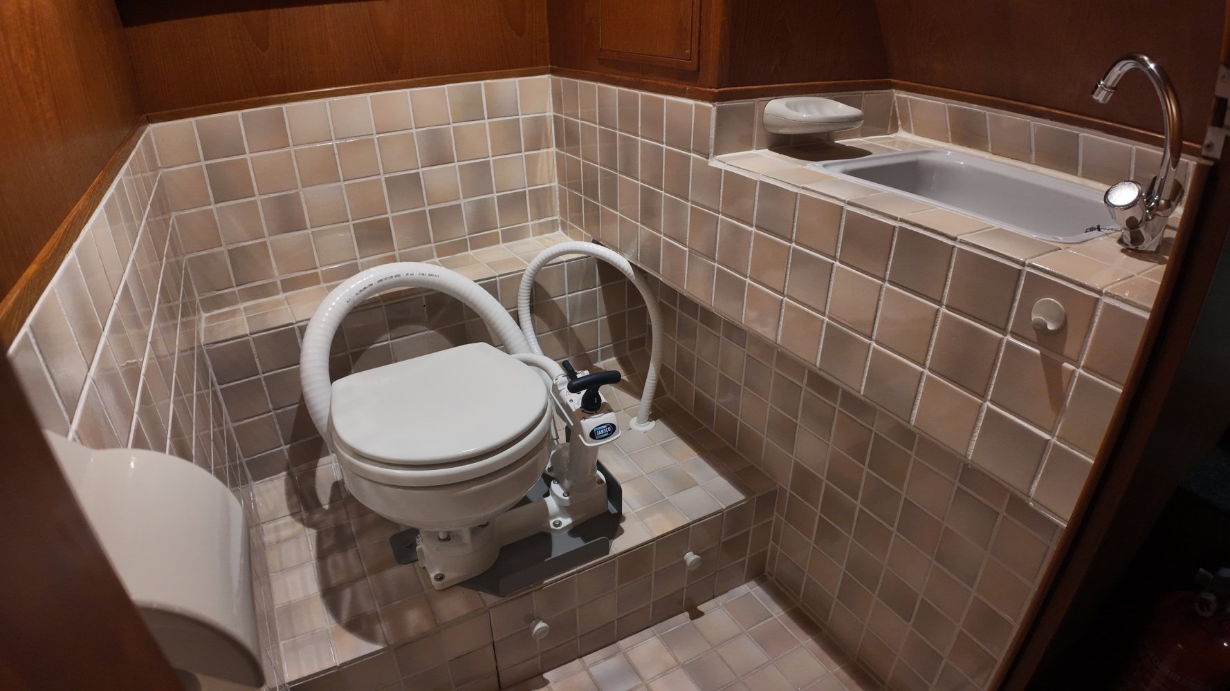 Chemisch toilet, eenvoudig om te bouwen tot handmatig normaal toilet of eventueel electrisch.