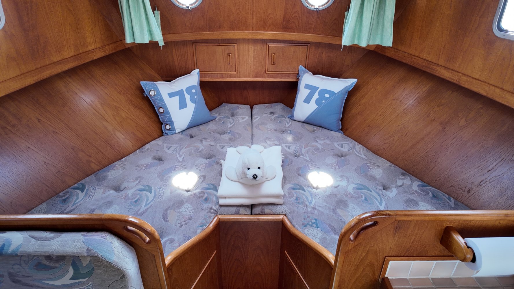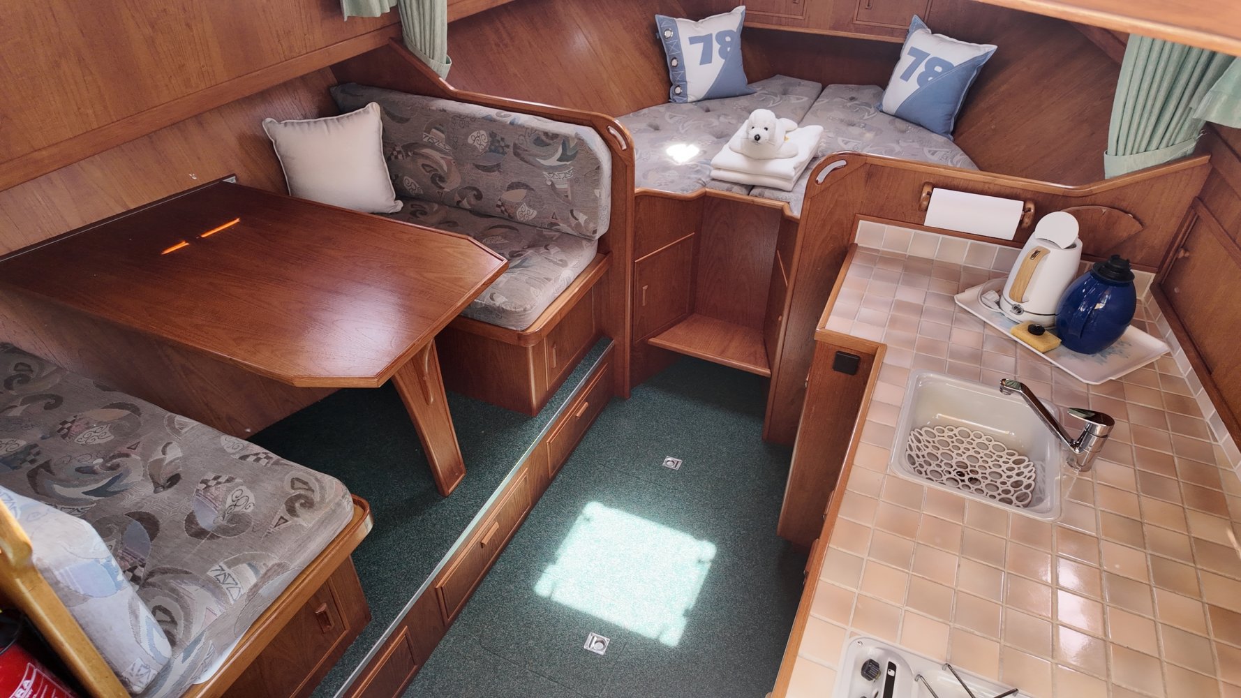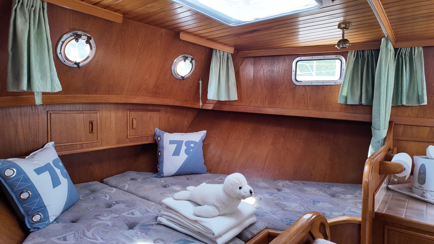 Hydraulische (handpomp) kraan op achterschip om E-Bikes makkelijk aan boord te hijsen. Fietsendrager aanwezig.