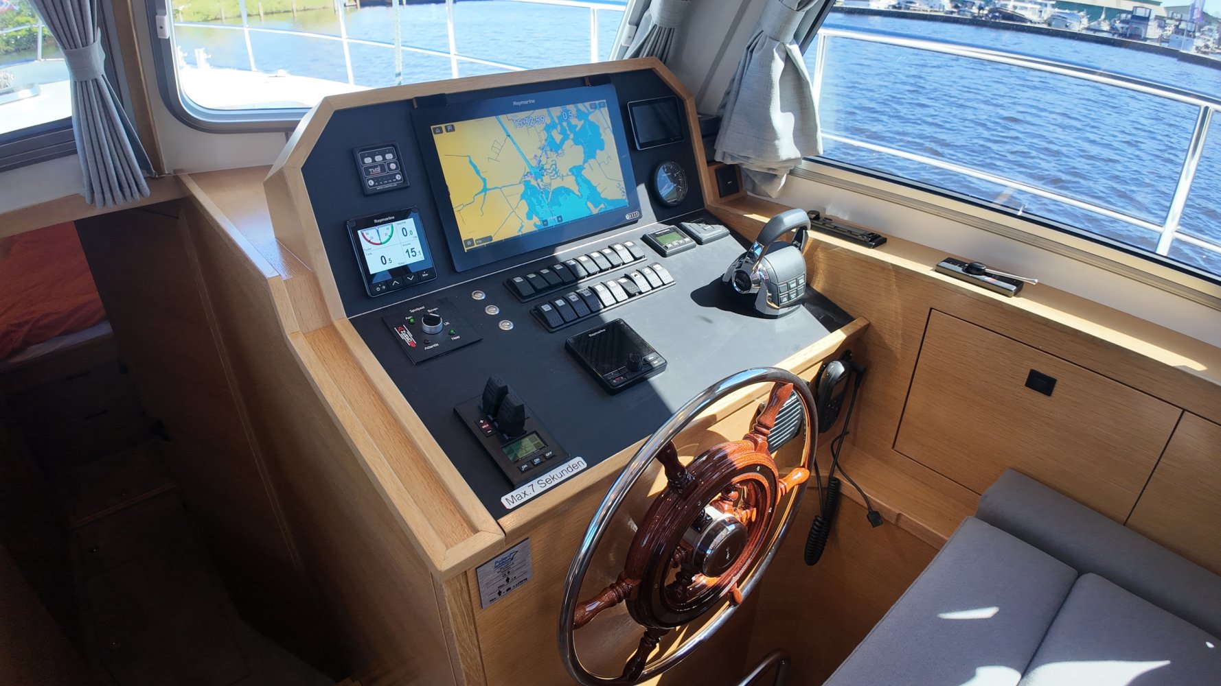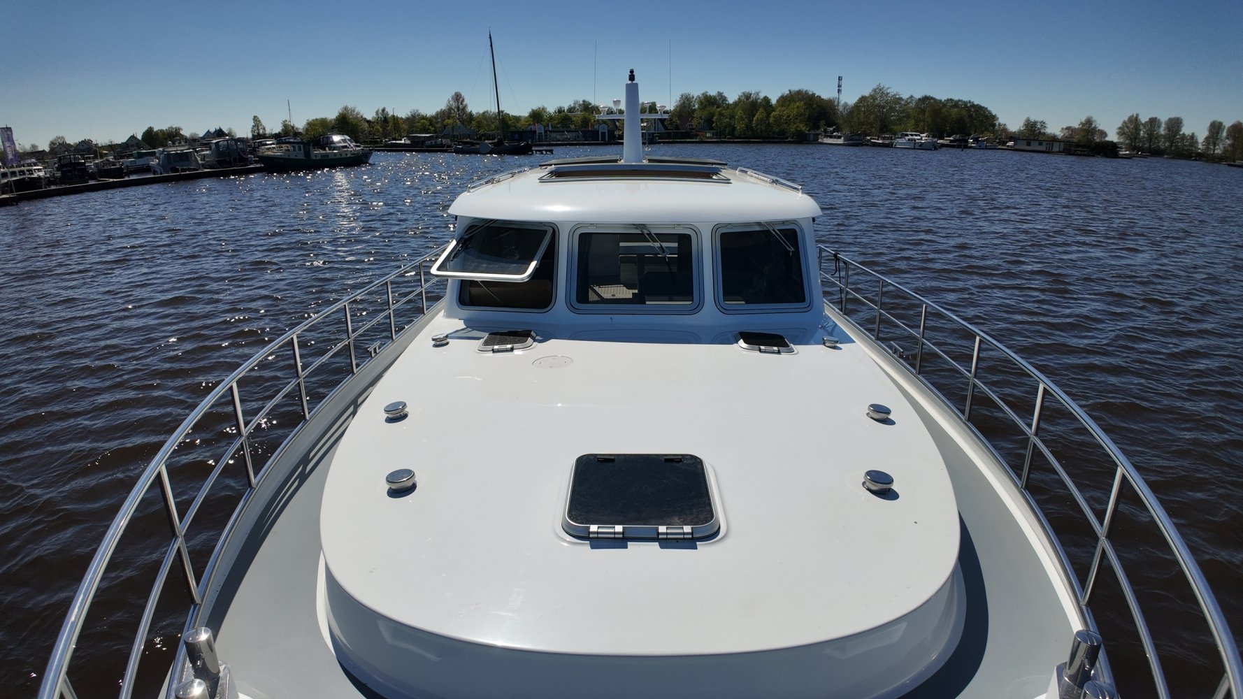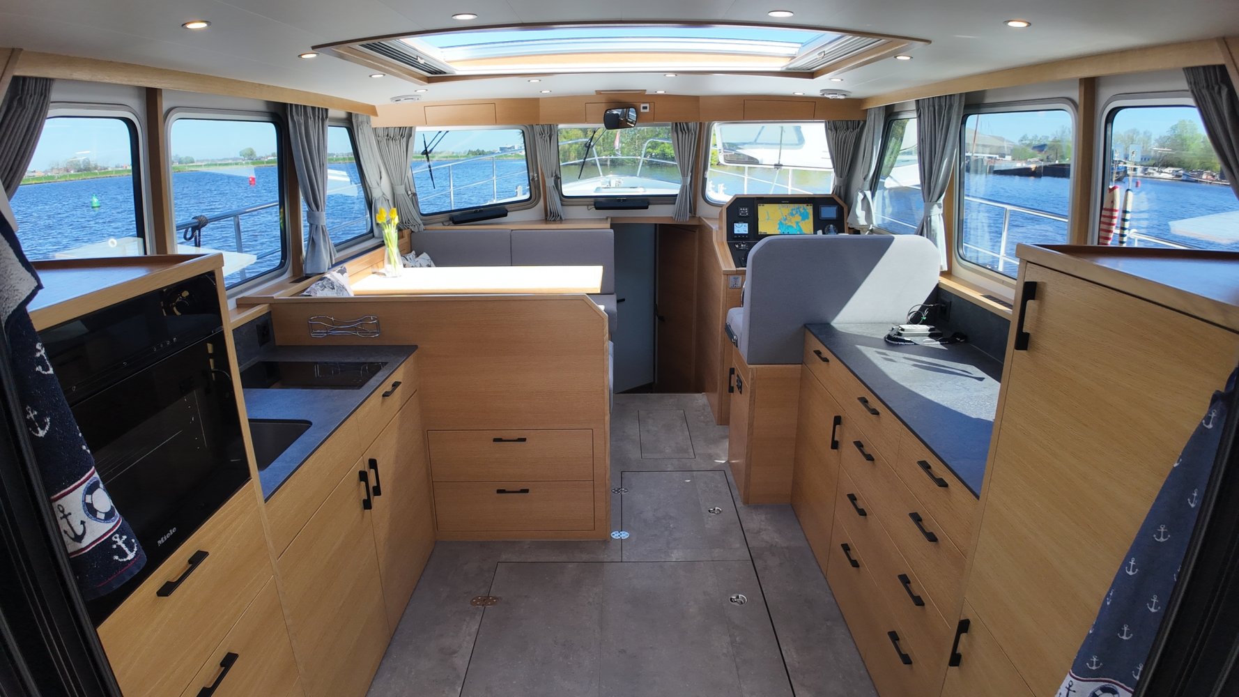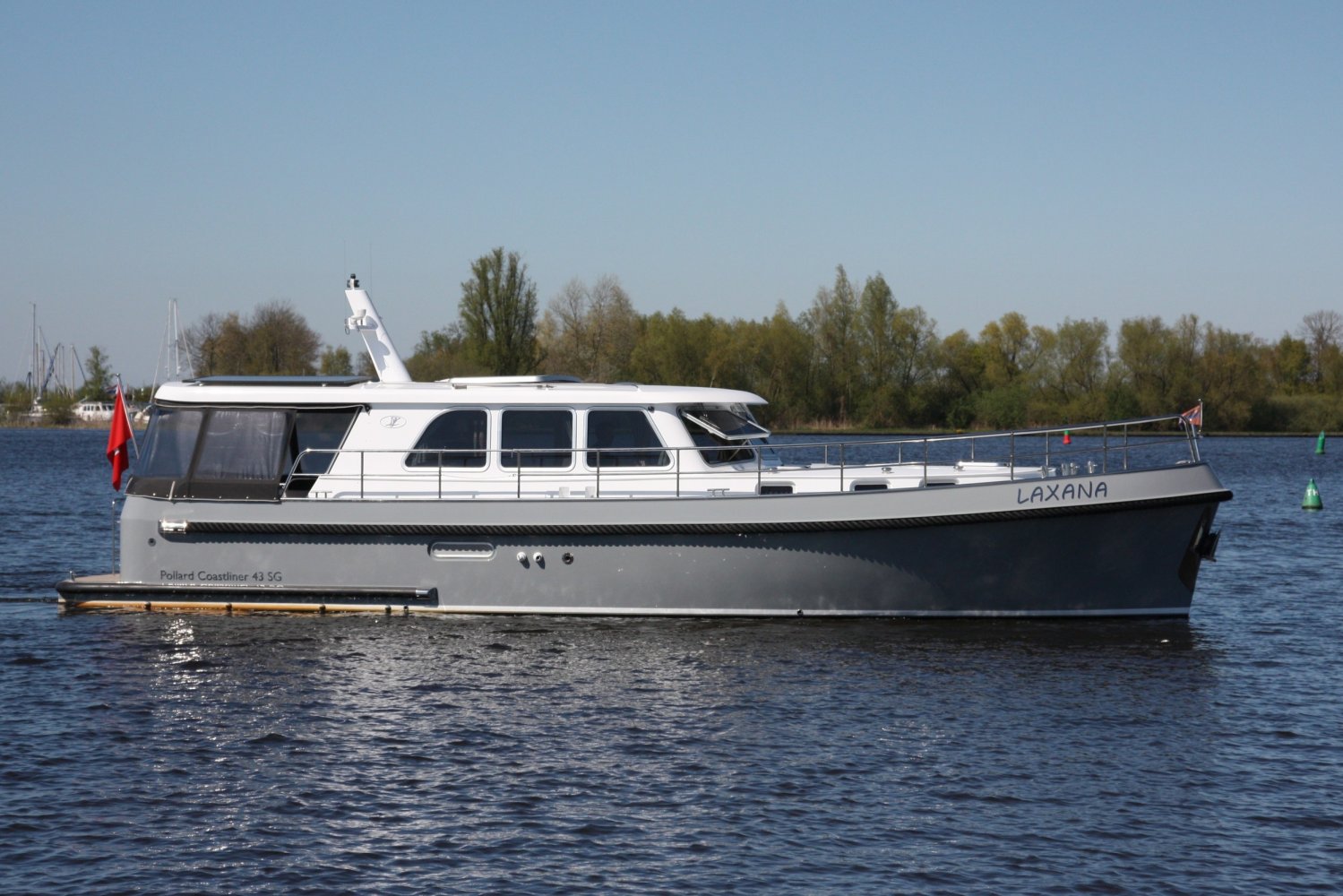 A Pollard Coastliner 43 SG (OK) from 2023, in almost new condition and featuring an extremely comprehensive specification. The standard equipment on this vessel is too extensive to list here. You simply must come and view this vessel at our premises and let it work its magic on you. Let us list a few highlights to whet your appetite; this custom-built Pollard Coastliner 43 SG is, of course, very well insulated and fitted with double-glazing and central heating, making it suitable for use in all seasons; it even has air conditioning. There is even a separate heating system for the open cockpit! Every conceivable navigation aid is fitted, including proportionally controlled bow and stern thrusters (140 kgf), naturally with remote control, Hydronautica engine control, a full range of Raymarine equipment including autopilot/river pilot (tiller), AIS etc., a spud pole, an electric sunroof – you name it. We will try to give a good impression of this vessel through our photo and video presentation, but it is even better to experience this Pollard Coastliner 43 SG ‘live’ with us. To do so, please call our sales team on: 0031-566769009.