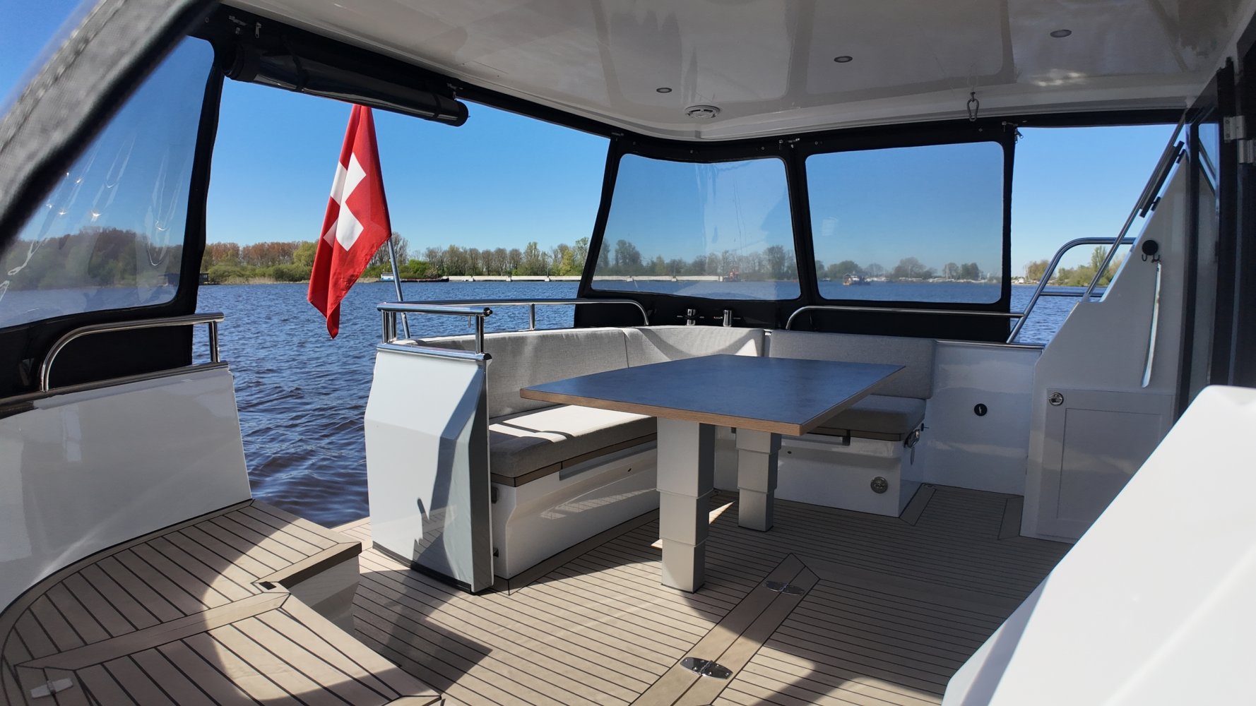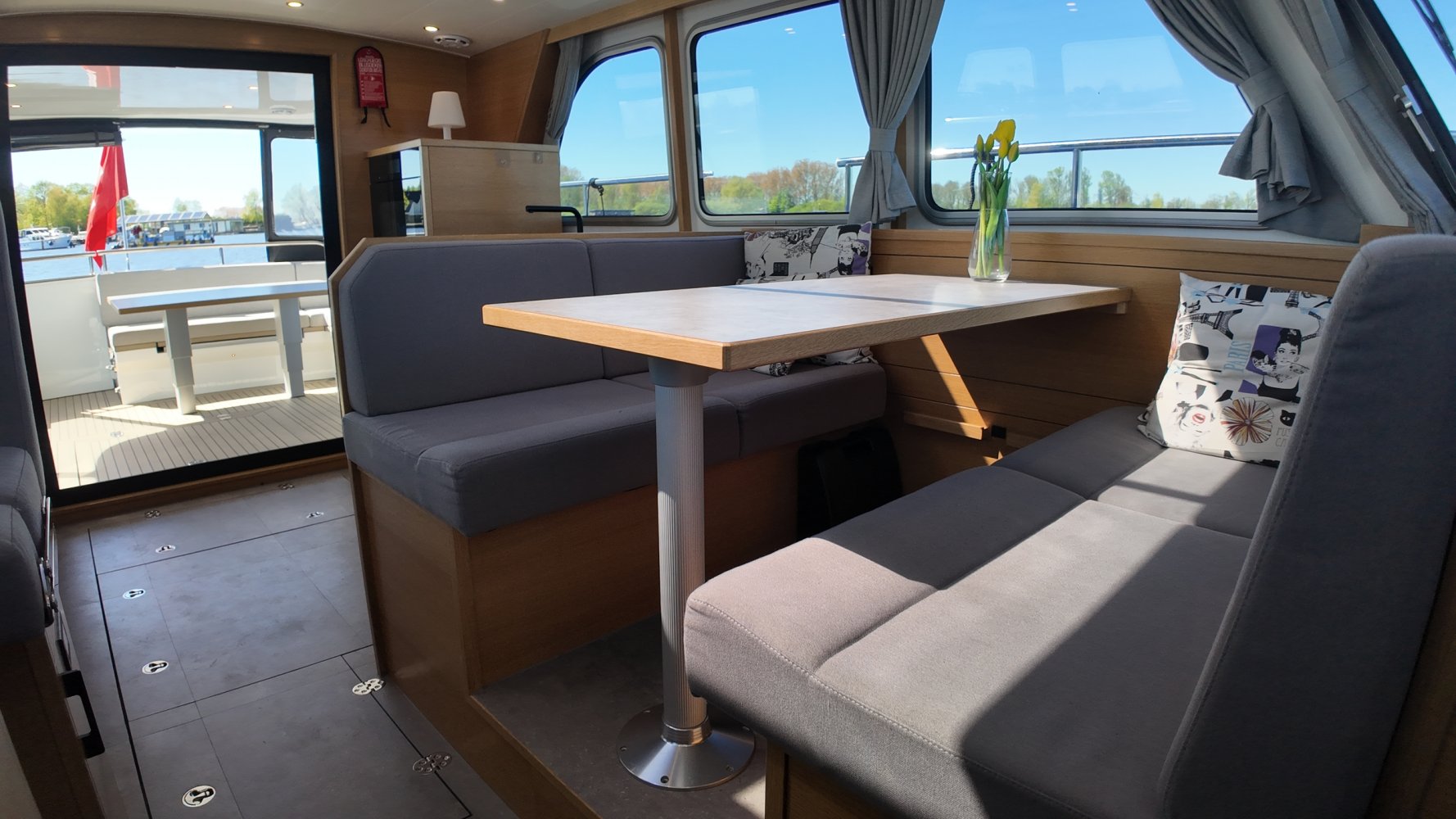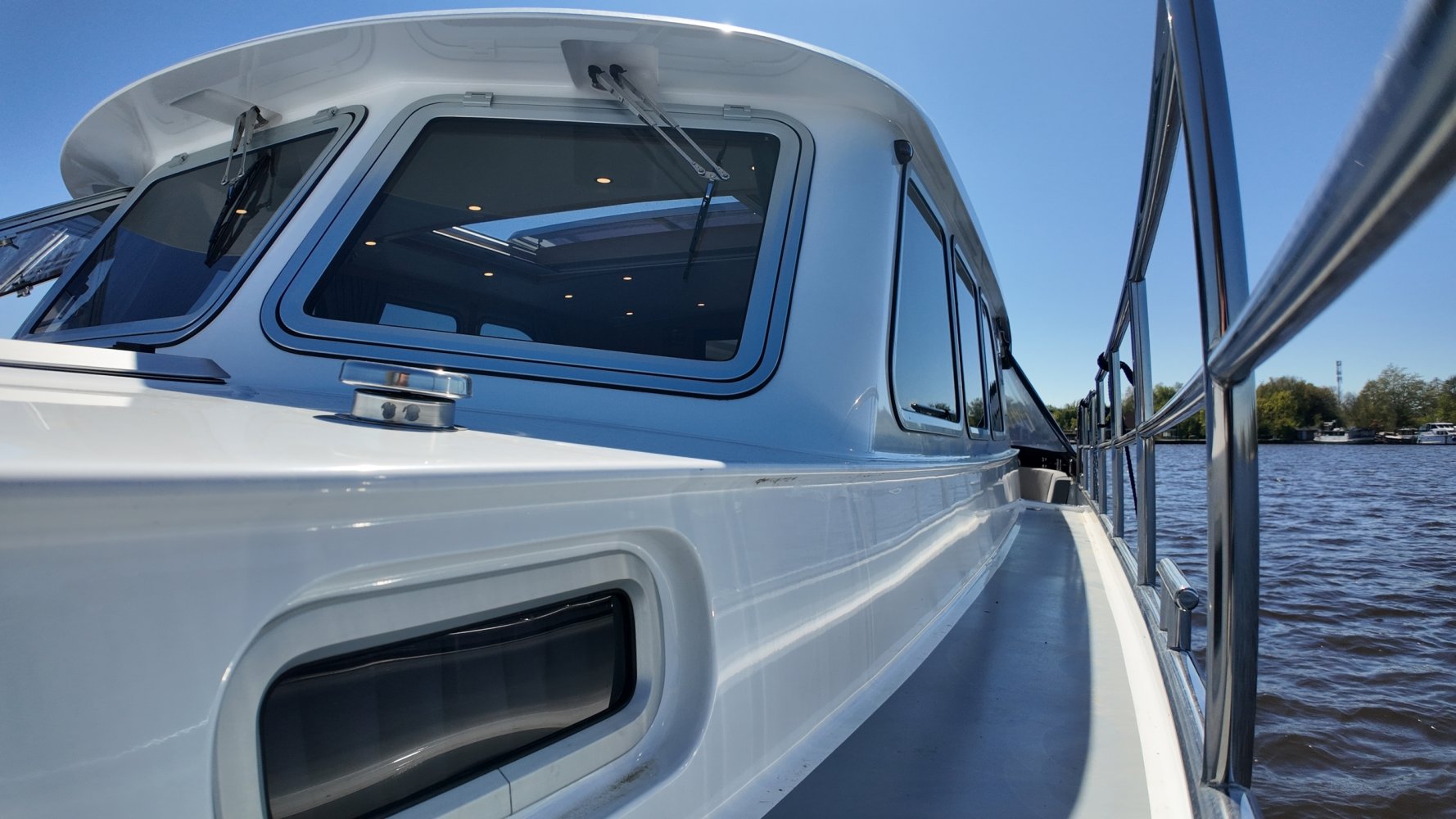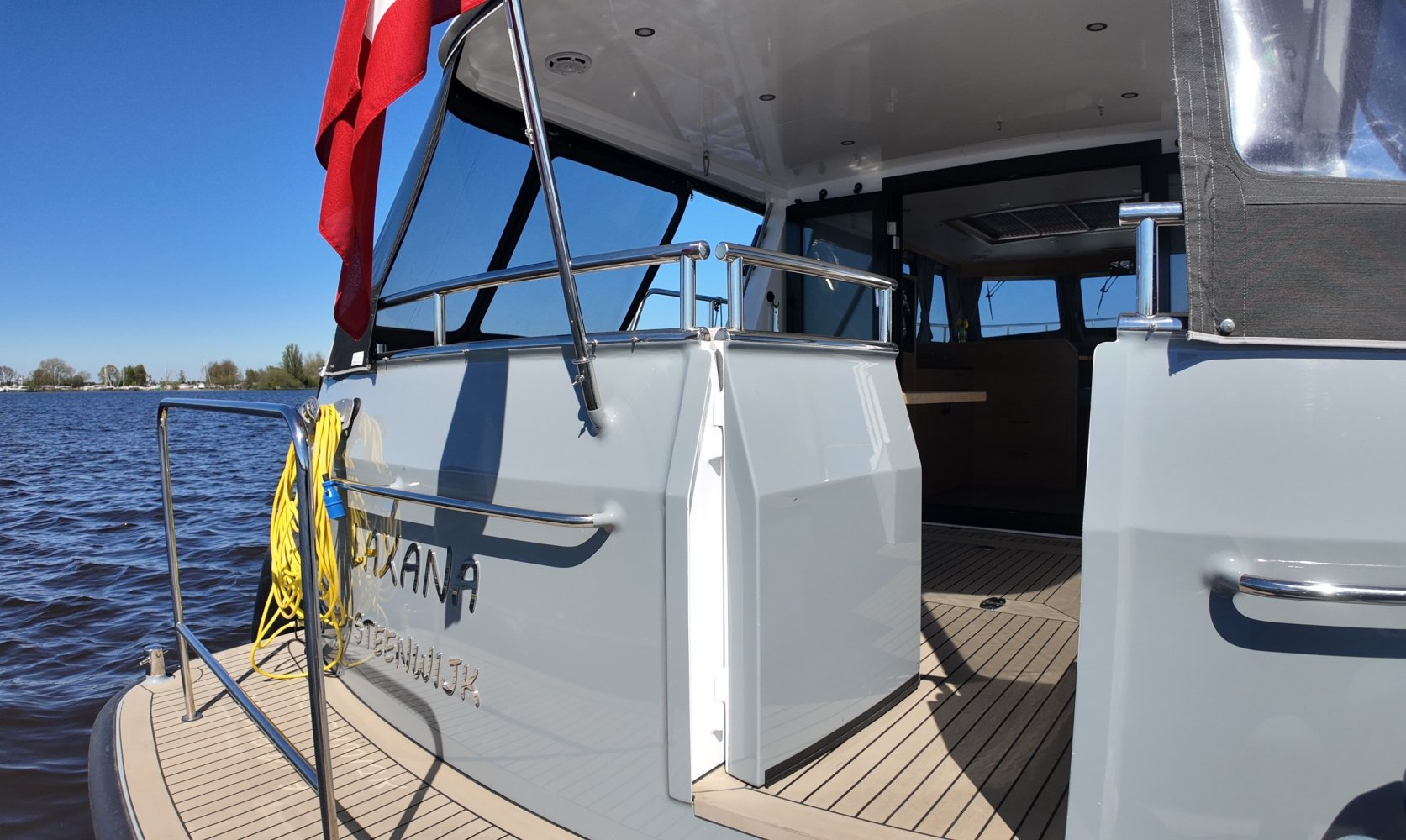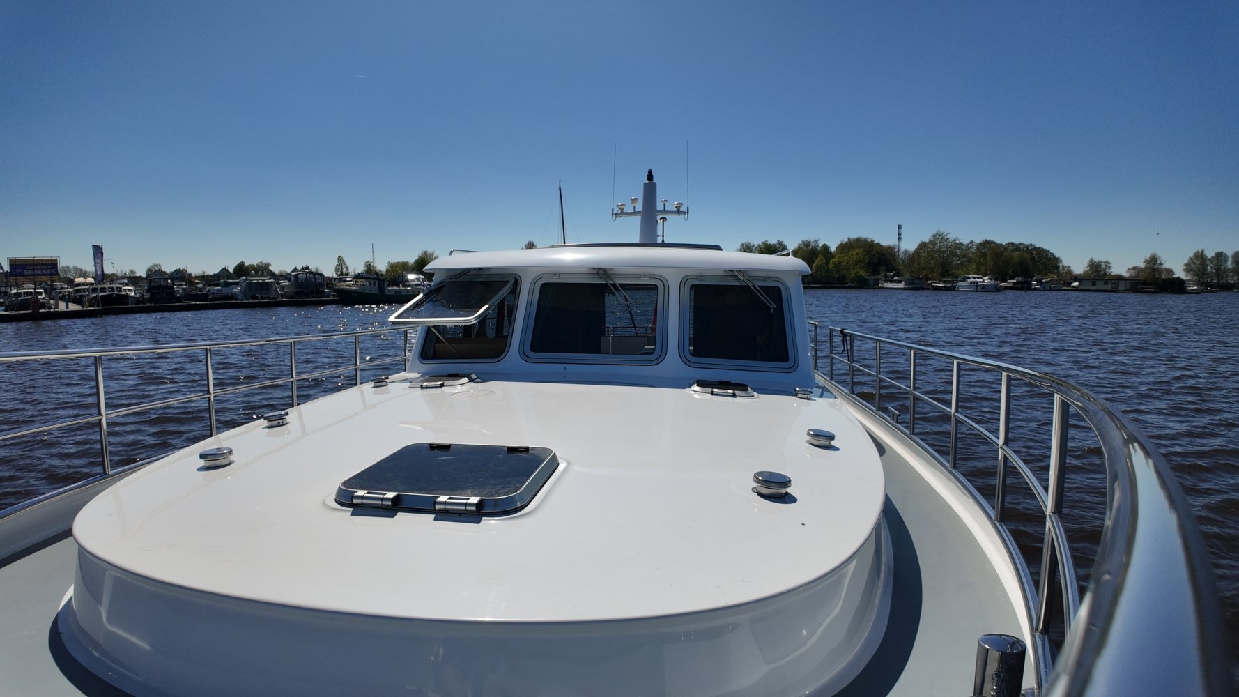 A Pollard Coastliner 43 SG (OK) from 2023, in almost new condition and featuring an extremely comprehensive specification. The standard equipment on this vessel is too extensive to list here. You simply must come and view this vessel at our premises and let it work its magic on you. Let us list a few highlights to whet your appetite; this custom-built Pollard Coastliner 43 SG is, of course, very well insulated and fitted with double-glazing and central heating, making it suitable for use in all seasons; it even has air conditioning. There is even a separate heating system for the open cockpit! Every conceivable navigation aid is fitted, including proportionally controlled bow and stern thrusters (140 kgf), naturally with remote control, Hydronautica engine control, a full range of Raymarine equipment including autopilot/river pilot (tiller), AIS etc., a spud pole, an electric sunroof – you name it. We will try to give a good impression of this vessel through our photo and video presentation, but it is even better to experience this Pollard Coastliner 43 SG ‘live’ with us. To do so, please call our sales team on: 0031-566769009.
