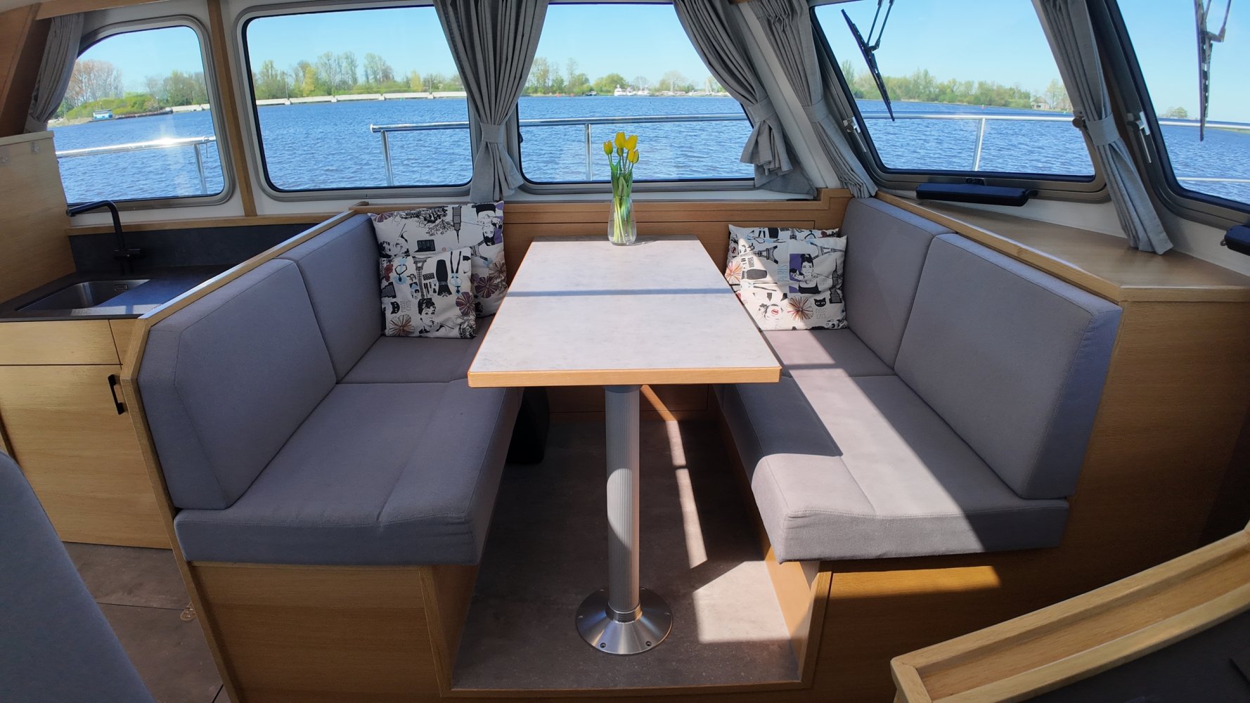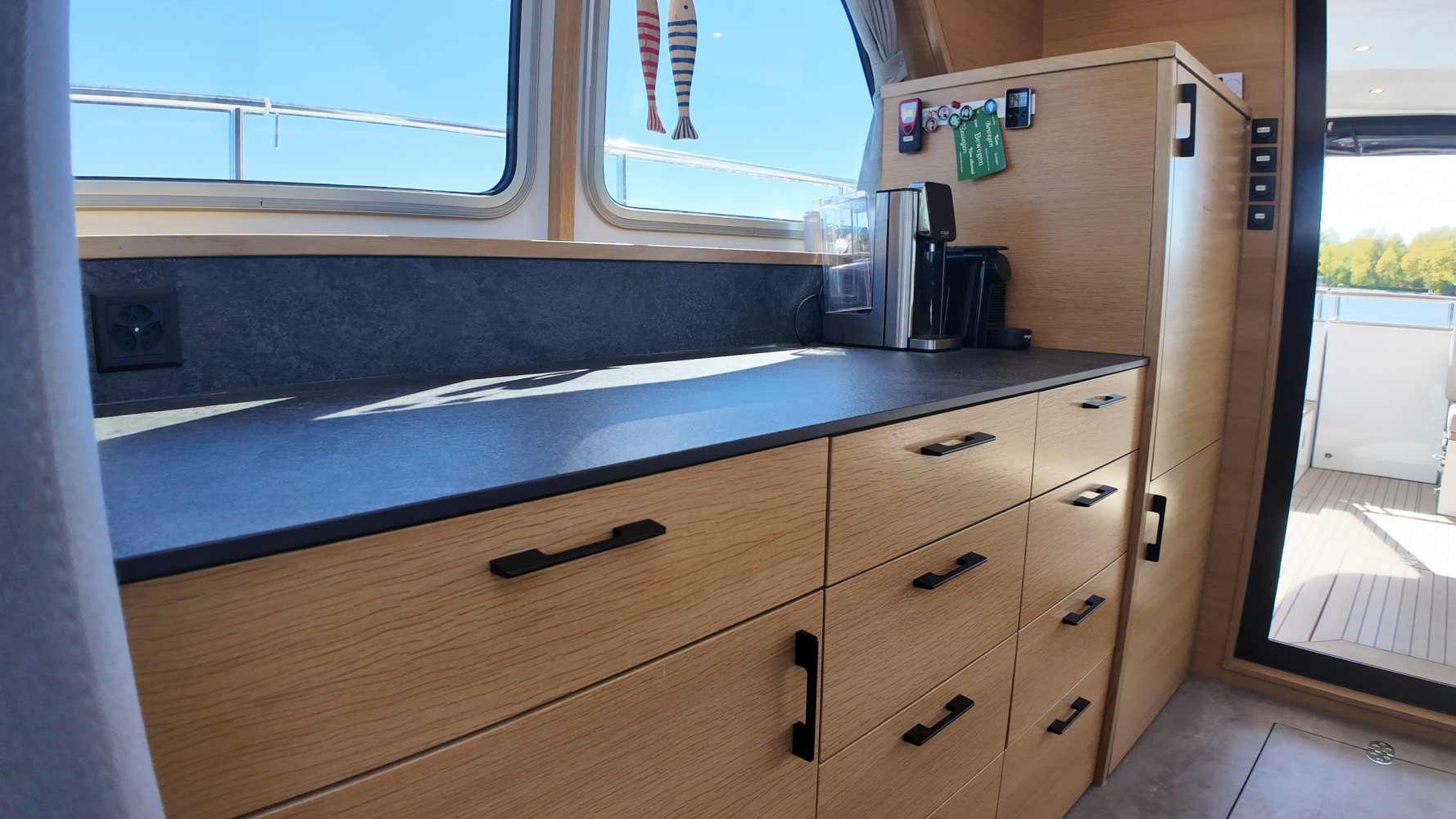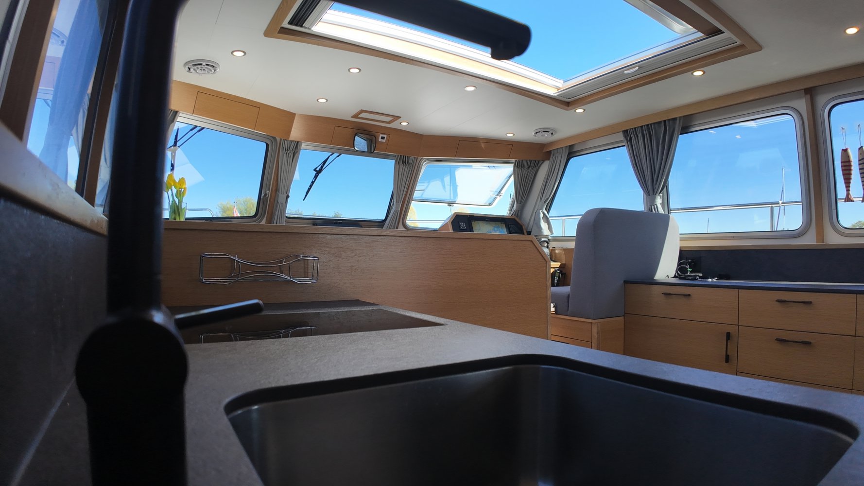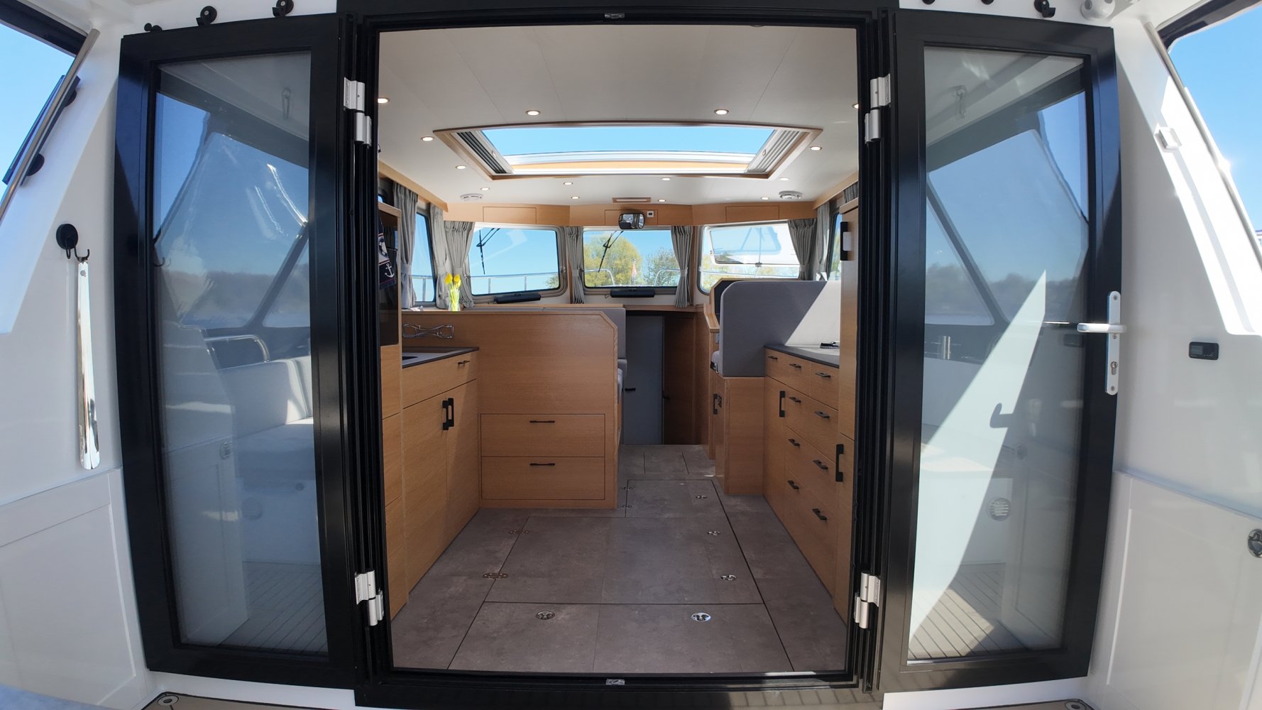 A Pollard Coastliner 43 SG (OK) from 2023, in almost new condition and featuring an extremely comprehensive specification. The standard equipment on this vessel is too extensive to list here. You simply must come and view this vessel at our premises and let it work its magic on you. Let us list a few highlights to whet your appetite; this custom-built Pollard Coastliner 43 SG is, of course, very well insulated and fitted with double-glazing and central heating, making it suitable for use in all seasons; it even has air conditioning. There is even a separate heating system for the open cockpit! Every conceivable navigation aid is fitted, including proportionally controlled bow and stern thrusters (140 kgf), naturally with remote control, Hydronautica engine control, a full range of Raymarine equipment including autopilot/river pilot (tiller), AIS etc., a spud pole, an electric sunroof – you name it. We will try to give a good impression of this vessel through our photo and video presentation, but it is even better to experience this Pollard Coastliner 43 SG ‘live’ with us. To do so, please call our sales team on: 0031-566769009.