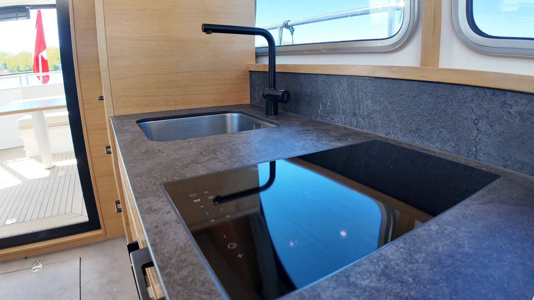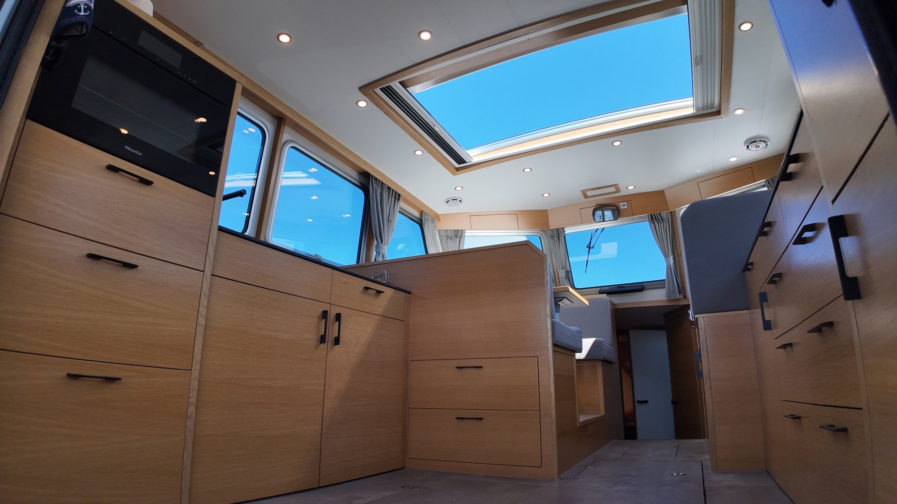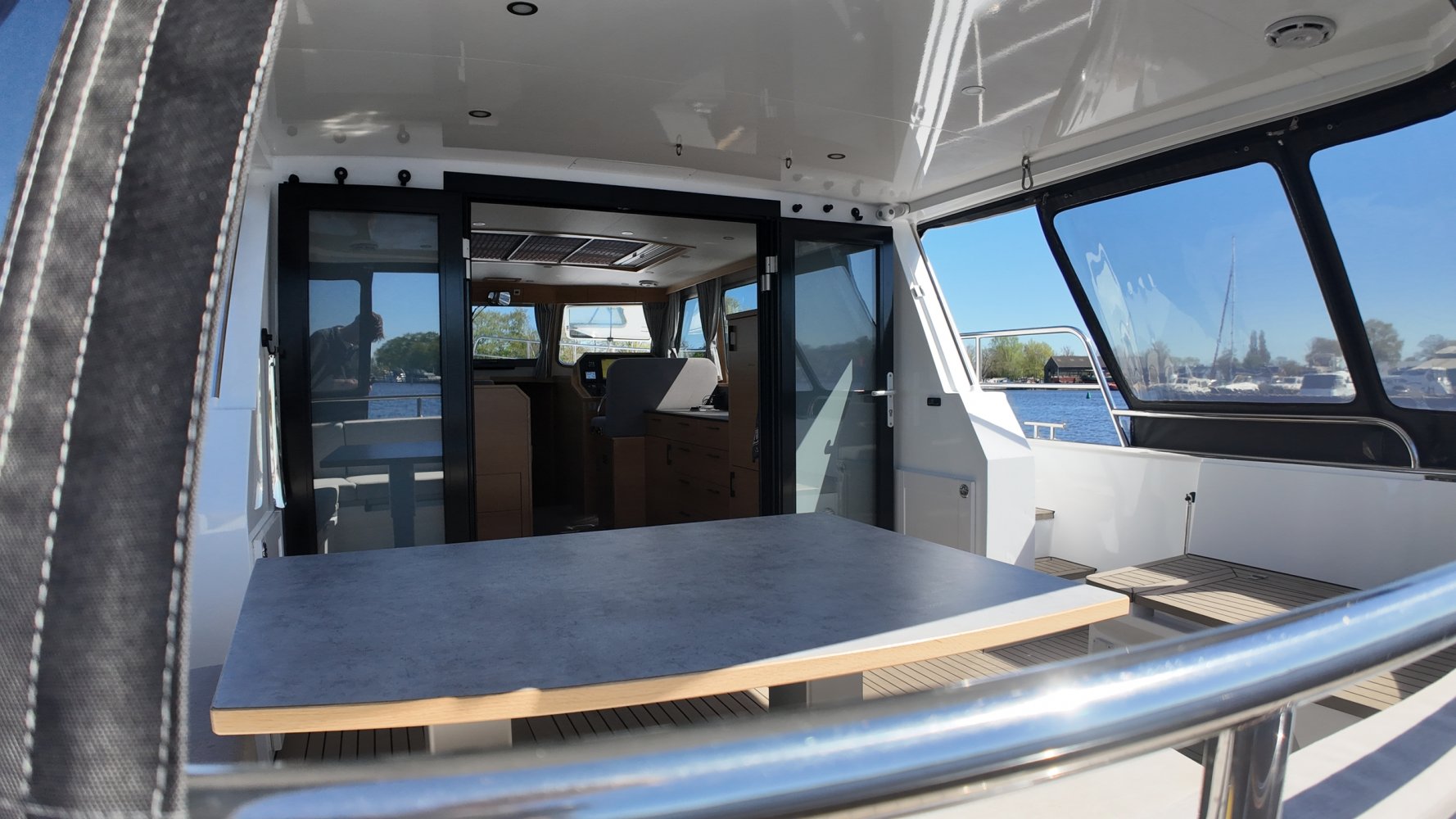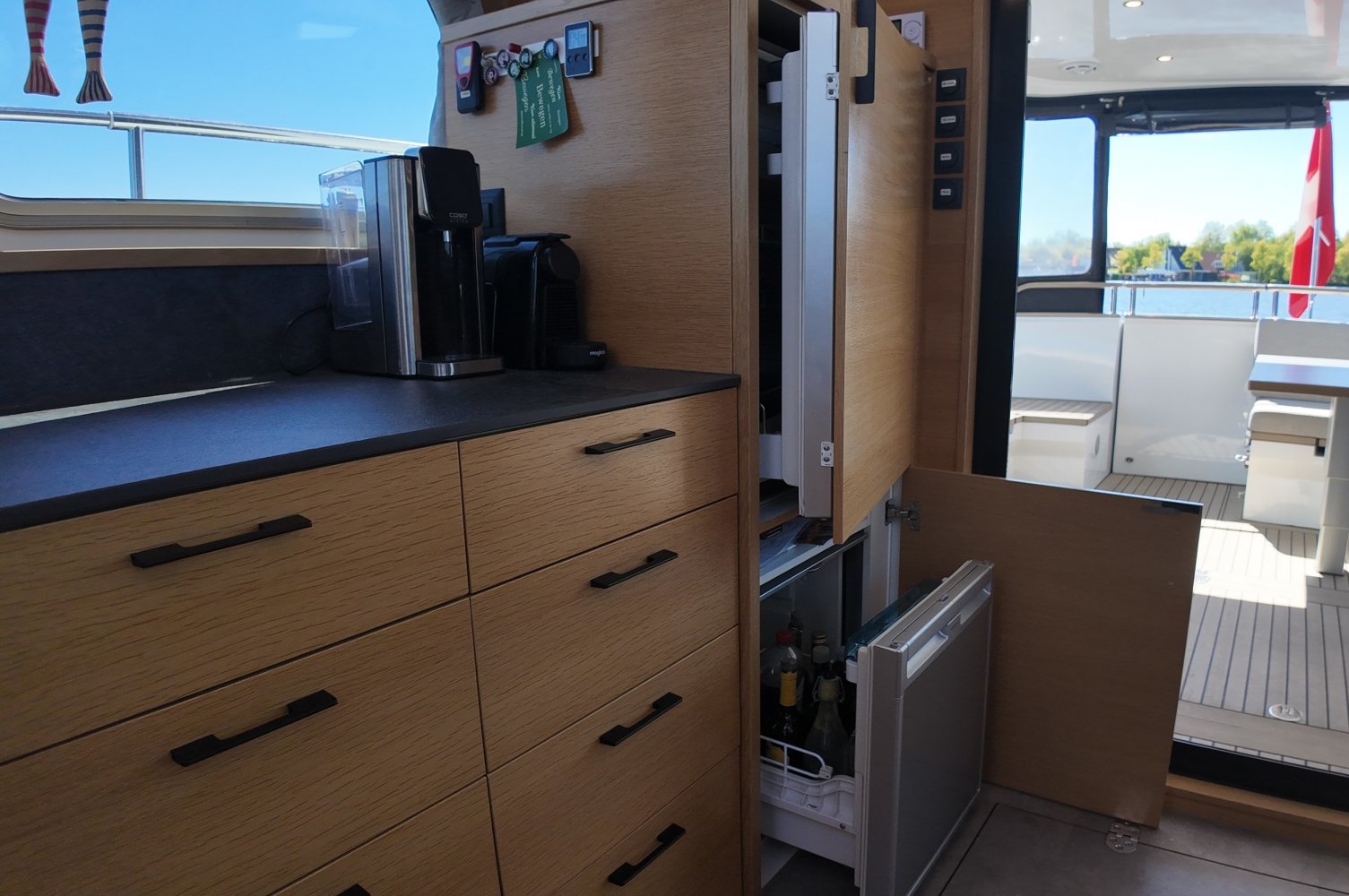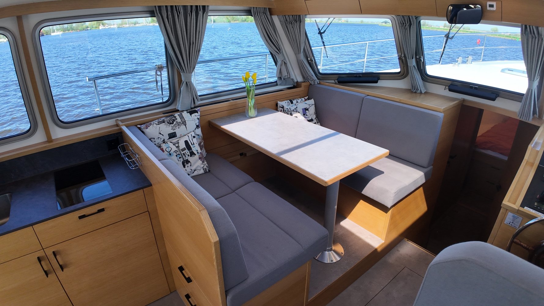 A Pollard Coastliner 43 SG (OK) from 2023, in almost new condition and featuring an extremely comprehensive specification. The standard equipment on this vessel is too extensive to list here. You simply must come and view this vessel at our premises and let it work its magic on you. Let us list a few highlights to whet your appetite; this custom-built Pollard Coastliner 43 SG is, of course, very well insulated and fitted with double-glazing and central heating, making it suitable for use in all seasons; it even has air conditioning. There is even a separate heating system for the open cockpit! Every conceivable navigation aid is fitted, including proportionally controlled bow and stern thrusters (140 kgf), naturally with remote control, Hydronautica engine control, a full range of Raymarine equipment including autopilot/river pilot (tiller), AIS etc., a spud pole, an electric sunroof – you name it. We will try to give a good impression of this vessel through our photo and video presentation, but it is even better to experience this Pollard Coastliner 43 SG ‘live’ with us. To do so, please call our sales team on: 0031-566769009.