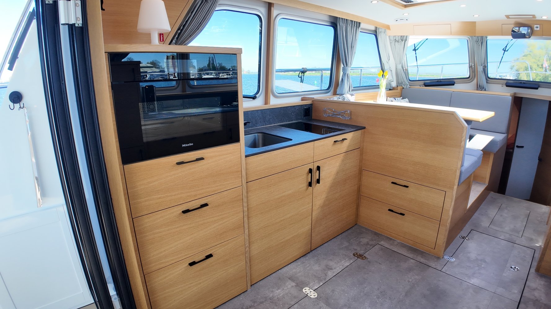 Ein neuwertiger und äußerst komplett ausgestatteter (volle Hütte) Pollard Coastliner 43 SG (OK) aus dem Jahr 2023. Die Serienausstattung dieses Bootes ist zu umfangreich, um sie hier aufzuzählen. Sie müssen sich dieses Schiff einfach bei uns ansehen und auf sich einwirken lassen. Lassen Sie uns dennoch ein paar Highlights aufzählen, um Ihre Neugier ein wenig zu wecken: Diese maßgefertigte Pollard Coastliner 43 SG ist selbstverständlich sehr gut isoliert und mit Thermopane-Verglasung sowie Zentralheizung ausgestattet, sodass dieses Schiff für den Einsatz zu jeder Jahreszeit geeignet ist; sogar eine Klimaanlage ist vorhanden. Es gibt sogar eine separate Heizung für das offene Cockpit! Alle erdenklichen Navigationshilfen sind vorhanden, darunter proportional steuerbare Bug- und Heckstrahlruder (140 kgf), natürlich mit Fernbedienung, Hydronautica-Motorsteuerung, ein komplettes Arsenal an Raymarine-Geräten mit Autopiloten/River Pilot (Pinne), AIS usw., Ankerwinde, elektrisches Schiebedach – was auch immer Sie sich wünschen. Wir werden versuchen, Ihnen anhand unserer Foto- und Videopräsentation einen guten Eindruck von diesem Schiff zu vermitteln, aber noch besser ist es, diese Pollard Coastliner 43 SG bei uns „live“ zu erleben. Rufen Sie dazu unser Verkaufsteam an: 0031-566769009.