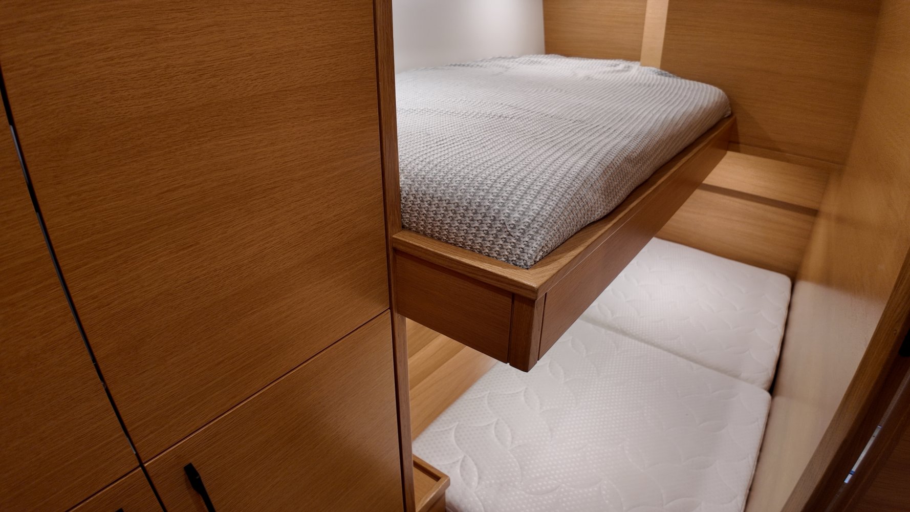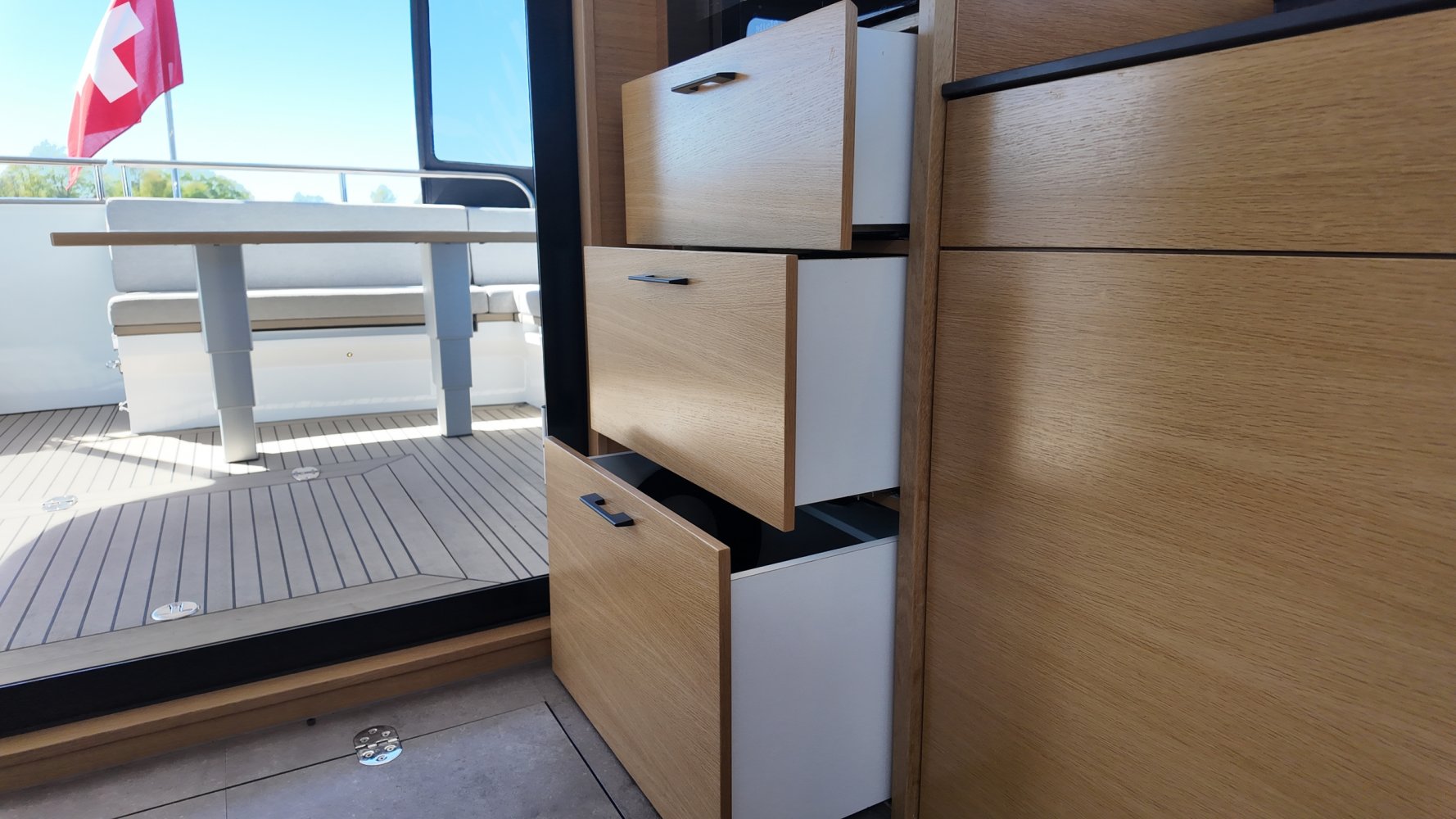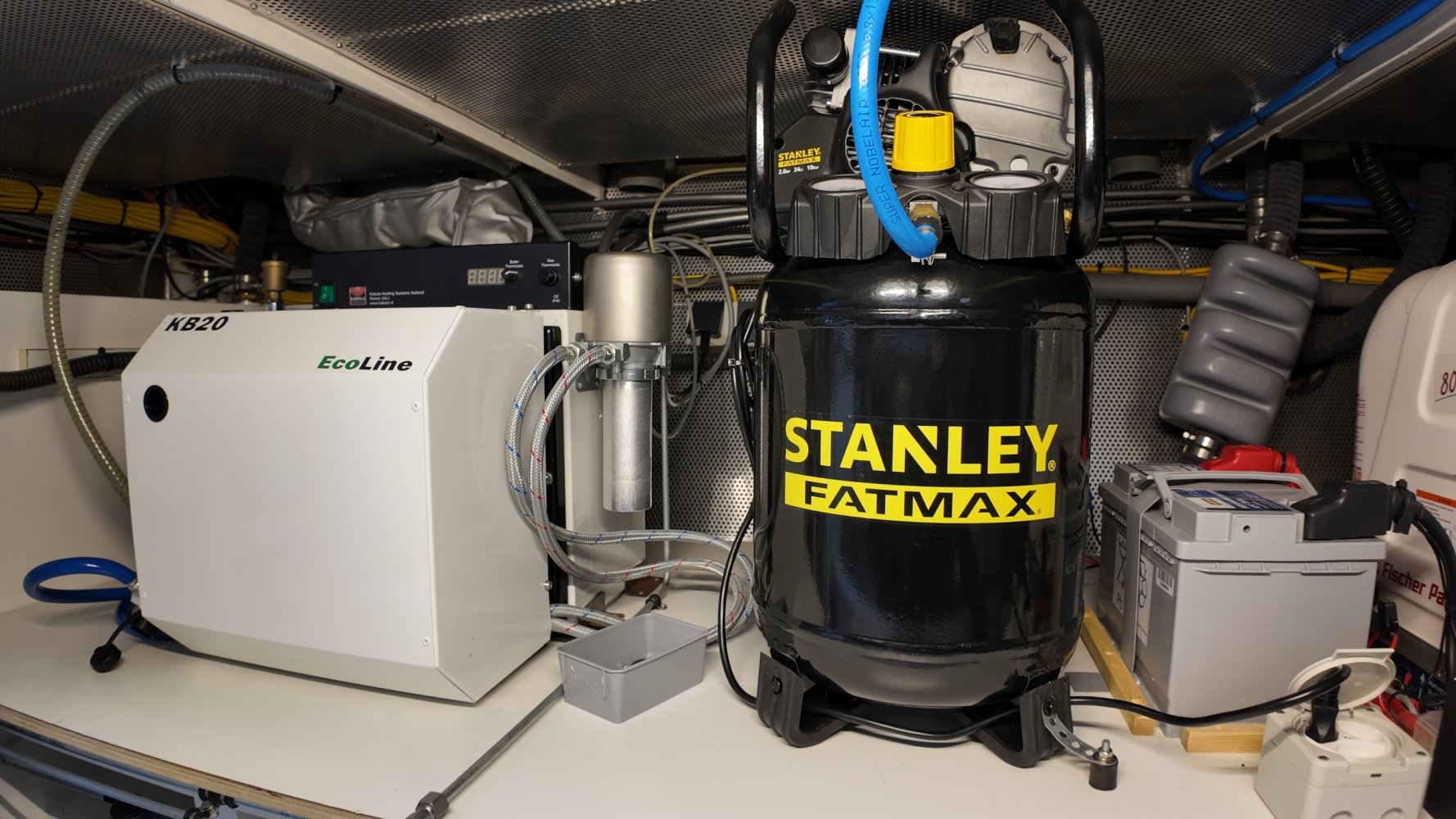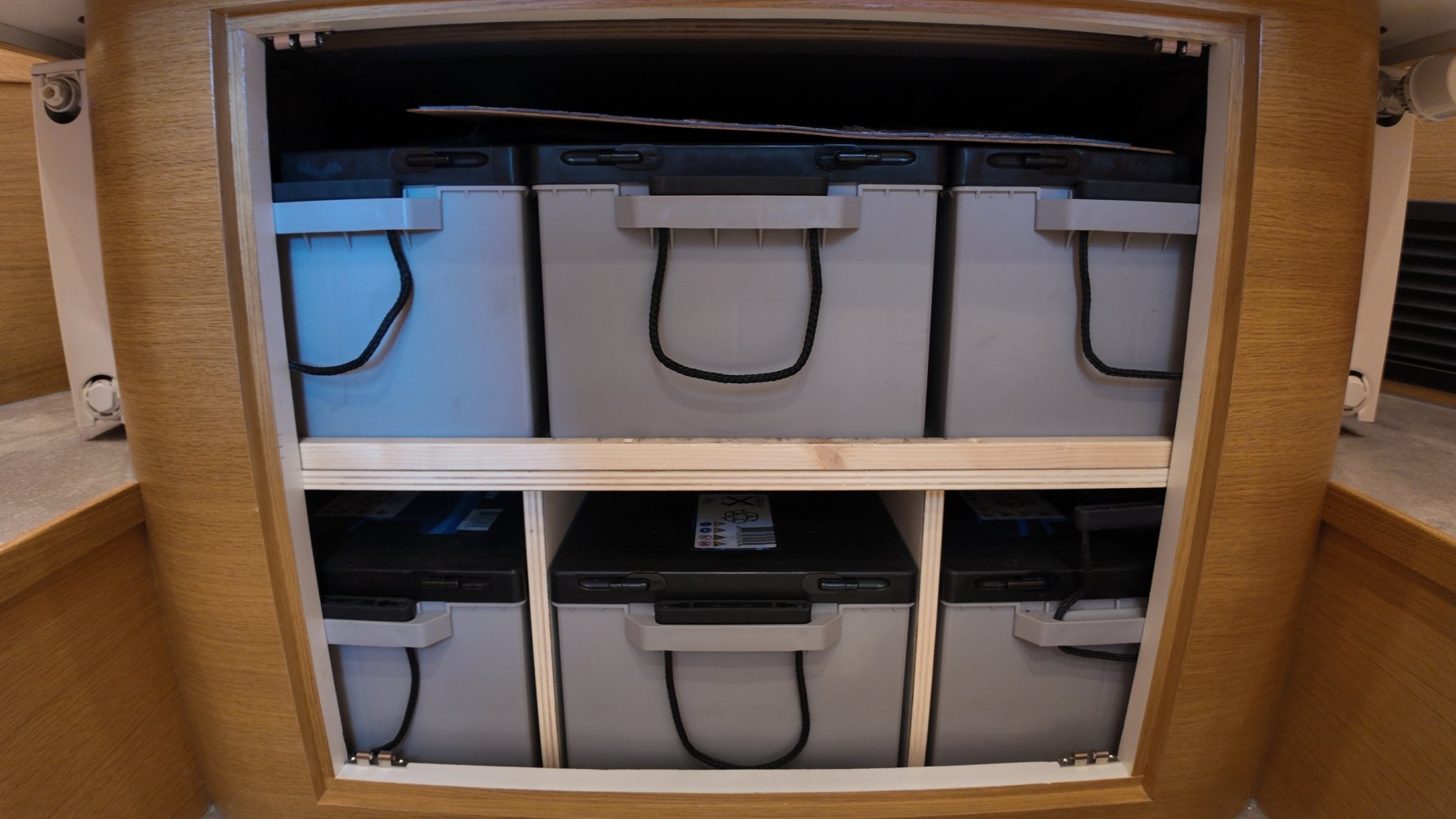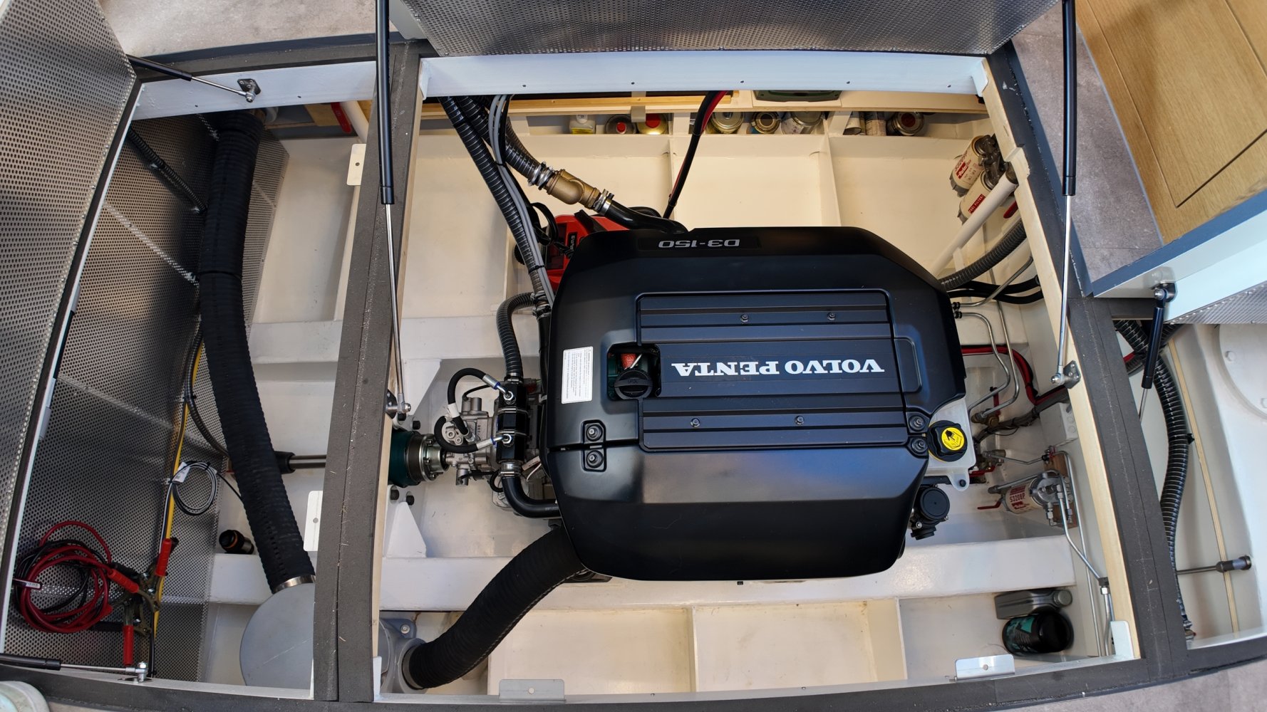 Bergruimte in de kuip voorzien van ingenieus opbergsysteem voor gereedschap, reserve delen etc etc.