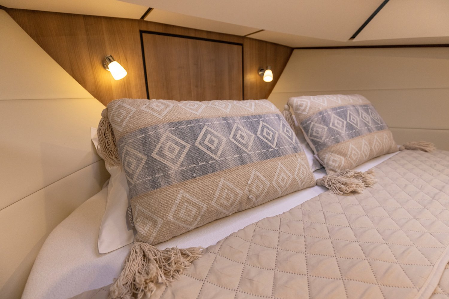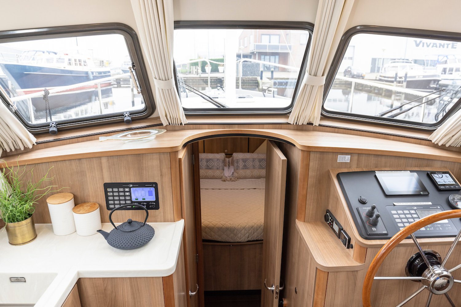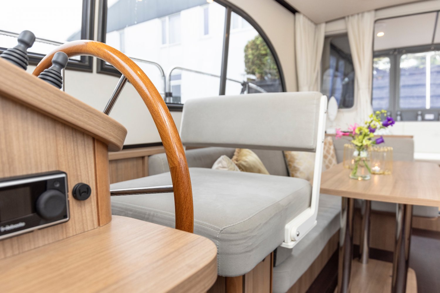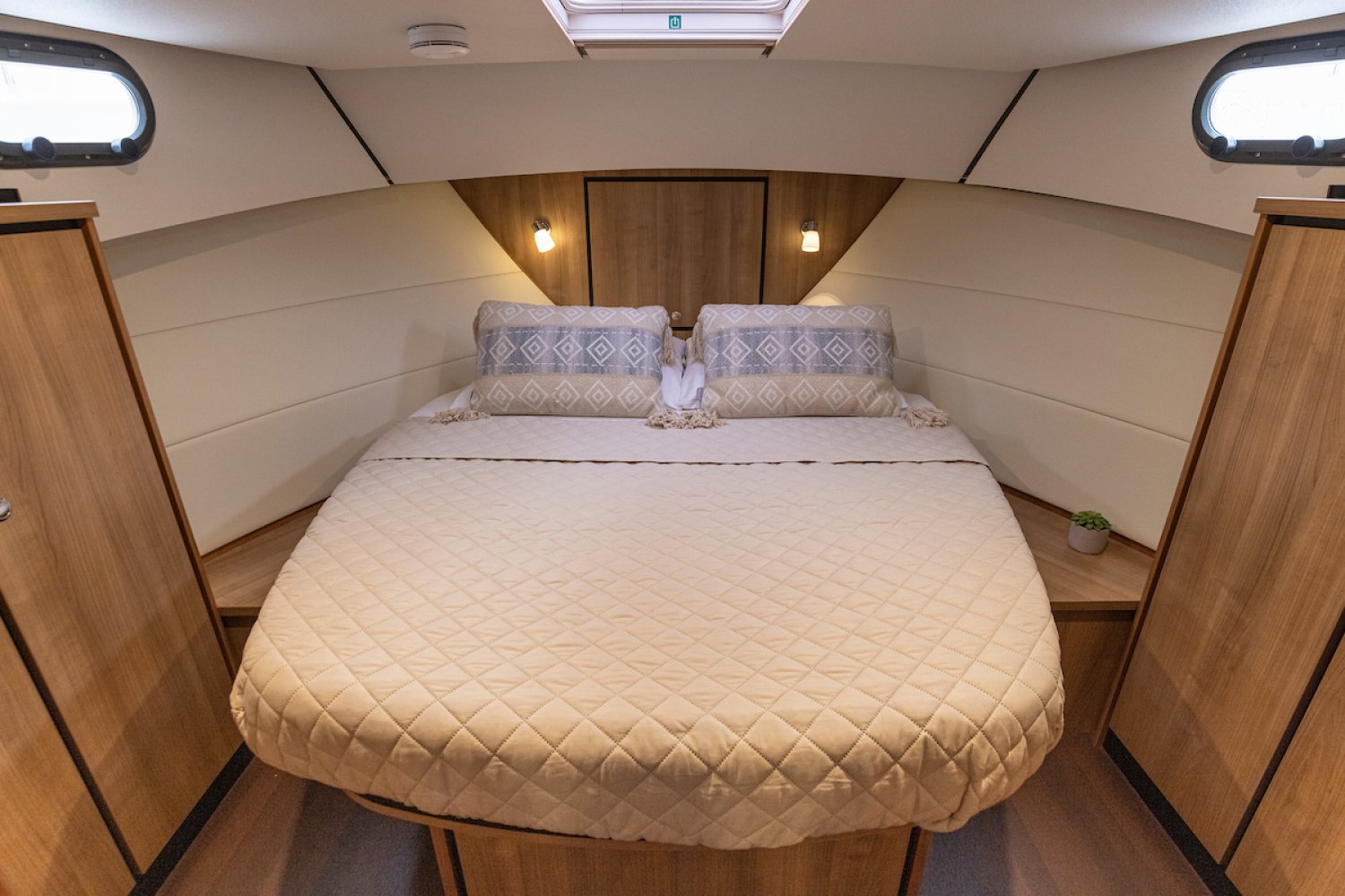 Dank ihrer kompakten Abmessungen ist dieses Boot hervorragend zu handhaben und dank des Bug- und Heckstrahlruders ist das Anlegen ein Kinderspiel.