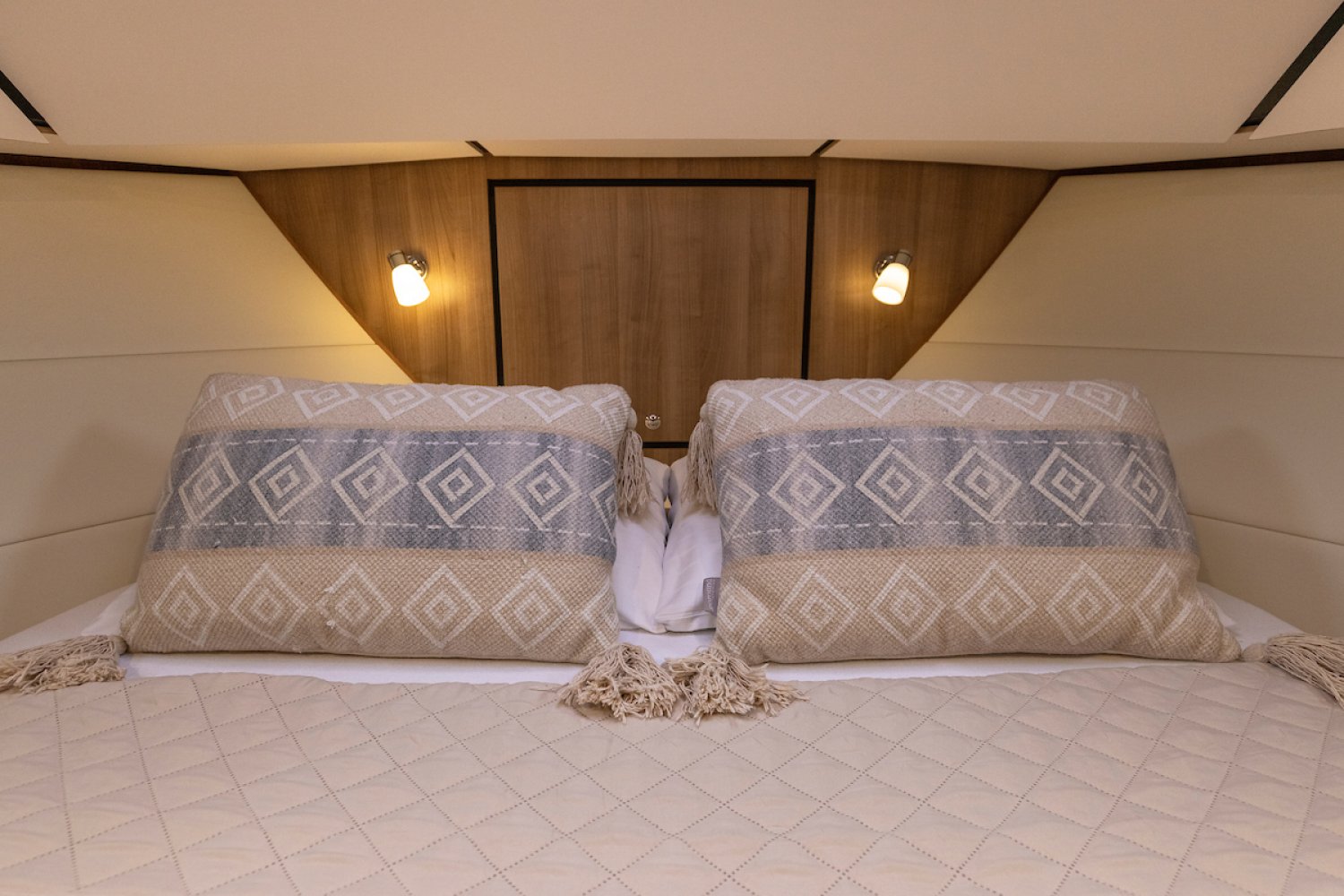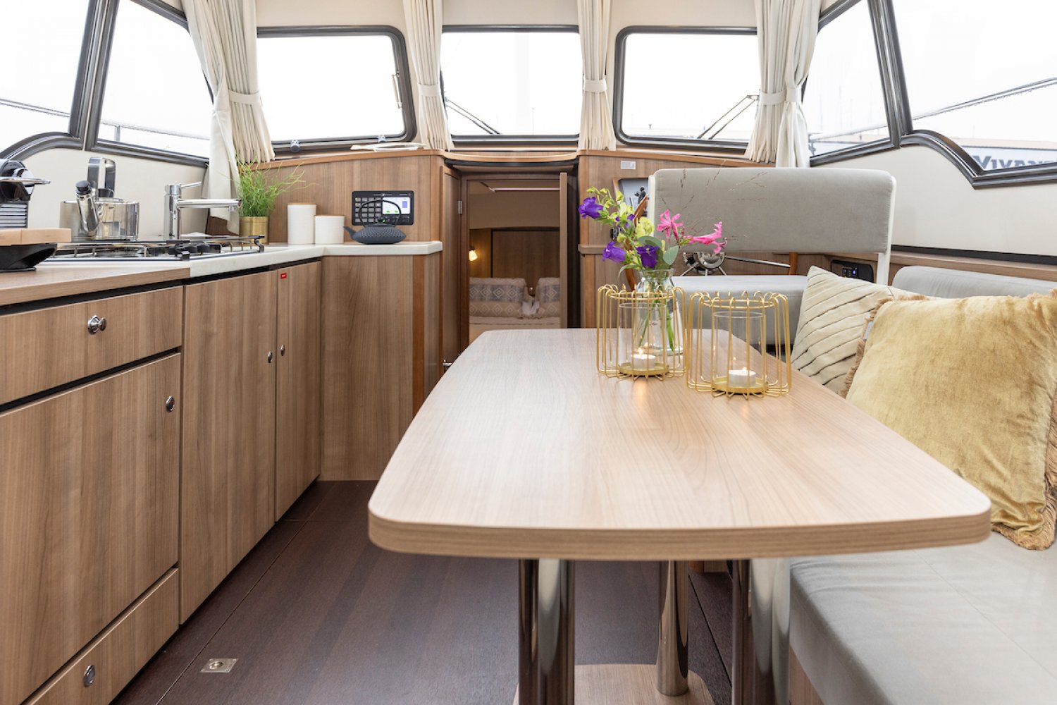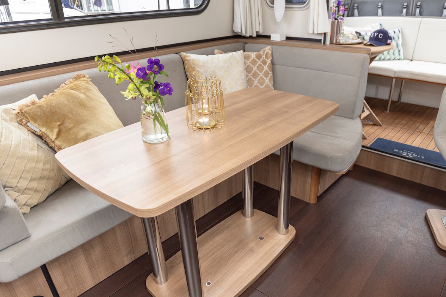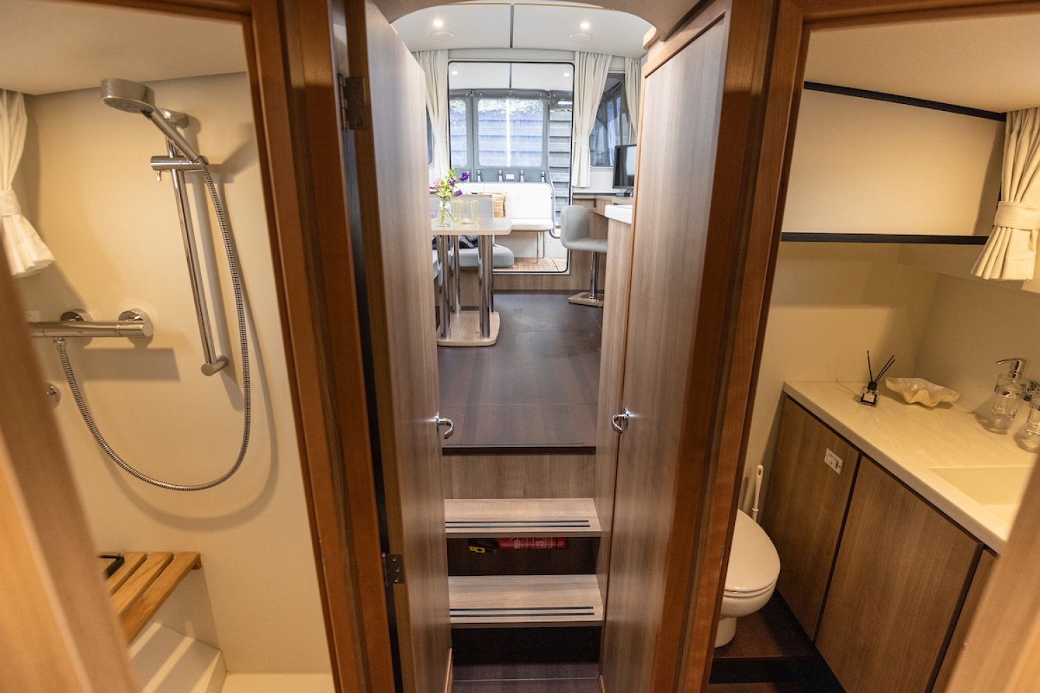 Dank ihrer kompakten Abmessungen ist dieses Boot hervorragend zu handhaben und dank des Bug- und Heckstrahlruders ist das Anlegen ein Kinderspiel.
