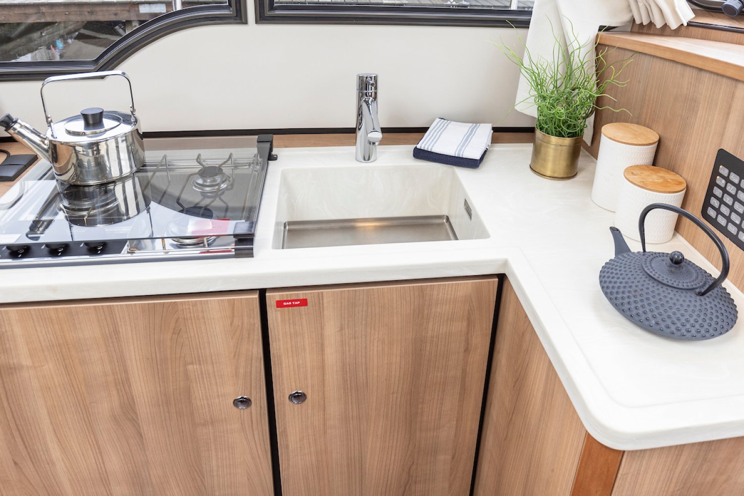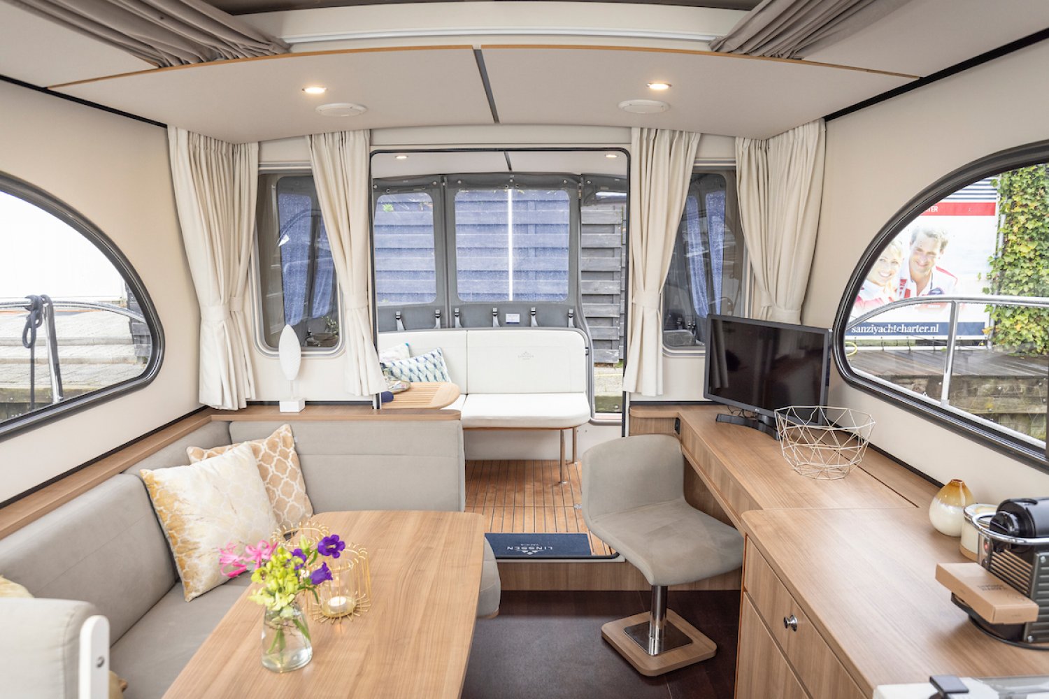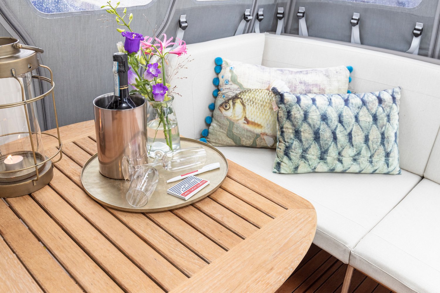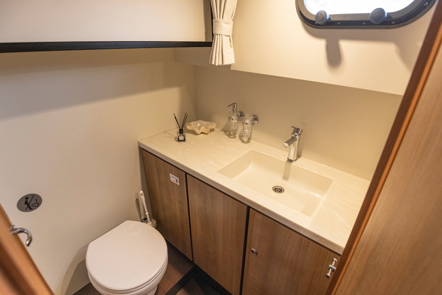 Dank ihrer kompakten Abmessungen ist dieses Boot hervorragend zu handhaben und dank des Bug- und Heckstrahlruders ist das Anlegen ein Kinderspiel.