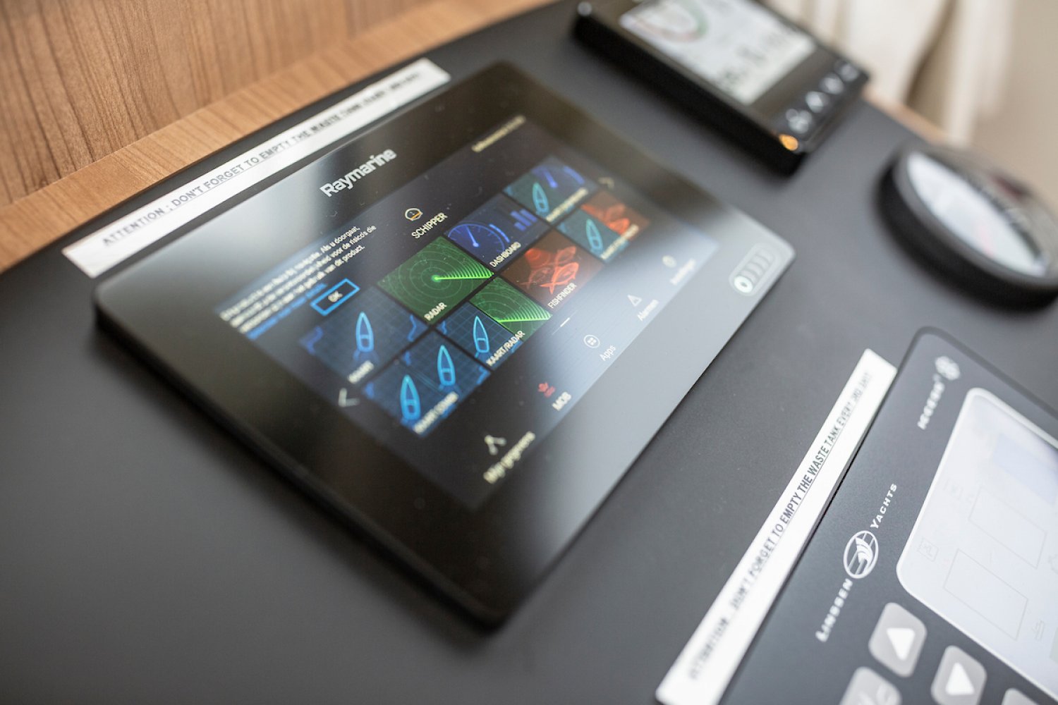 Selbstverständlich ist diese Linssen 30 SL Sedan mit allen Navigationsinstrumenten ausgestattet, die das Segeln zum Kinderspiel machen, nämlich einem Raymarine Axiom 12 Plotter, Echolot/Log und dem bereits erwähnten Bug- und Heckstrahlruder. Das Schiff wird mit einem begrenzten Inventar geliefert, einschließlich der Segelausrüstung, d.h. Fender, Leinen, Anhängevorrichtung, Landstromkabel usw.