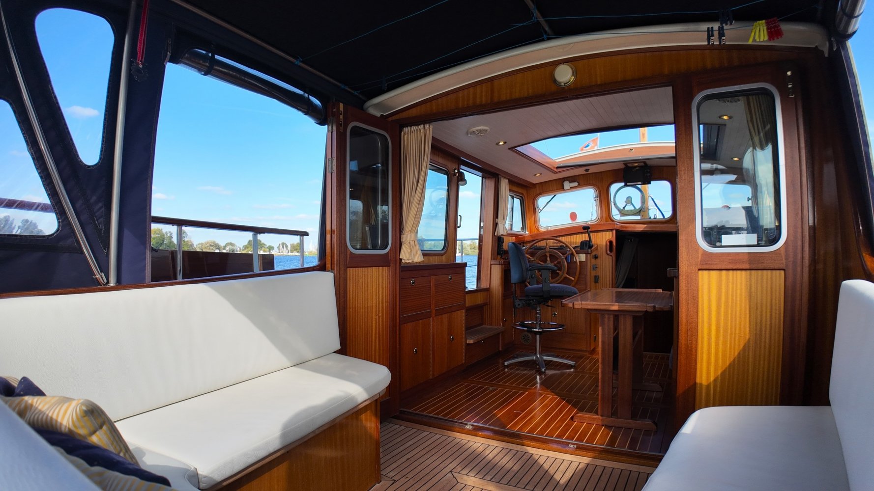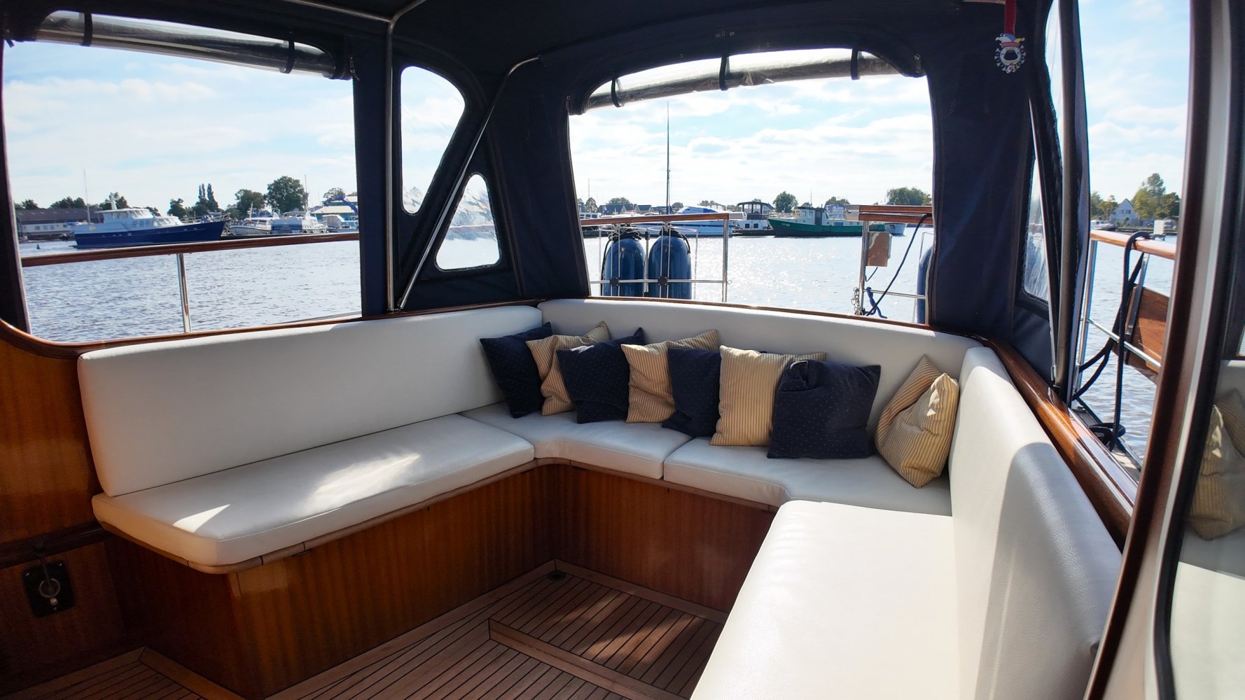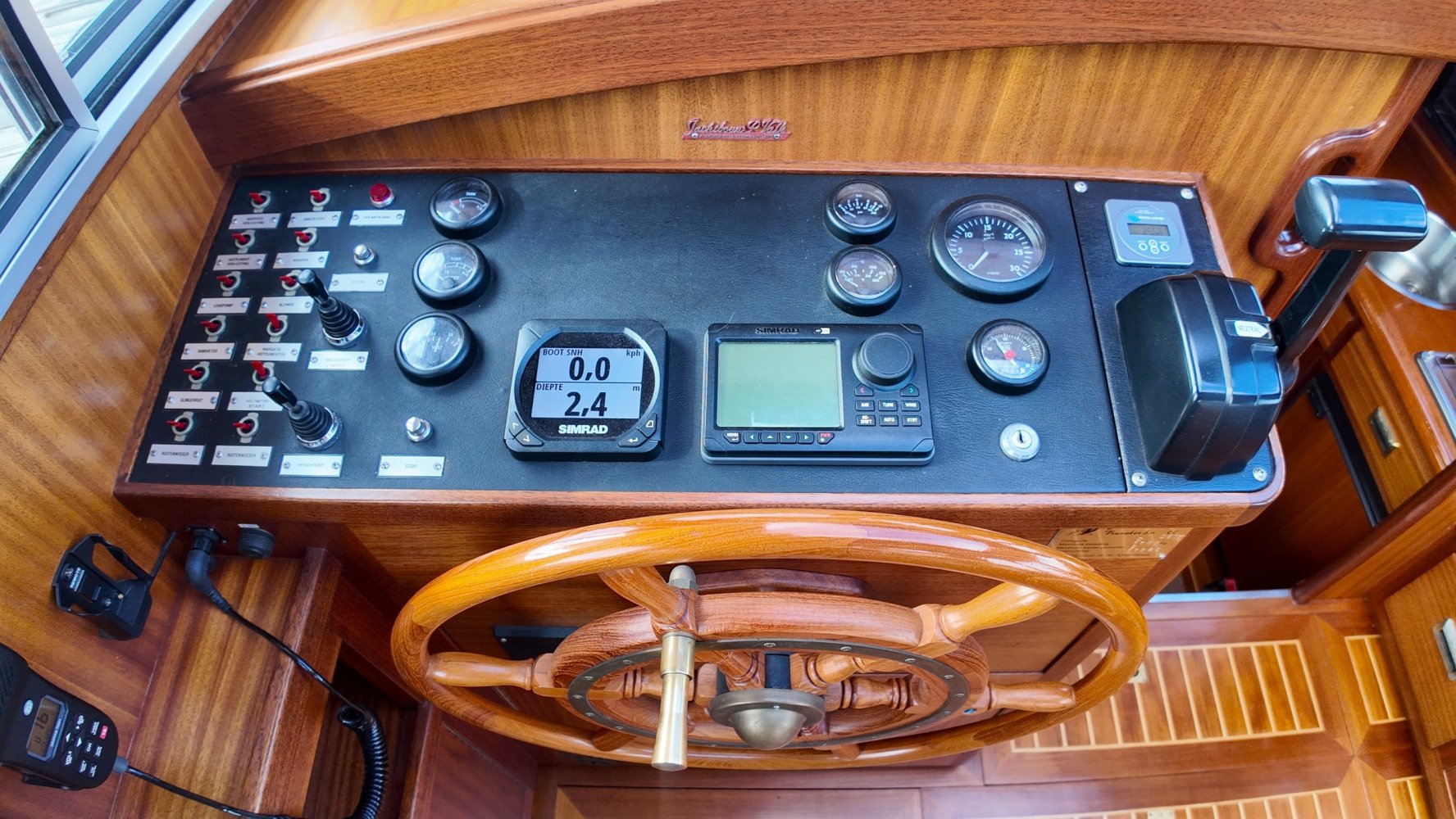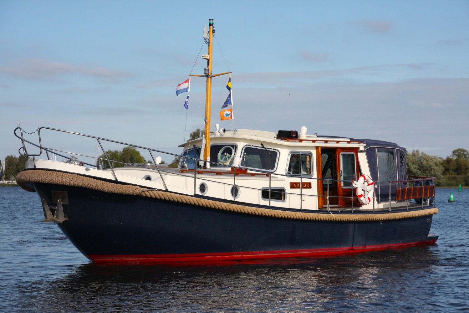 Sehr voll ausgestattet und gut gepflegt Valkvlet 11.30 OK. Dies ist definitiv eine einzigartige Valkvlet. Mehrere Valkvlets sind durch unsere Hände 'gegangen', allesamt Liebhaberschiffe, die meisten auch im Valk Yachts Club untergebracht. Diese Valkvlet 11.30 OK unterscheidet sich von den meisten anderen 11.30 OK durch die seitliche Schiebetür, die Gangborde, die um das offene Cockpit herumführen, und die Badeplattform. Die seitliche Schiebetür macht das Einsteigen in die Valkvlet viel einfacher als das Klettern über den Rand des offenen Cockpits. Der Vorteil der durchgehenden Gangborde ist natürlich der hohe Komfort beim Anlegen usw. Die offene Plicht ist mit einer schönen U-förmigen Sitzbank ausgestattet. Mit dem passenden Tisch können Sie mit der gesamten Reisegruppe wunderbar 'dinieren', ohne dass die Tische zu weit von Ihnen und Ihren Gästen entfernt sind. Diese sehr gepflegte Valkvlet 11.30 OK ist besonders gut mit Optionen und Extras ausgestattet. Das Boot verfügt über Doppelverglasung, eine schöne Teak-/Mahagonivertäfelung, ein Bug- und Heckstrahlruder, eine Innen- und Außendusche (Badeplattform), ein komplettes Arsenal an Navigationsausrüstung, einschließlich eines Autopiloten mit Fernbedienung, und sogar eine Waschmaschine.Genießen Sie die Bilder und das Video dieses Schiffes und wenn Sie trotz unserer recht vollständigen Beschreibung des Schiffes noch Fragen haben oder so neugierig geworden sind, dass Sie einen Besichtigungstermin für die "Amelie" vereinbaren möchten, wenden Sie sich bitte an unser enthusiastisches Verkaufsteam unter: +31566-769009.