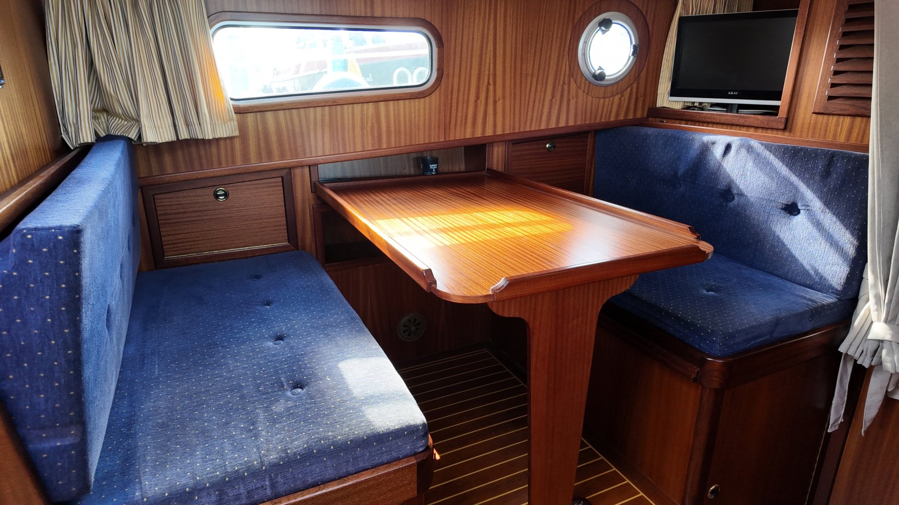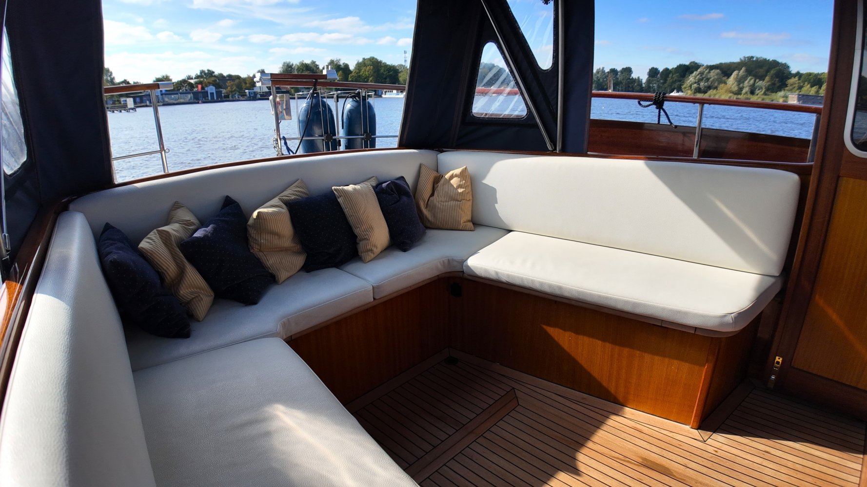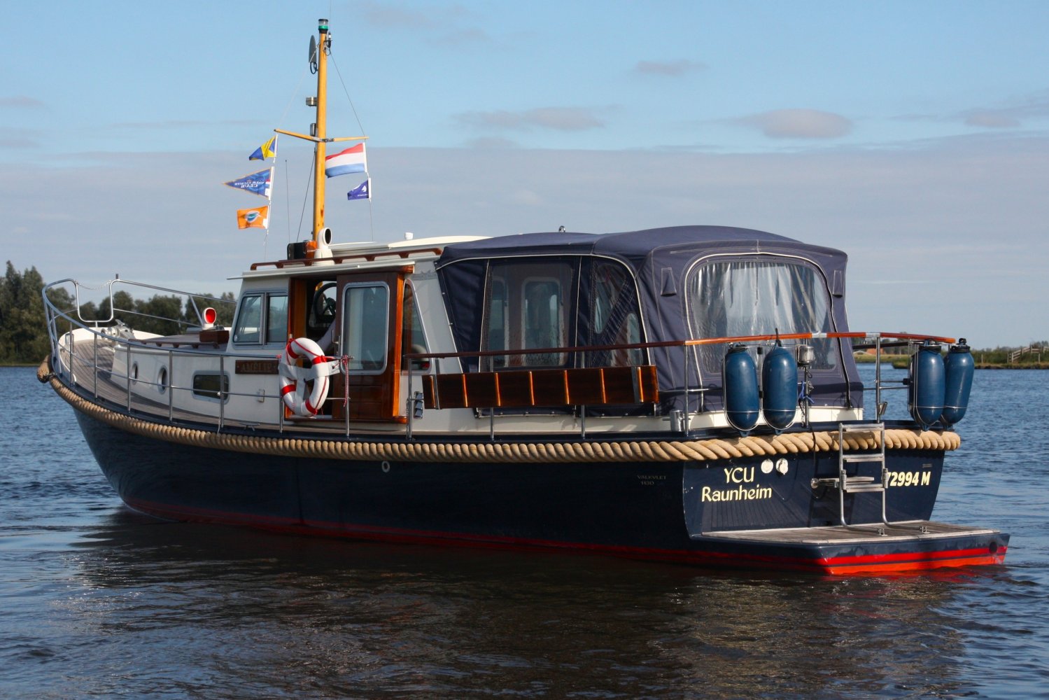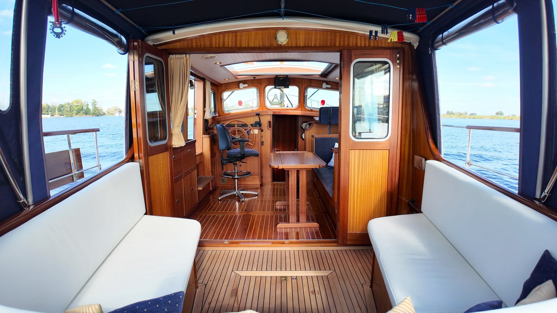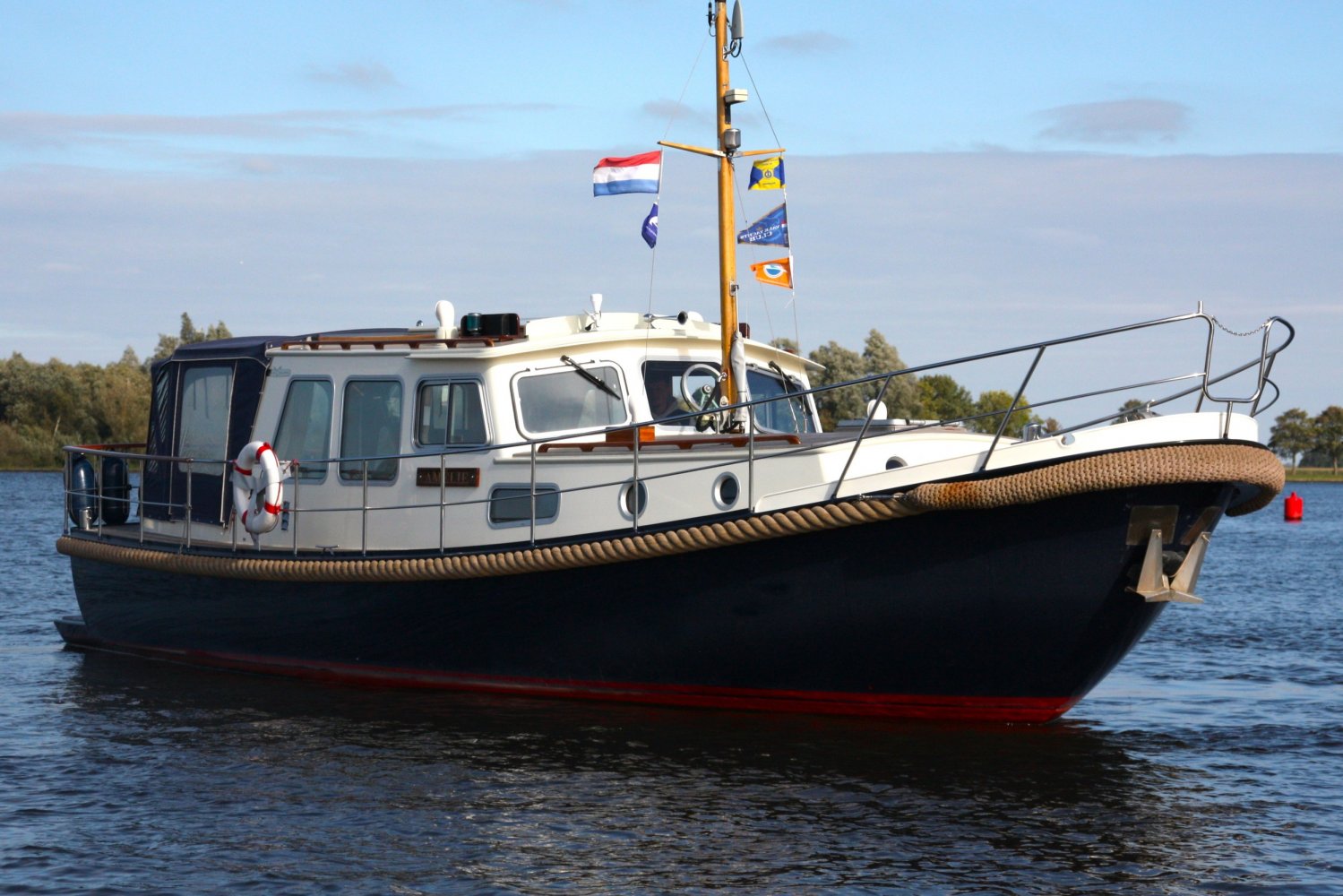 Sehr voll ausgestattet und gut gepflegt Valkvlet 11.30 OK. Dies ist definitiv eine einzigartige Valkvlet. Mehrere Valkvlets sind durch unsere Hände 'gegangen', allesamt Liebhaberschiffe, die meisten auch im Valk Yachts Club untergebracht. Diese Valkvlet 11.30 OK unterscheidet sich von den meisten anderen 11.30 OK durch die seitliche Schiebetür, die Gangborde, die um das offene Cockpit herumführen, und die Badeplattform. Die seitliche Schiebetür macht das Einsteigen in die Valkvlet viel einfacher als das Klettern über den Rand des offenen Cockpits. Der Vorteil der durchgehenden Gangborde ist natürlich der hohe Komfort beim Anlegen usw. Die offene Plicht ist mit einer schönen U-förmigen Sitzbank ausgestattet. Mit dem passenden Tisch können Sie mit der gesamten Reisegruppe wunderbar 'dinieren', ohne dass die Tische zu weit von Ihnen und Ihren Gästen entfernt sind. Diese sehr gepflegte Valkvlet 11.30 OK ist besonders gut mit Optionen und Extras ausgestattet. Das Boot verfügt über Doppelverglasung, eine schöne Teak-/Mahagonivertäfelung, ein Bug- und Heckstrahlruder, eine Innen- und Außendusche (Badeplattform), ein komplettes Arsenal an Navigationsausrüstung, einschließlich eines Autopiloten mit Fernbedienung, und sogar eine Waschmaschine.Genießen Sie die Bilder und das Video dieses Schiffes und wenn Sie trotz unserer recht vollständigen Beschreibung des Schiffes noch Fragen haben oder so neugierig geworden sind, dass Sie einen Besichtigungstermin für die "Amelie" vereinbaren möchten, wenden Sie sich bitte an unser enthusiastisches Verkaufsteam unter: +31566-769009.