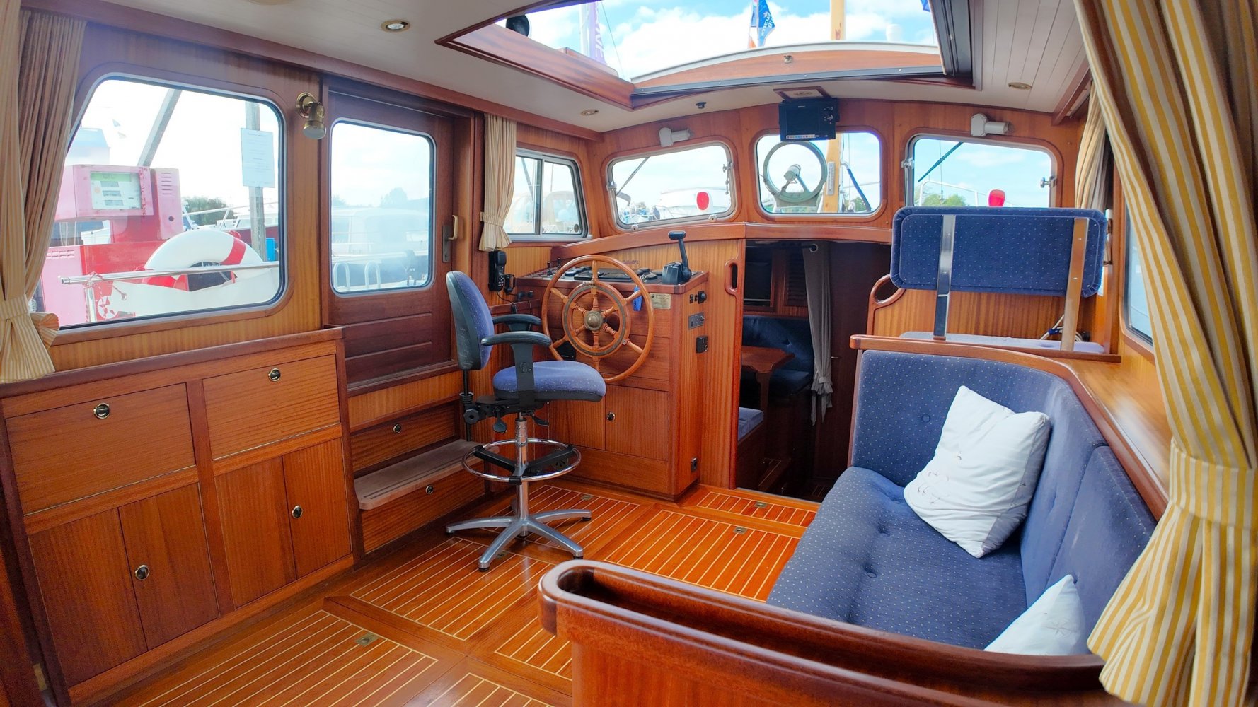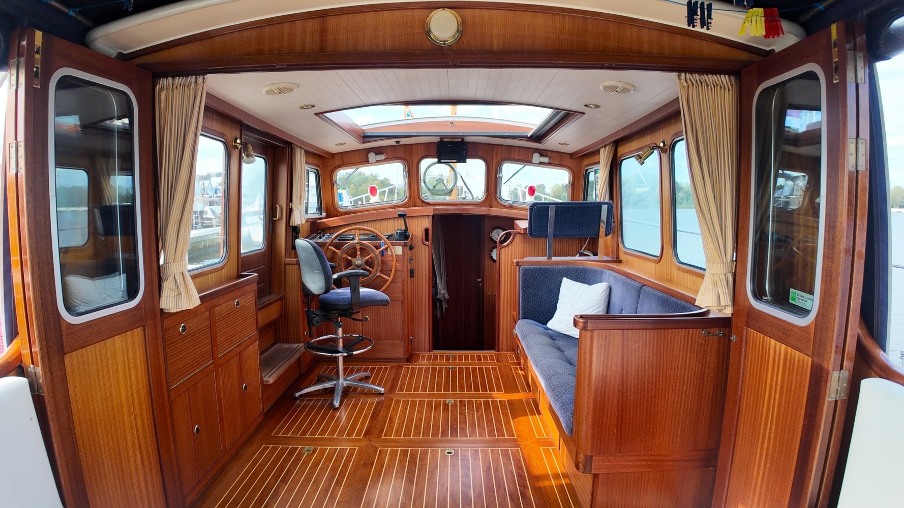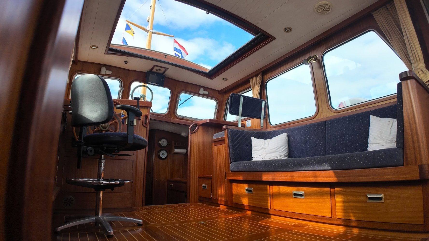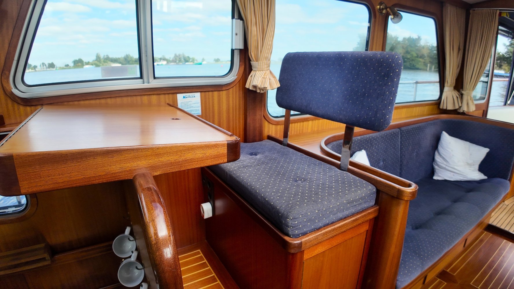 Sehr voll ausgestattet und gut gepflegt Valkvlet 11.30 OK. Dies ist definitiv eine einzigartige Valkvlet. Mehrere Valkvlets sind durch unsere Hände 'gegangen', allesamt Liebhaberschiffe, die meisten auch im Valk Yachts Club untergebracht. Diese Valkvlet 11.30 OK unterscheidet sich von den meisten anderen 11.30 OK durch die seitliche Schiebetür, die Gangborde, die um das offene Cockpit herumführen, und die Badeplattform. Die seitliche Schiebetür macht das Einsteigen in die Valkvlet viel einfacher als das Klettern über den Rand des offenen Cockpits. Der Vorteil der durchgehenden Gangborde ist natürlich der hohe Komfort beim Anlegen usw. Die offene Plicht ist mit einer schönen U-förmigen Sitzbank ausgestattet. Mit dem passenden Tisch können Sie mit der gesamten Reisegruppe wunderbar 'dinieren', ohne dass die Tische zu weit von Ihnen und Ihren Gästen entfernt sind. Diese sehr gepflegte Valkvlet 11.30 OK ist besonders gut mit Optionen und Extras ausgestattet. Das Boot verfügt über Doppelverglasung, eine schöne Teak-/Mahagonivertäfelung, ein Bug- und Heckstrahlruder, eine Innen- und Außendusche (Badeplattform), ein komplettes Arsenal an Navigationsausrüstung, einschließlich eines Autopiloten mit Fernbedienung, und sogar eine Waschmaschine.Genießen Sie die Bilder und das Video dieses Schiffes und wenn Sie trotz unserer recht vollständigen Beschreibung des Schiffes noch Fragen haben oder so neugierig geworden sind, dass Sie einen Besichtigungstermin für die "Amelie" vereinbaren möchten, wenden Sie sich bitte an unser enthusiastisches Verkaufsteam unter: +31566-769009.