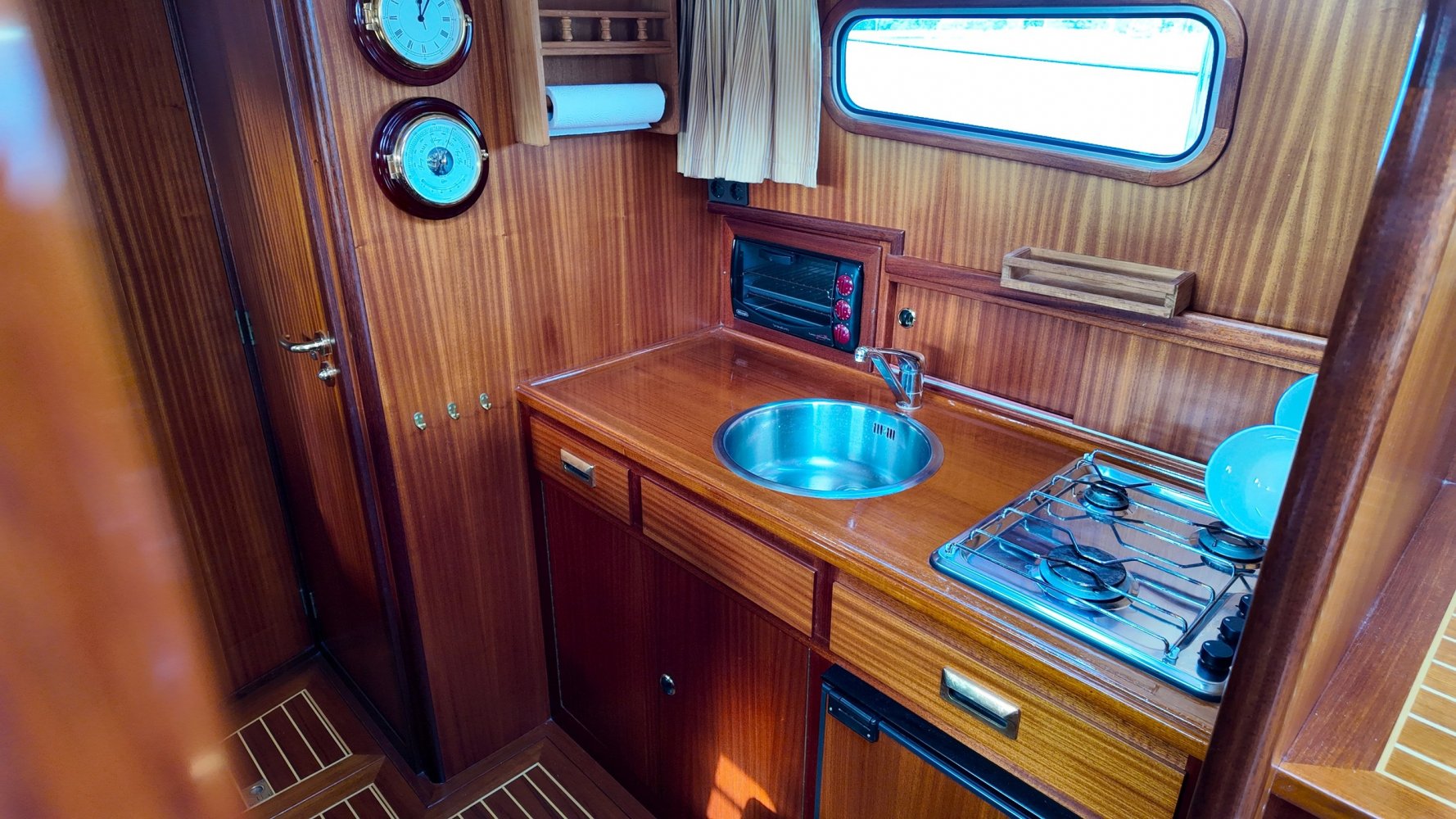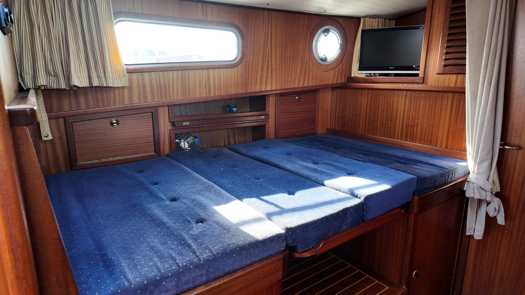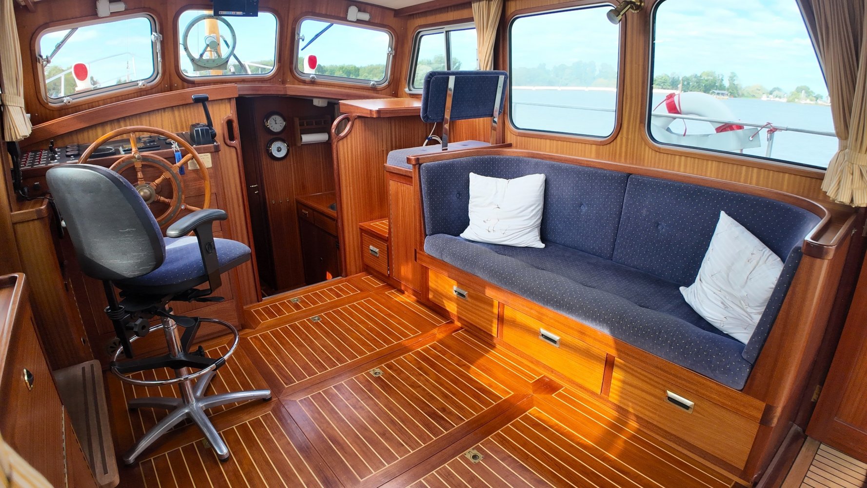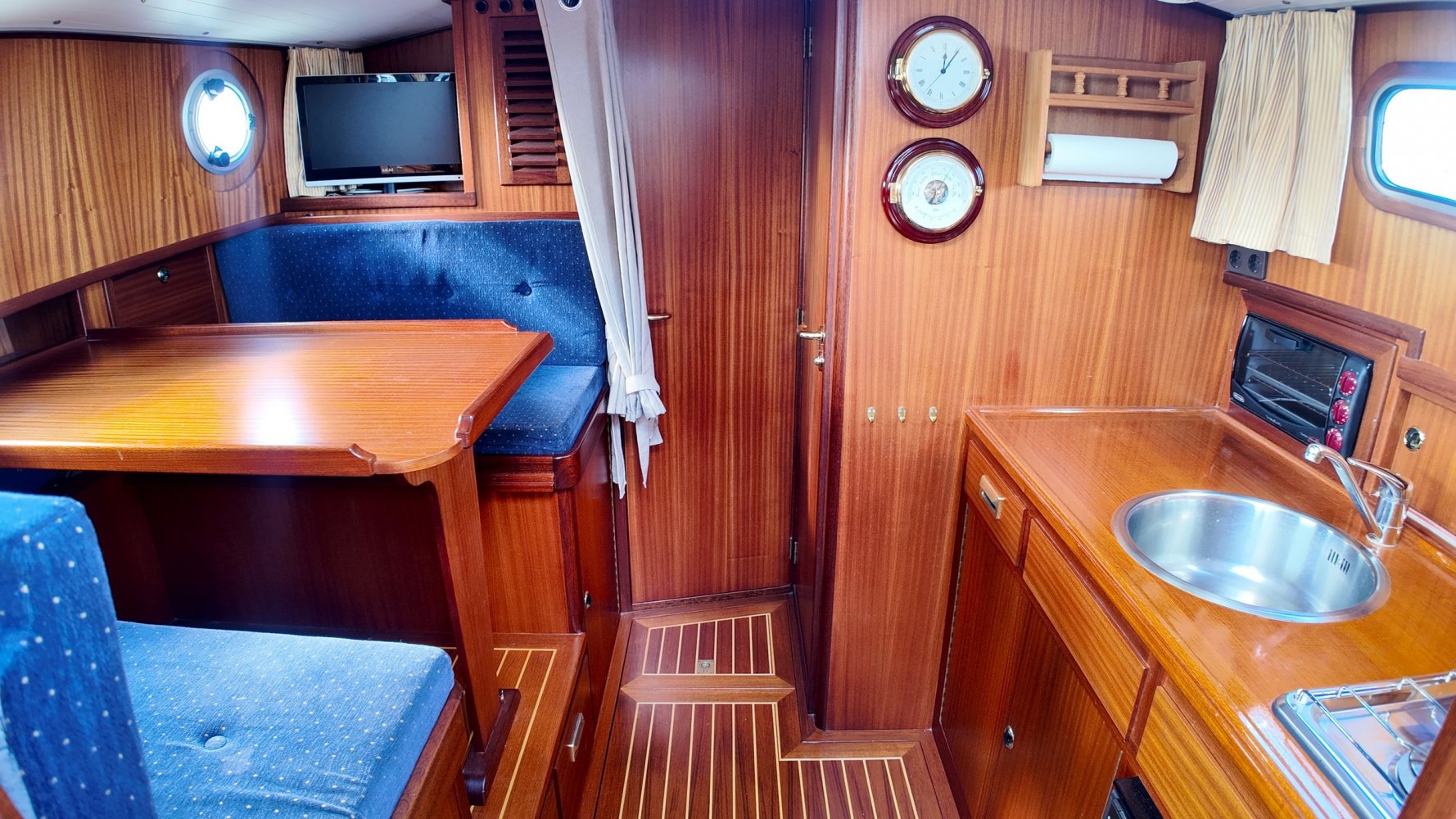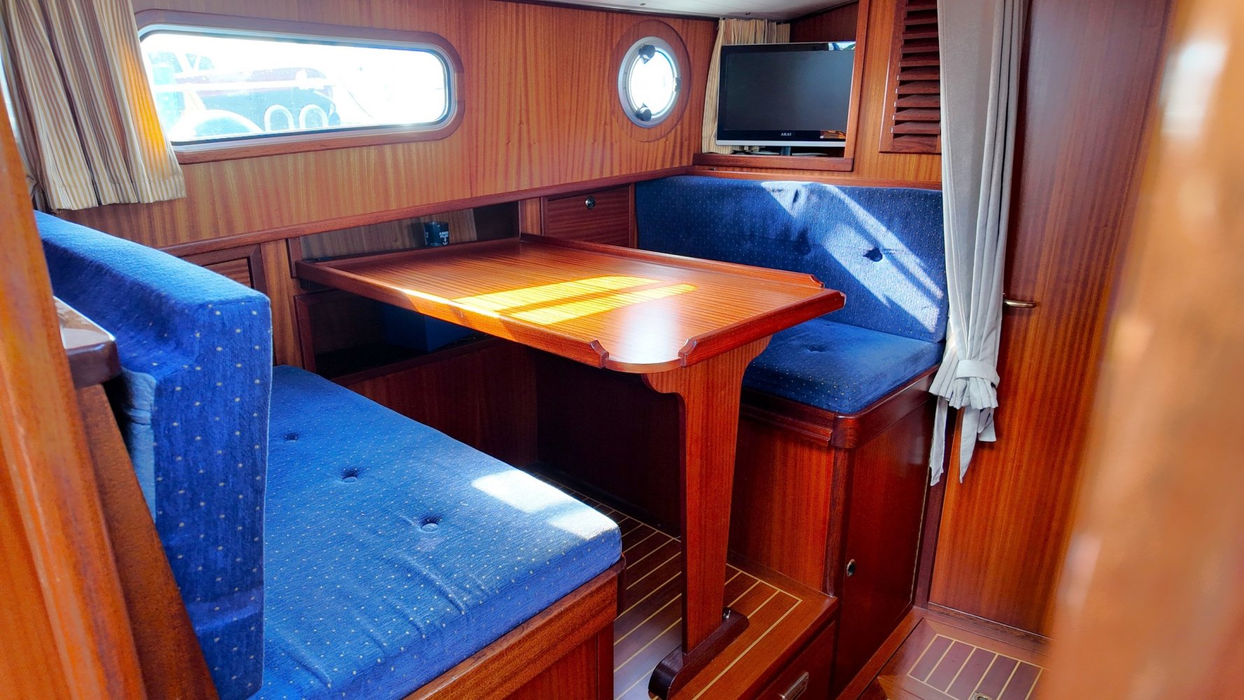 Sehr voll ausgestattet und gut gepflegt Valkvlet 11.30 OK. Dies ist definitiv eine einzigartige Valkvlet. Mehrere Valkvlets sind durch unsere Hände 'gegangen', allesamt Liebhaberschiffe, die meisten auch im Valk Yachts Club untergebracht. Diese Valkvlet 11.30 OK unterscheidet sich von den meisten anderen 11.30 OK durch die seitliche Schiebetür, die Gangborde, die um das offene Cockpit herumführen, und die Badeplattform. Die seitliche Schiebetür macht das Einsteigen in die Valkvlet viel einfacher als das Klettern über den Rand des offenen Cockpits. Der Vorteil der durchgehenden Gangborde ist natürlich der hohe Komfort beim Anlegen usw. Die offene Plicht ist mit einer schönen U-förmigen Sitzbank ausgestattet. Mit dem passenden Tisch können Sie mit der gesamten Reisegruppe wunderbar 'dinieren', ohne dass die Tische zu weit von Ihnen und Ihren Gästen entfernt sind. Diese sehr gepflegte Valkvlet 11.30 OK ist besonders gut mit Optionen und Extras ausgestattet. Das Boot verfügt über Doppelverglasung, eine schöne Teak-/Mahagonivertäfelung, ein Bug- und Heckstrahlruder, eine Innen- und Außendusche (Badeplattform), ein komplettes Arsenal an Navigationsausrüstung, einschließlich eines Autopiloten mit Fernbedienung, und sogar eine Waschmaschine.Genießen Sie die Bilder und das Video dieses Schiffes und wenn Sie trotz unserer recht vollständigen Beschreibung des Schiffes noch Fragen haben oder so neugierig geworden sind, dass Sie einen Besichtigungstermin für die "Amelie" vereinbaren möchten, wenden Sie sich bitte an unser enthusiastisches Verkaufsteam unter: +31566-769009.