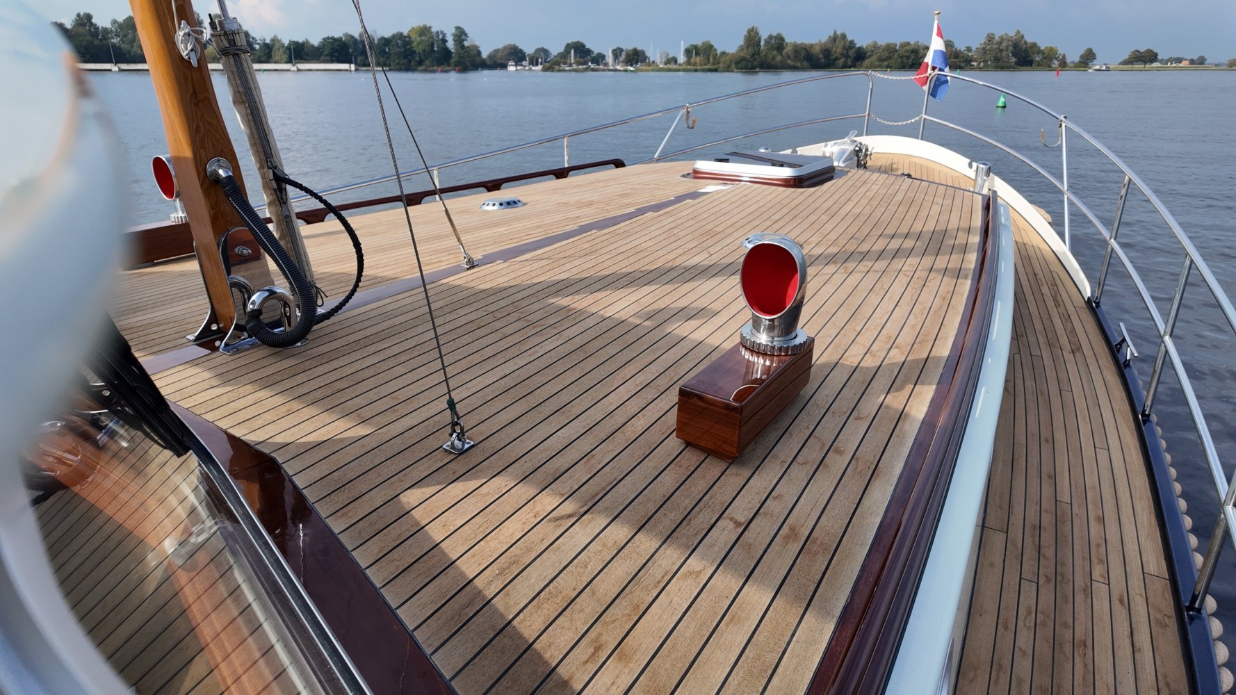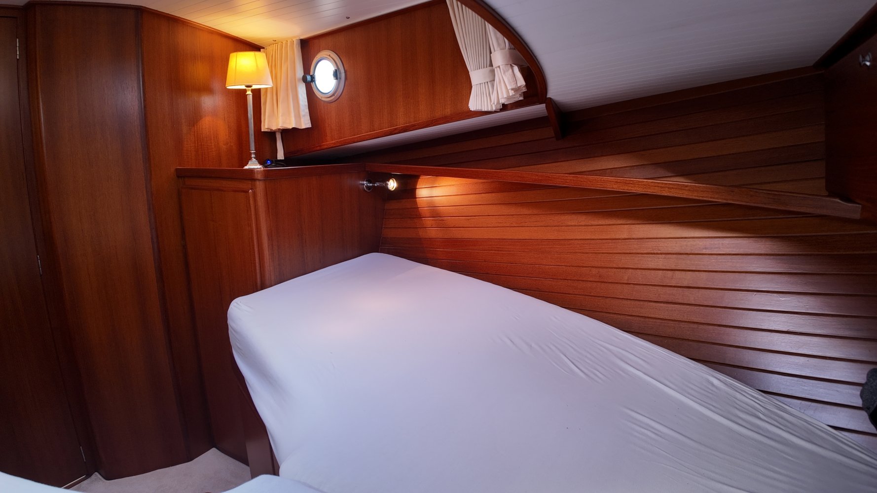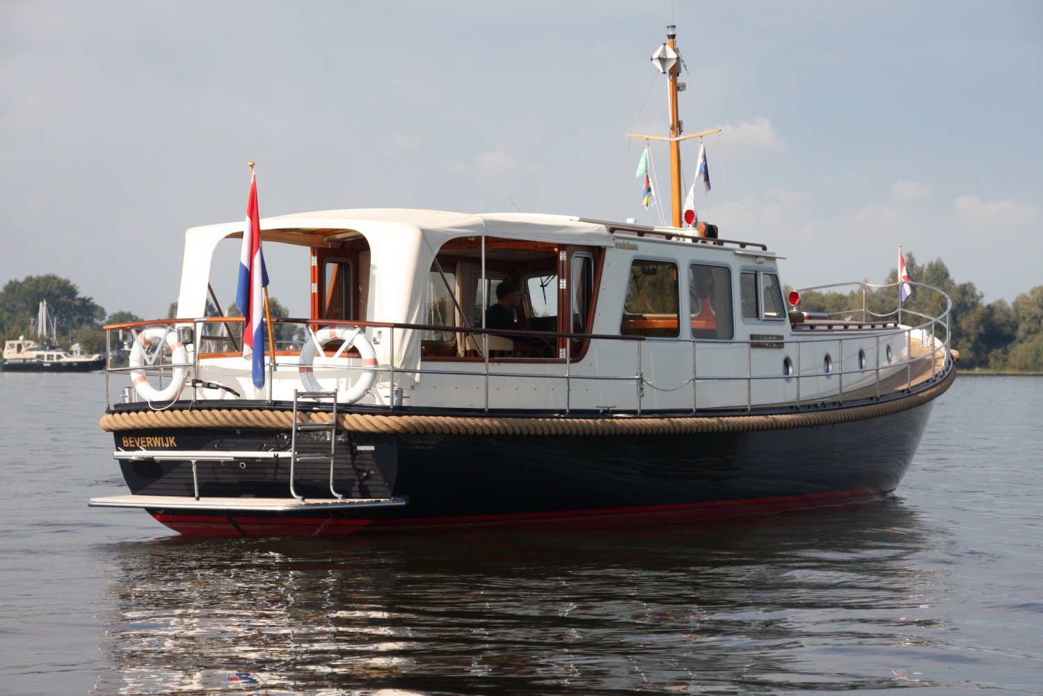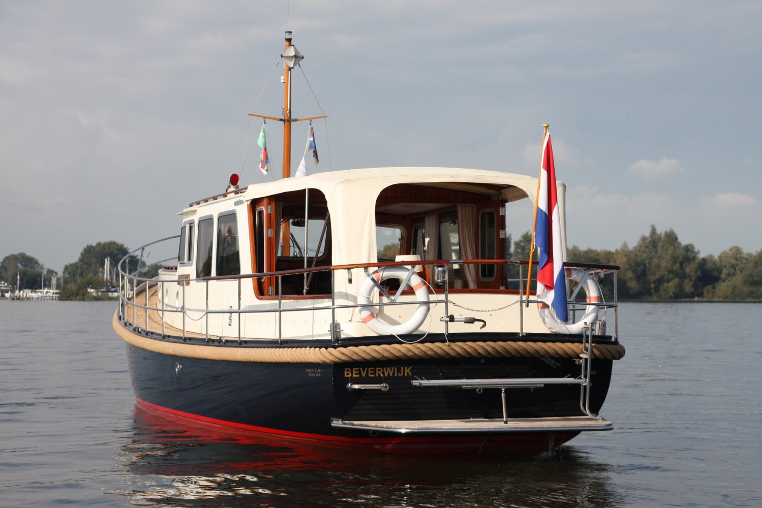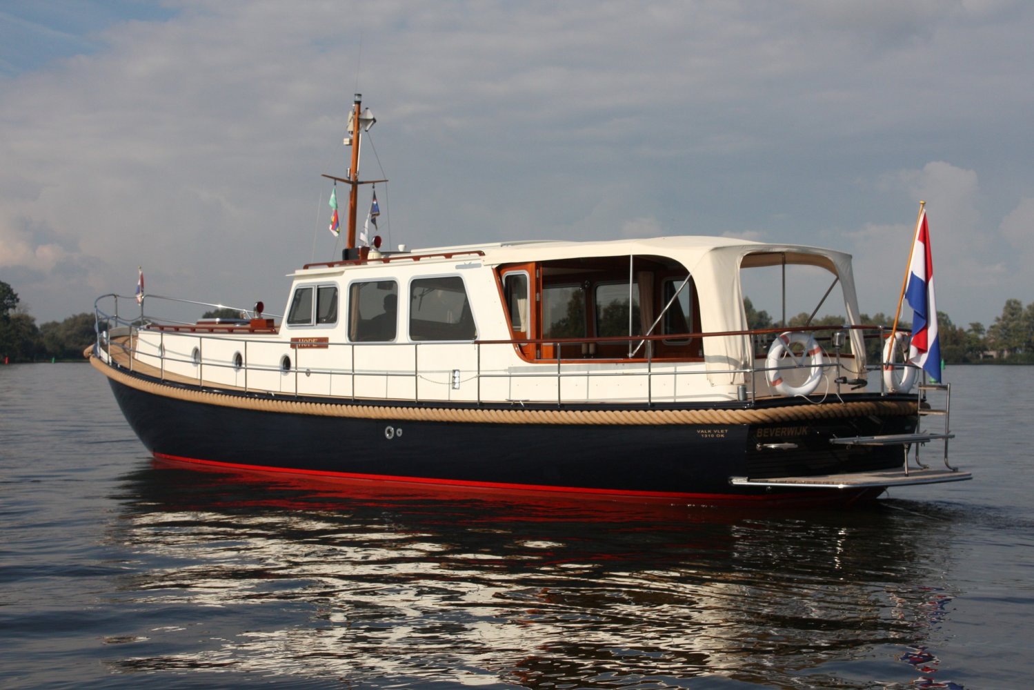 Die allerletzte jemals gebaute Valkvlet! Irgendetwas muss Philip Valk durch den Kopf gegangen sein, als er dieses Schiff an seine stolzen ersten Besitzer übergab. Damit endete auch eine lange Periode, Jahrzehnte, des traditionellen friesischen Yachtbaus! Die Valkvlet ist unter echten Kennern und Liebhabern ein Begriff. Hochwertig, immer runde Bilge und fast keine gleicht der anderen. Aber mit hohem Wiedererkennungswert. Es gibt auch einen Club von Valkvlet-Liebhabern, der sich regelmäßig zu Spaßveranstaltungen oder Segeltörns trifft. Wie dem auch sei, wir haben es hier mit einer Valkvlet 13.10 OK zu tun, die bis ins kleinste Detail original ist und auch sehr gut ausgestattet ist. So ist diese Valkvket 13.10 OK mit einem starken und sehr leisen Vetus-Deutz DT 66 Motor ausgestattet, der 170 PS leistet. Das Boot verfügt über proportionale Bug- und Heckstrahlruder (!), ein komplettes Set an Navigationsinstrumenten einschließlich Autopilot, ein Kamerasystem, einen Generator, Zentralheizung und Doppelverglasung, etc etc. Eine Badeplattform mit Badeleiter und Fahrradständer vervollständigen das Schiff.