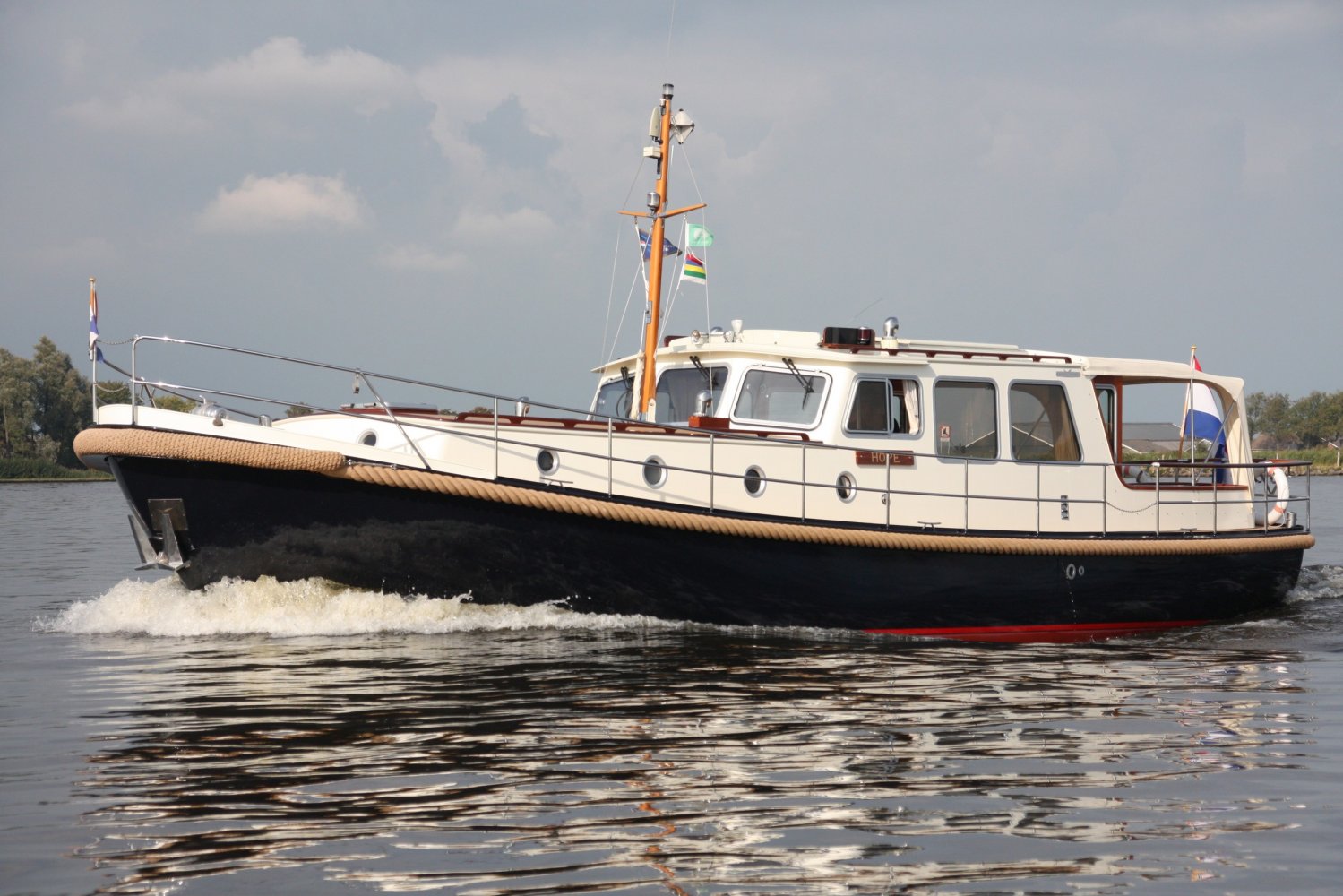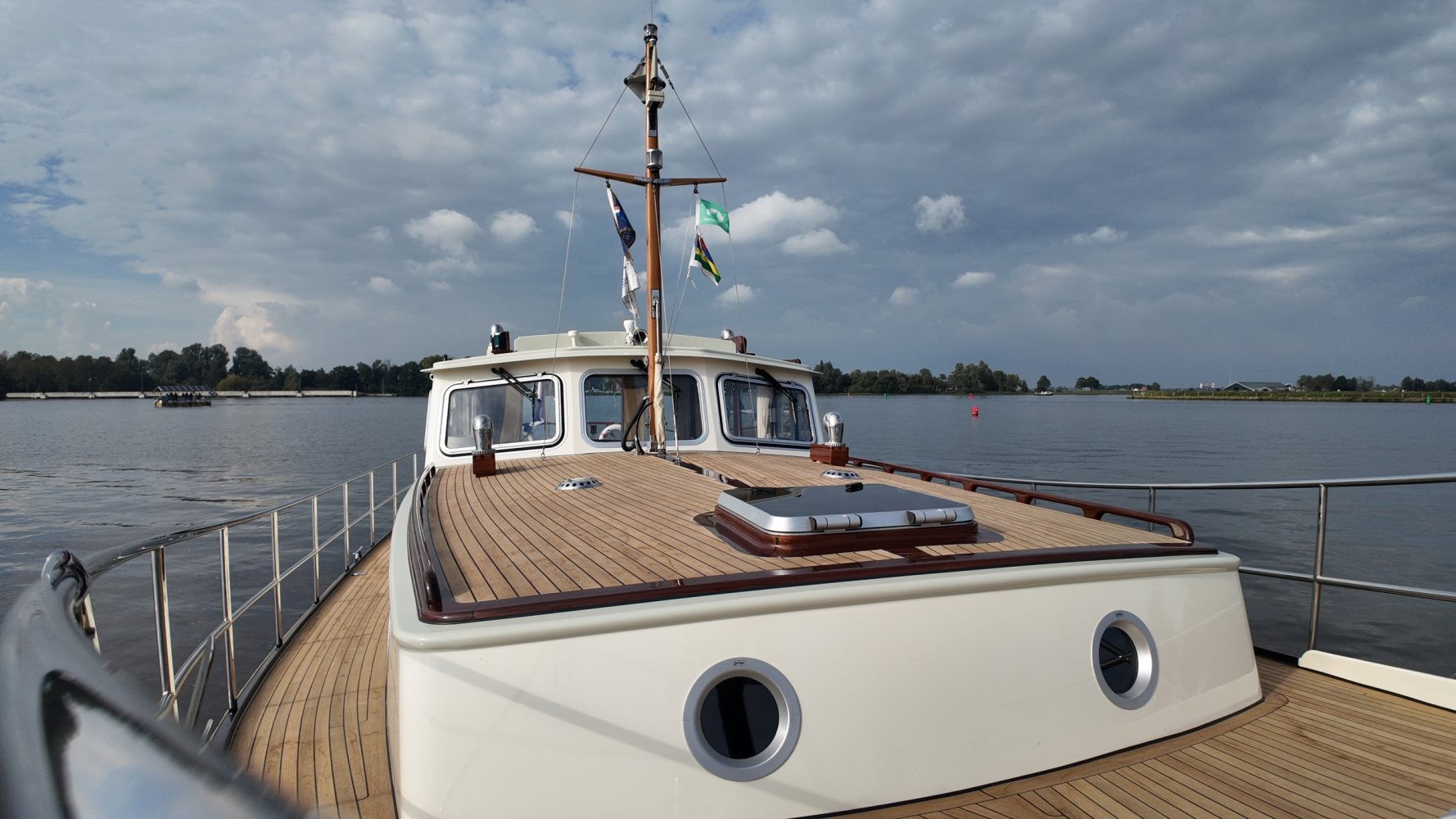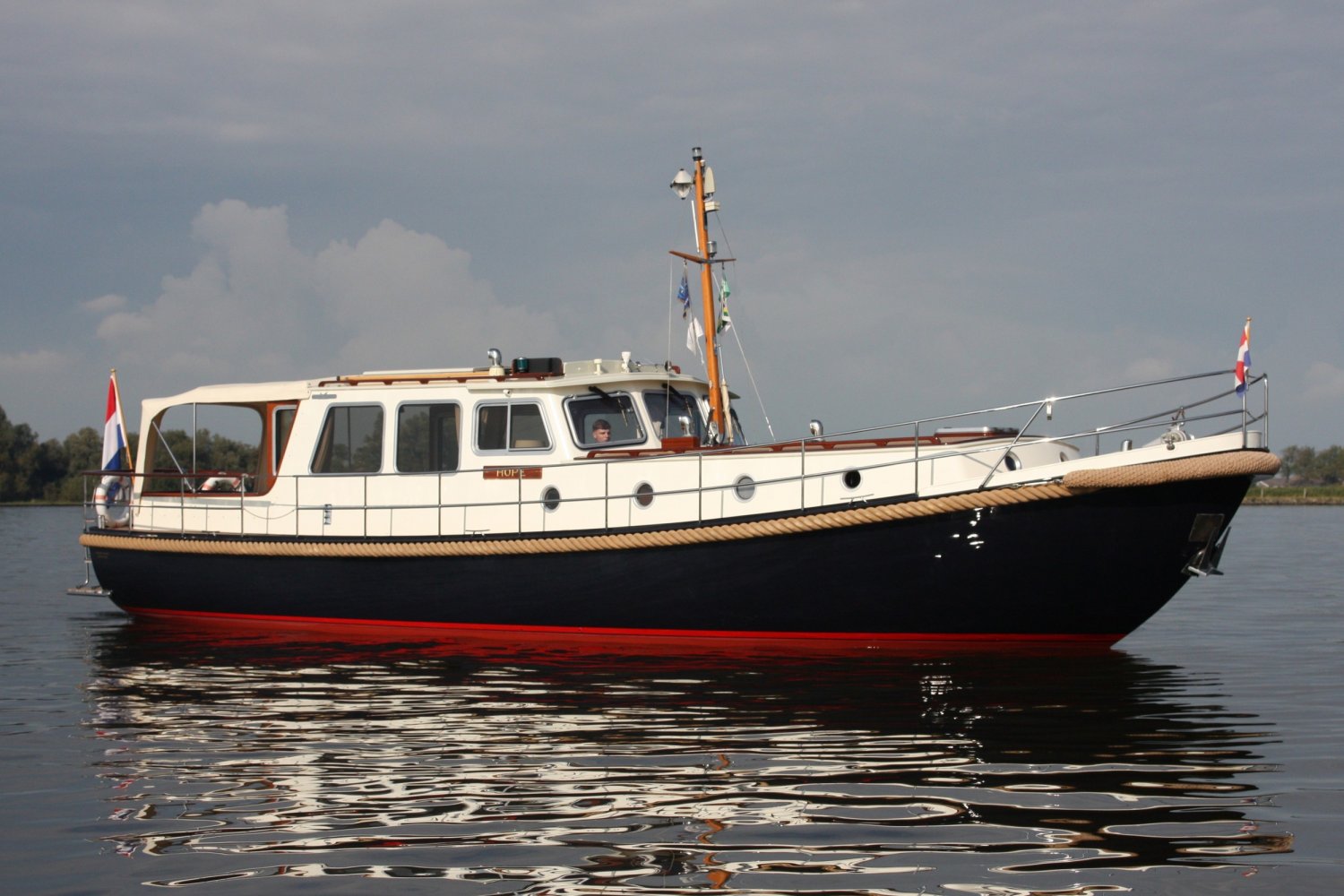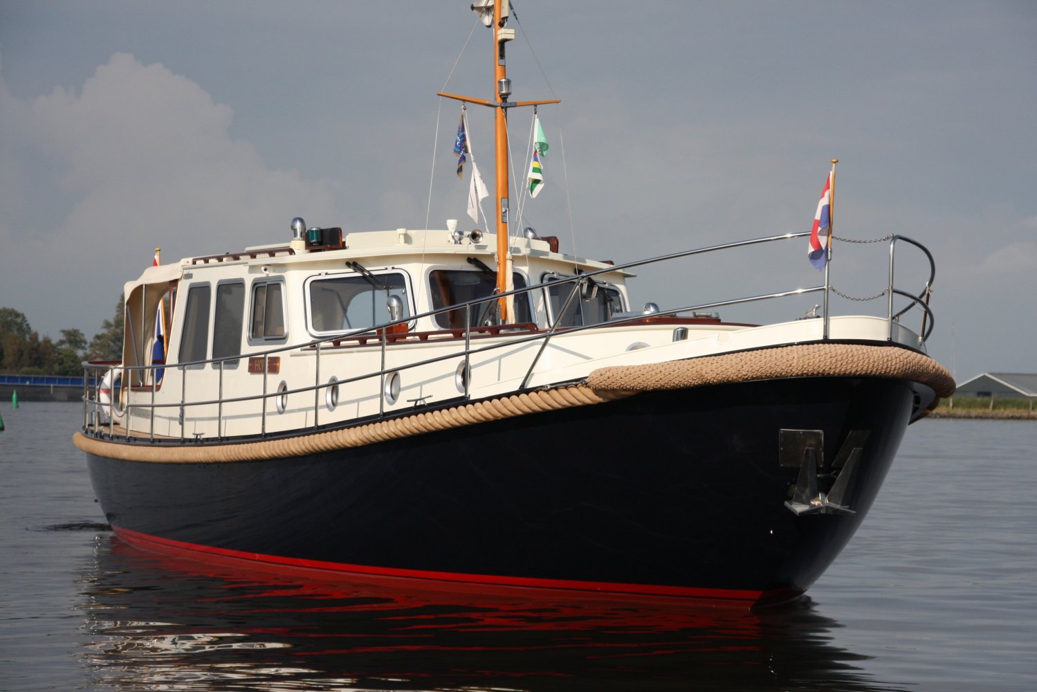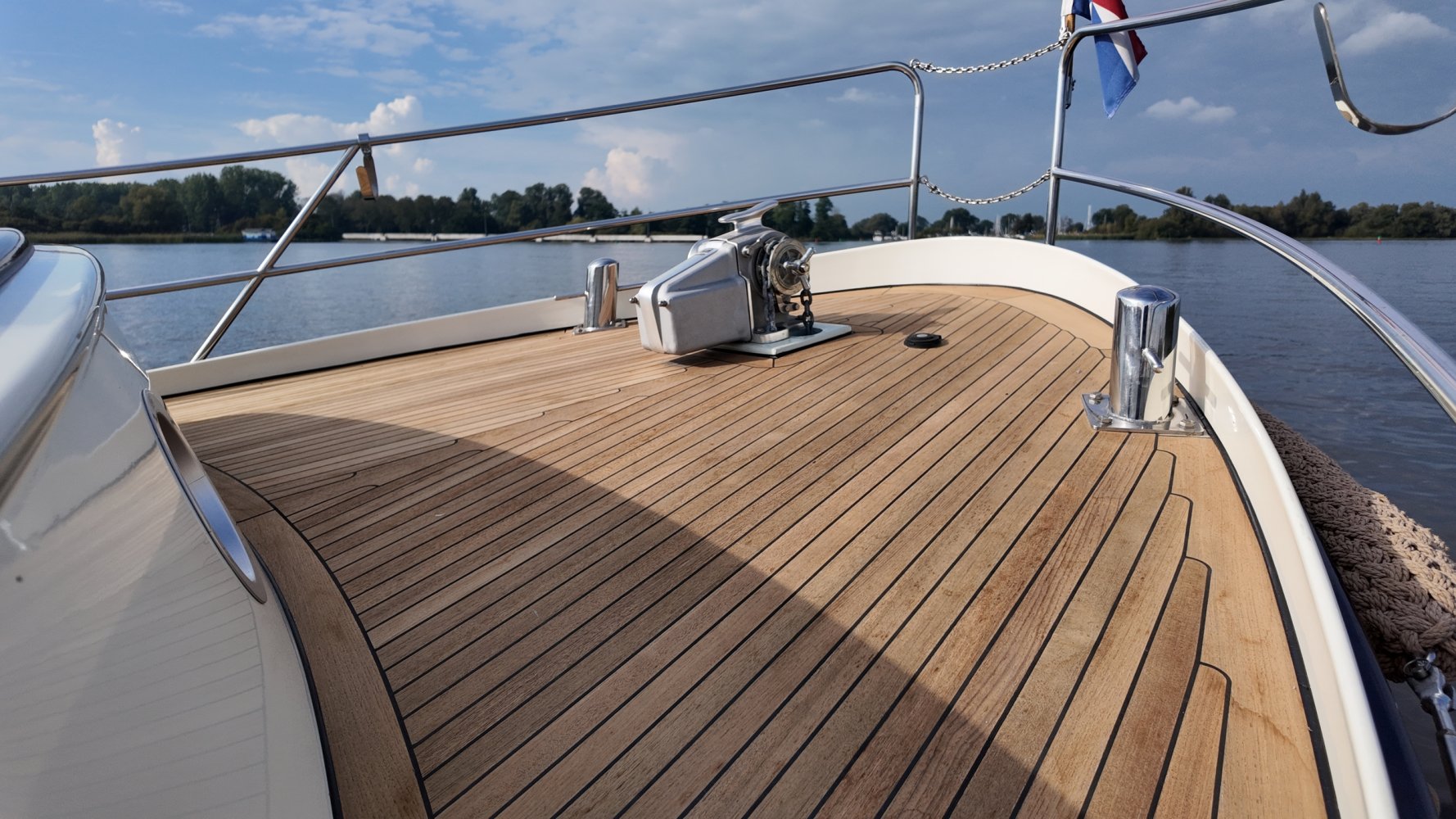 Die allerletzte jemals gebaute Valkvlet! Irgendetwas muss Philip Valk durch den Kopf gegangen sein, als er dieses Schiff an seine stolzen ersten Besitzer übergab. Damit endete auch eine lange Periode, Jahrzehnte, des traditionellen friesischen Yachtbaus! Die Valkvlet ist unter echten Kennern und Liebhabern ein Begriff. Hochwertig, immer runde Bilge und fast keine gleicht der anderen. Aber mit hohem Wiedererkennungswert. Es gibt auch einen Club von Valkvlet-Liebhabern, der sich regelmäßig zu Spaßveranstaltungen oder Segeltörns trifft. Wie dem auch sei, wir haben es hier mit einer Valkvlet 13.10 OK zu tun, die bis ins kleinste Detail original ist und auch sehr gut ausgestattet ist. So ist diese Valkvket 13.10 OK mit einem starken und sehr leisen Vetus-Deutz DT 66 Motor ausgestattet, der 170 PS leistet. Das Boot verfügt über proportionale Bug- und Heckstrahlruder (!), ein komplettes Set an Navigationsinstrumenten einschließlich Autopilot, ein Kamerasystem, einen Generator, Zentralheizung und Doppelverglasung, etc etc. Eine Badeplattform mit Badeleiter und Fahrradständer vervollständigen das Schiff.