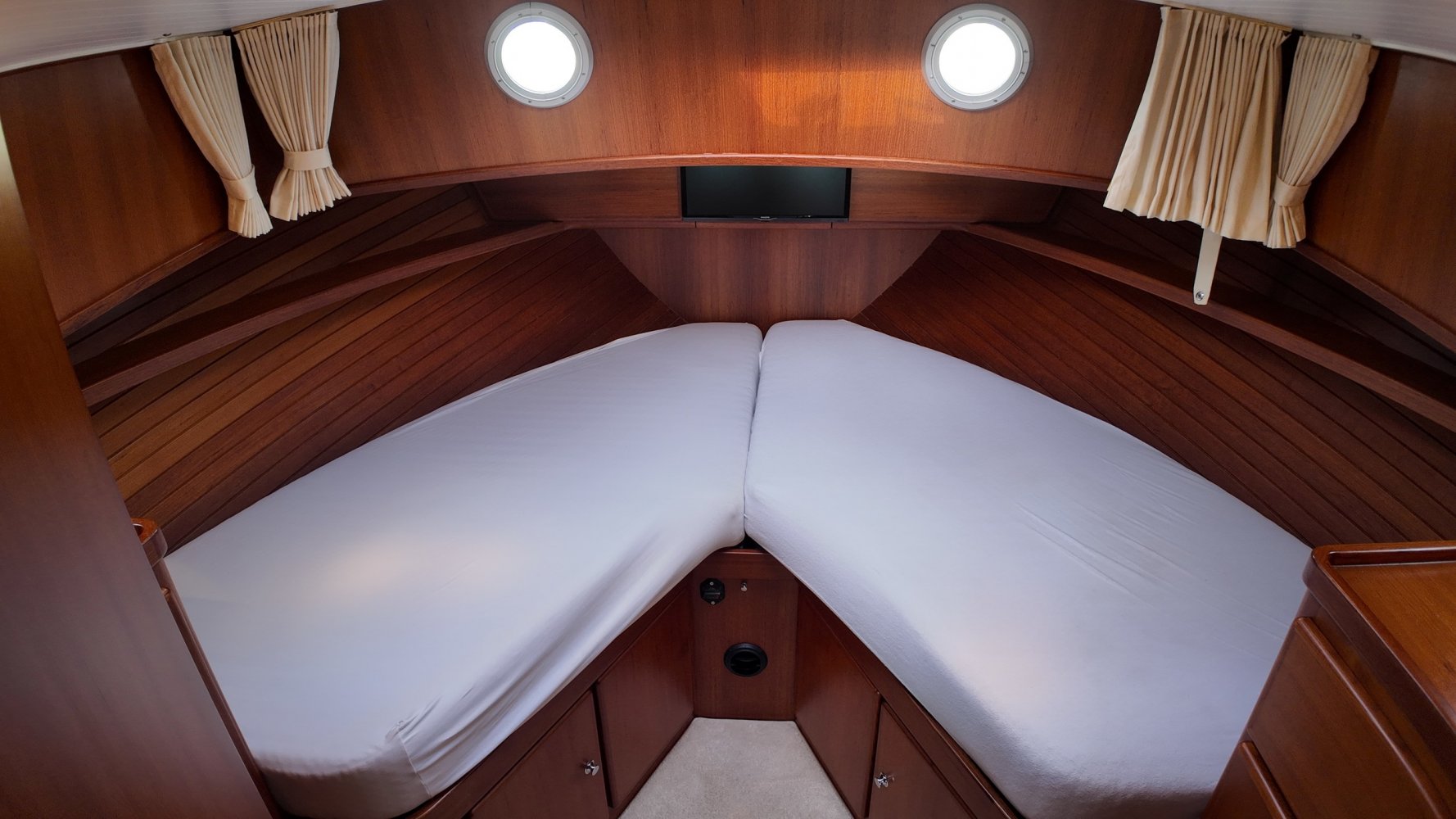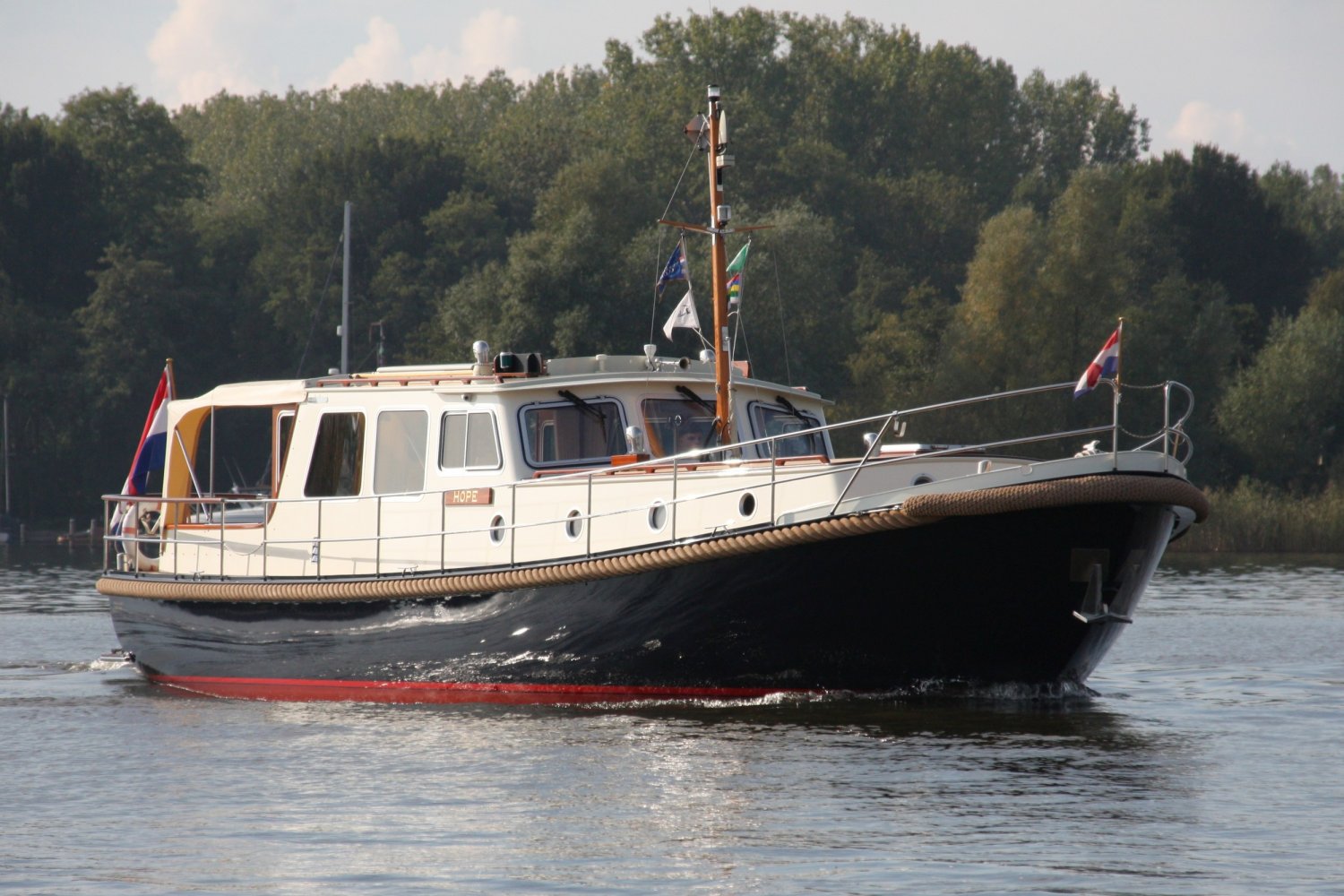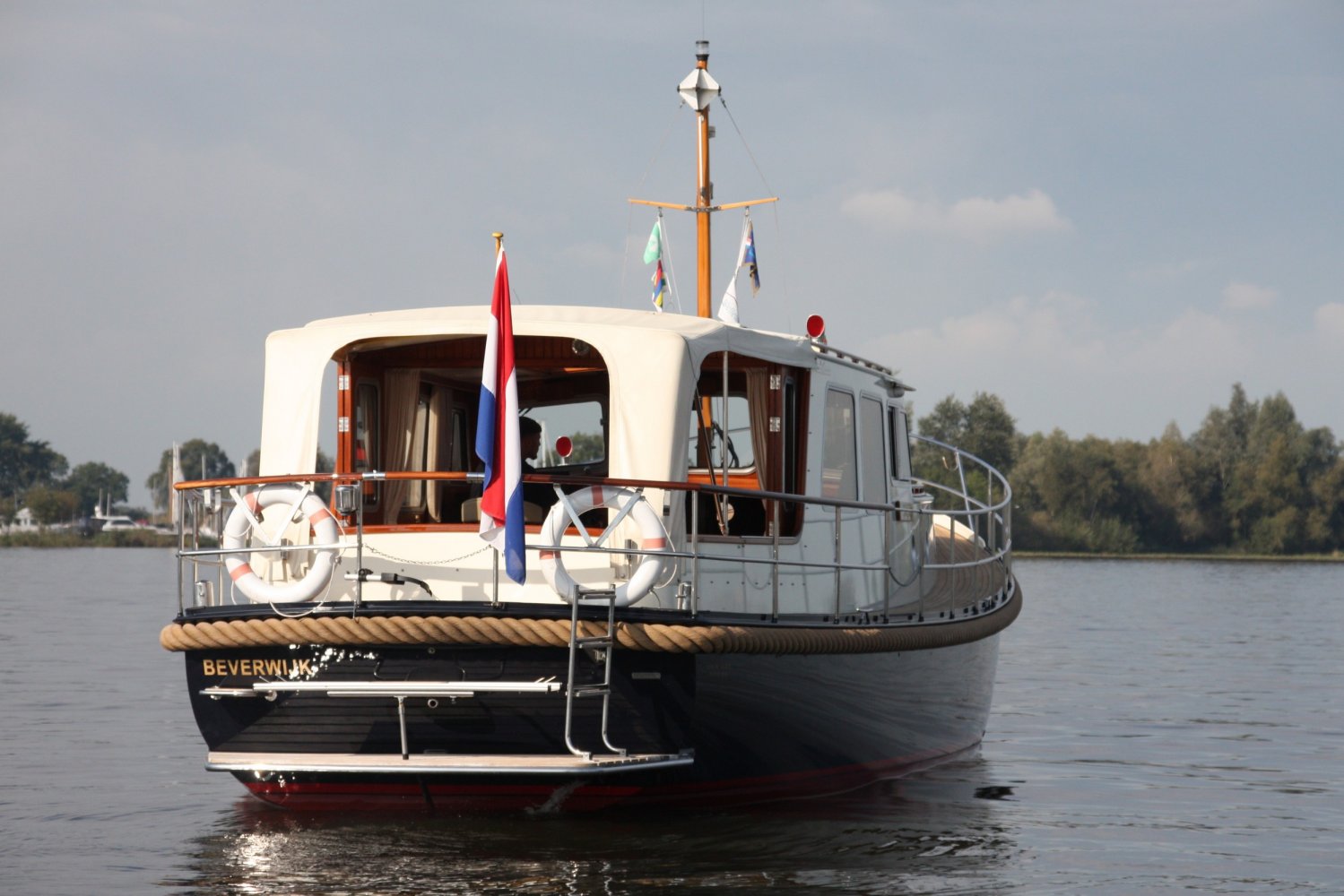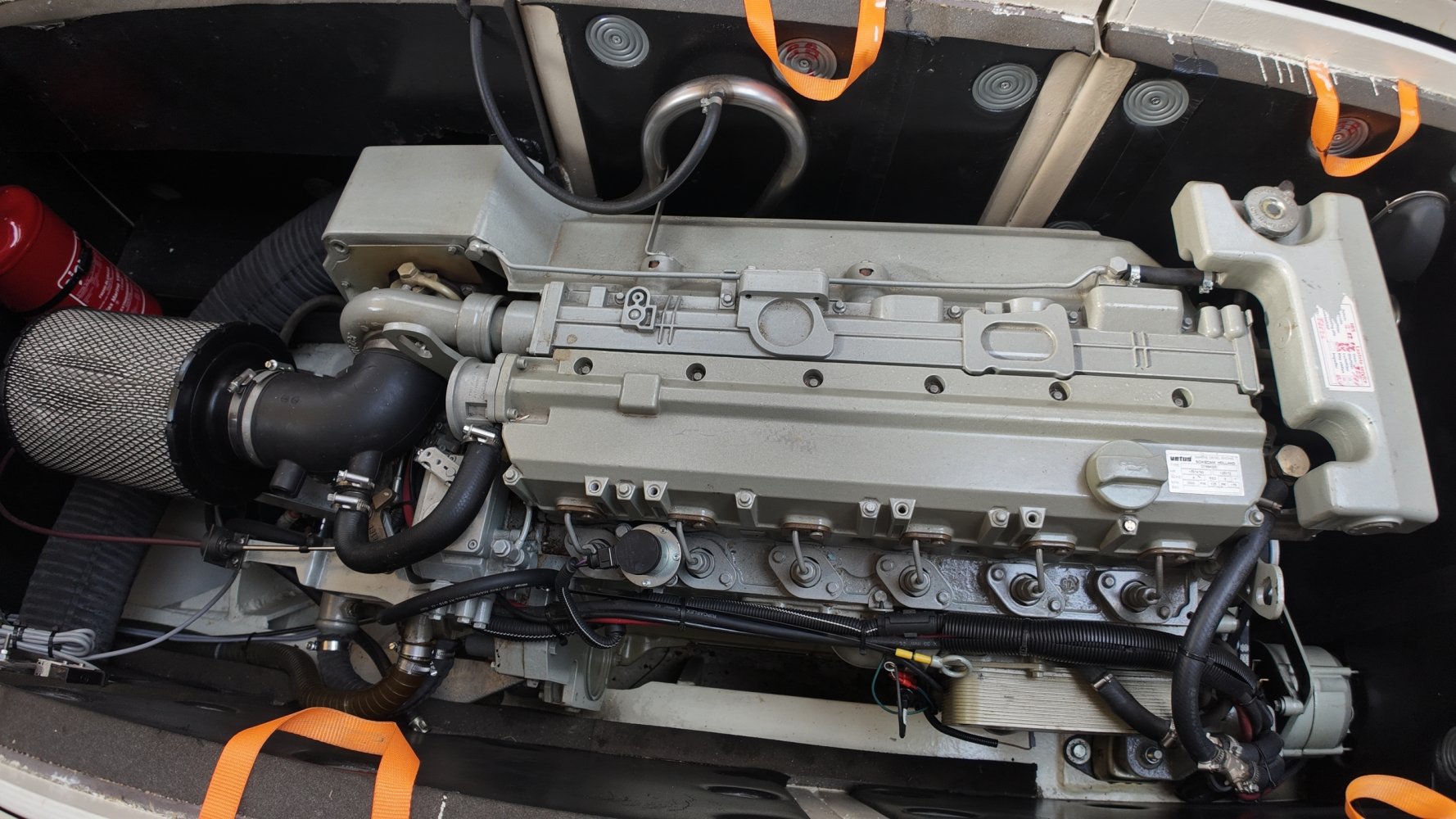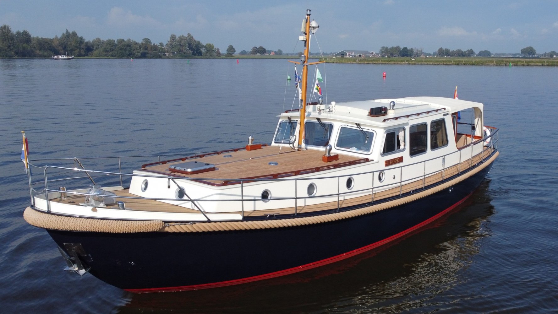 Die allerletzte jemals gebaute Valkvlet! Irgendetwas muss Philip Valk durch den Kopf gegangen sein, als er dieses Schiff an seine stolzen ersten Besitzer übergab. Damit endete auch eine lange Periode, Jahrzehnte, des traditionellen friesischen Yachtbaus! Die Valkvlet ist unter echten Kennern und Liebhabern ein Begriff. Hochwertig, immer runde Bilge und fast keine gleicht der anderen. Aber mit hohem Wiedererkennungswert. Es gibt auch einen Club von Valkvlet-Liebhabern, der sich regelmäßig zu Spaßveranstaltungen oder Segeltörns trifft. Wie dem auch sei, wir haben es hier mit einer Valkvlet 13.10 OK zu tun, die bis ins kleinste Detail original ist und auch sehr gut ausgestattet ist. So ist diese Valkvket 13.10 OK mit einem starken und sehr leisen Vetus-Deutz DT 66 Motor ausgestattet, der 170 PS leistet. Das Boot verfügt über proportionale Bug- und Heckstrahlruder (!), ein komplettes Set an Navigationsinstrumenten einschließlich Autopilot, ein Kamerasystem, einen Generator, Zentralheizung und Doppelverglasung, etc etc. Eine Badeplattform mit Badeleiter und Fahrradständer vervollständigen das Schiff.