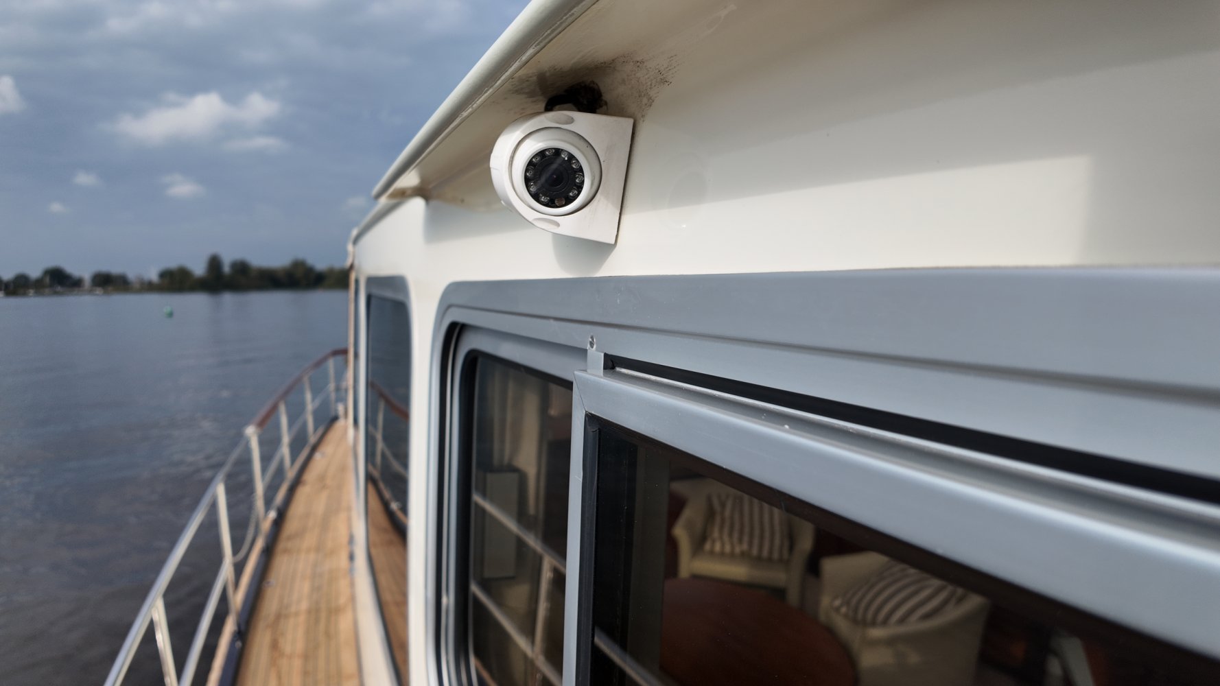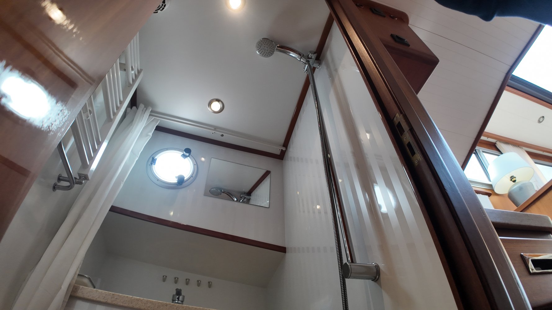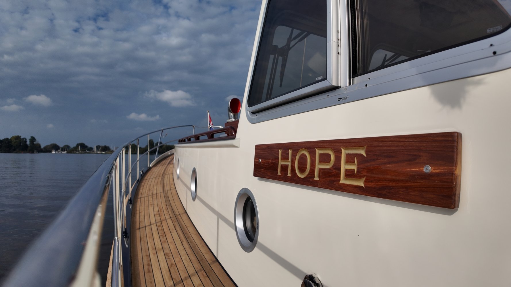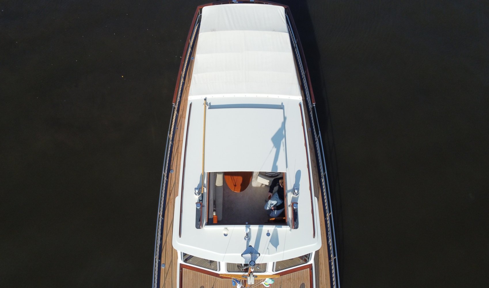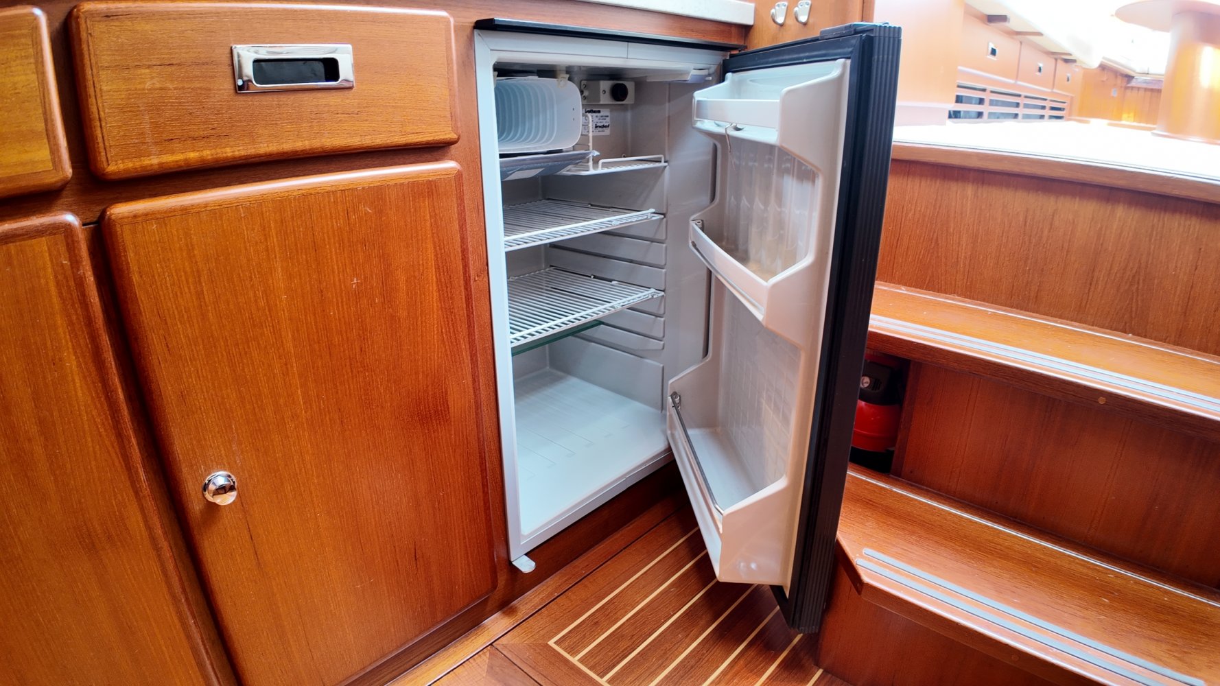 Edelstahl, rund um das Cockpit mit Teakholz verkleidet