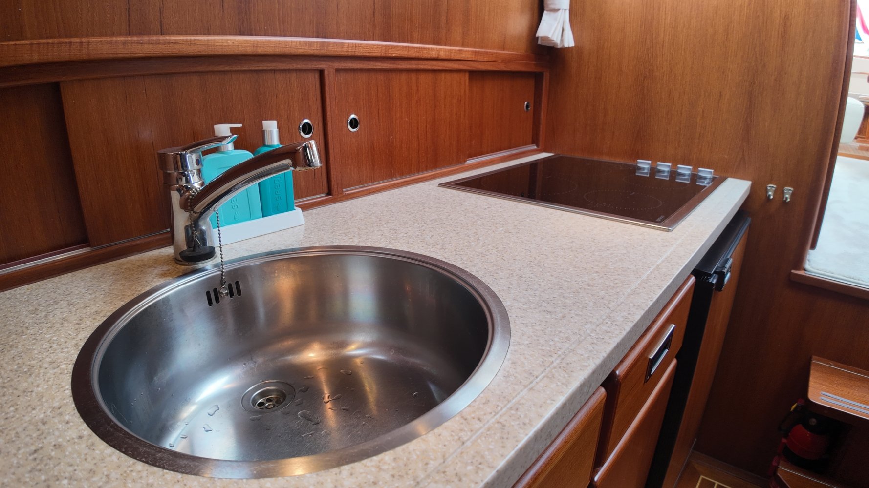 Das Schiff ist mit einer Waschmaschine/Trockner-Kombination ausgestattet.