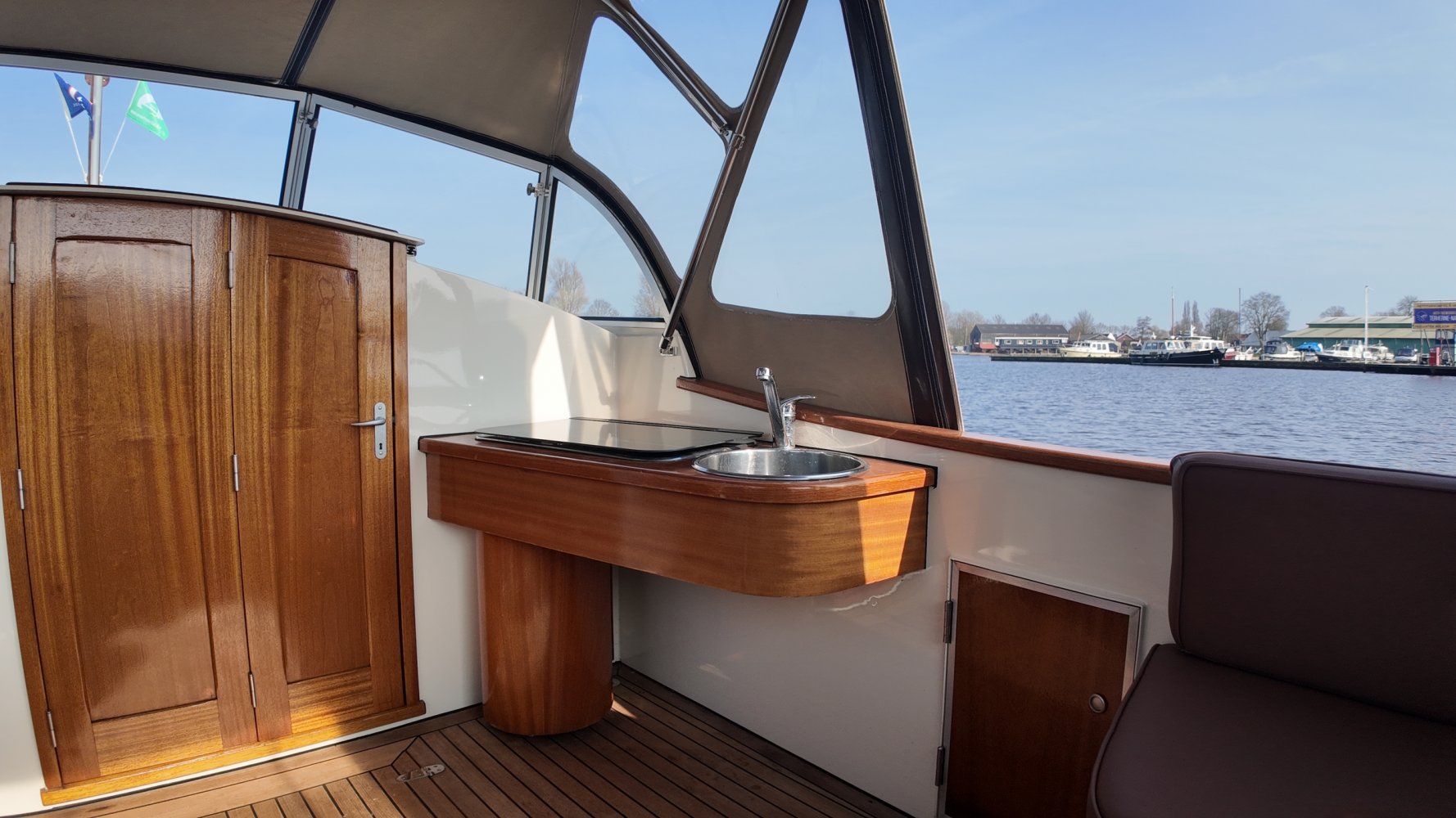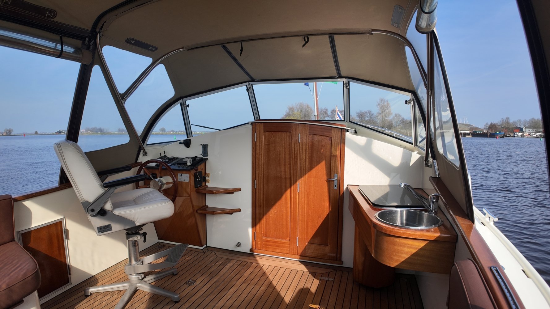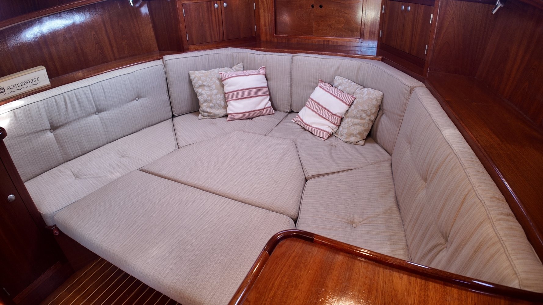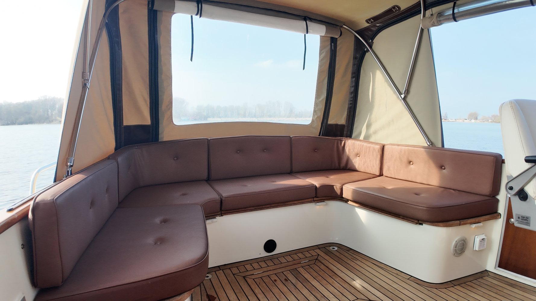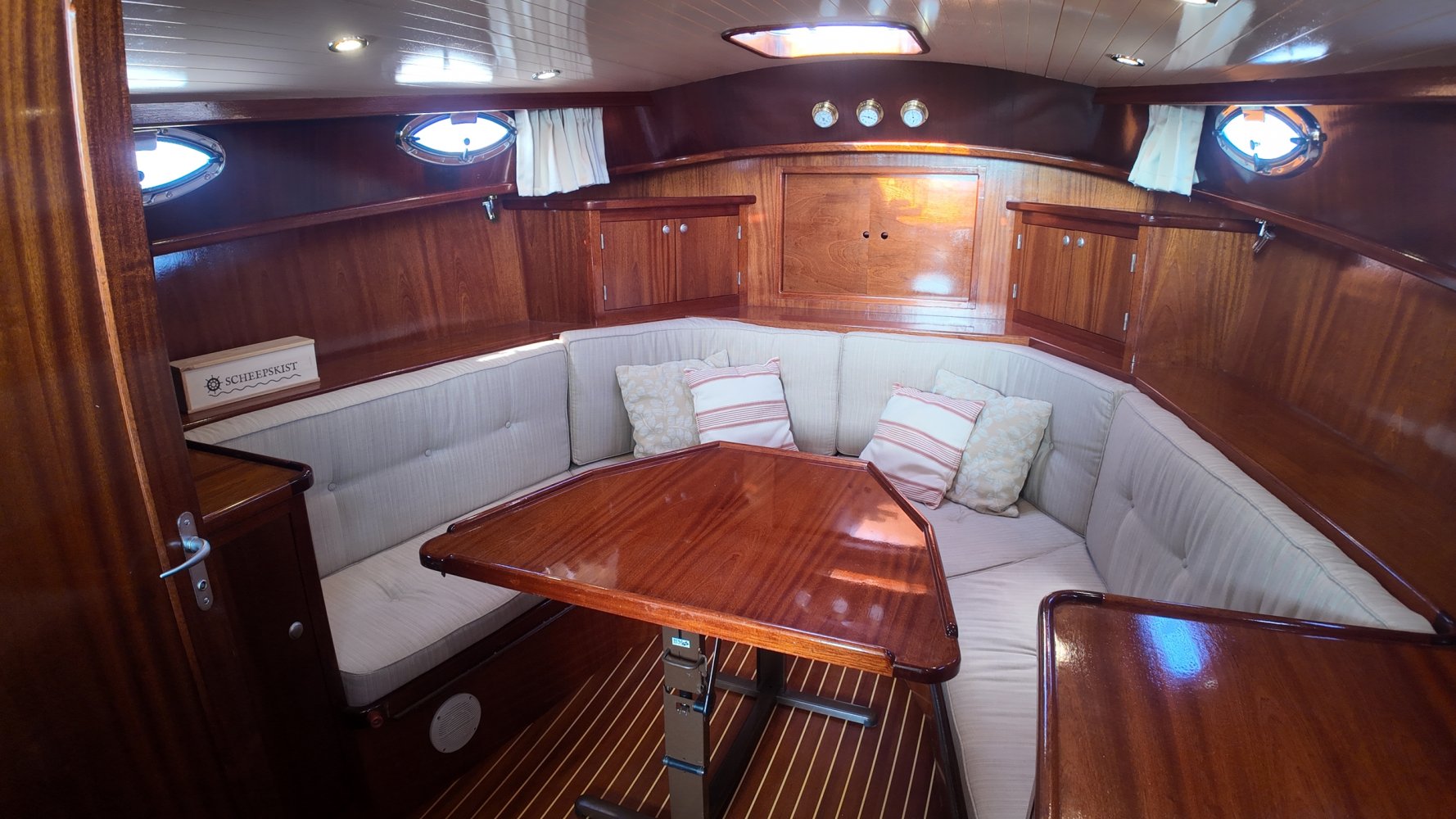 Teakholz auf den Bänken und dem Boden im Cockpit.
