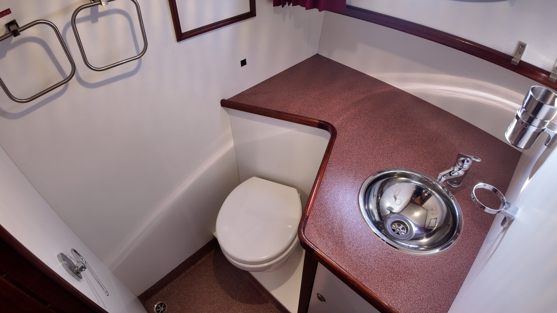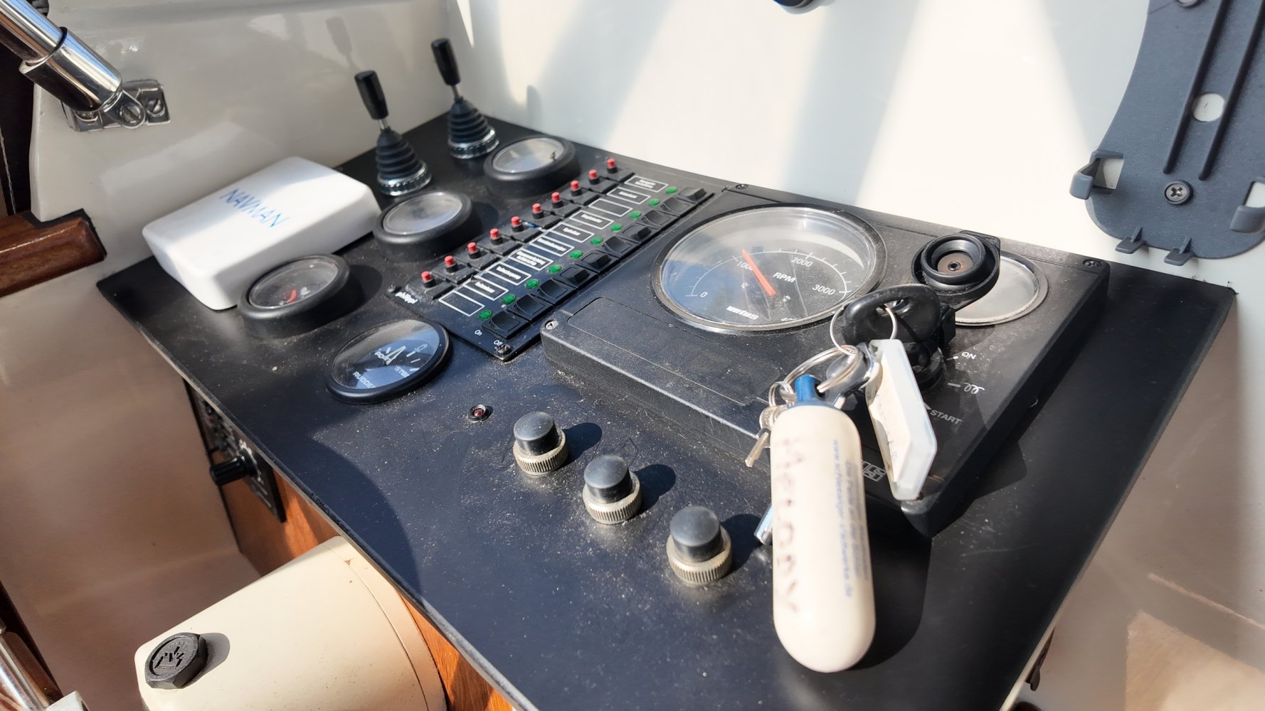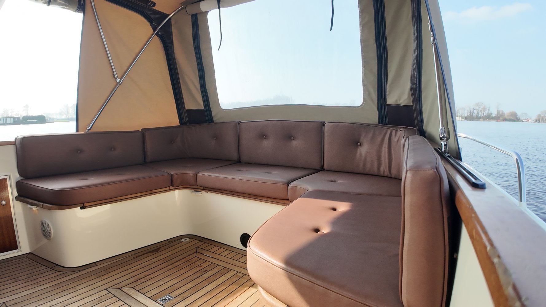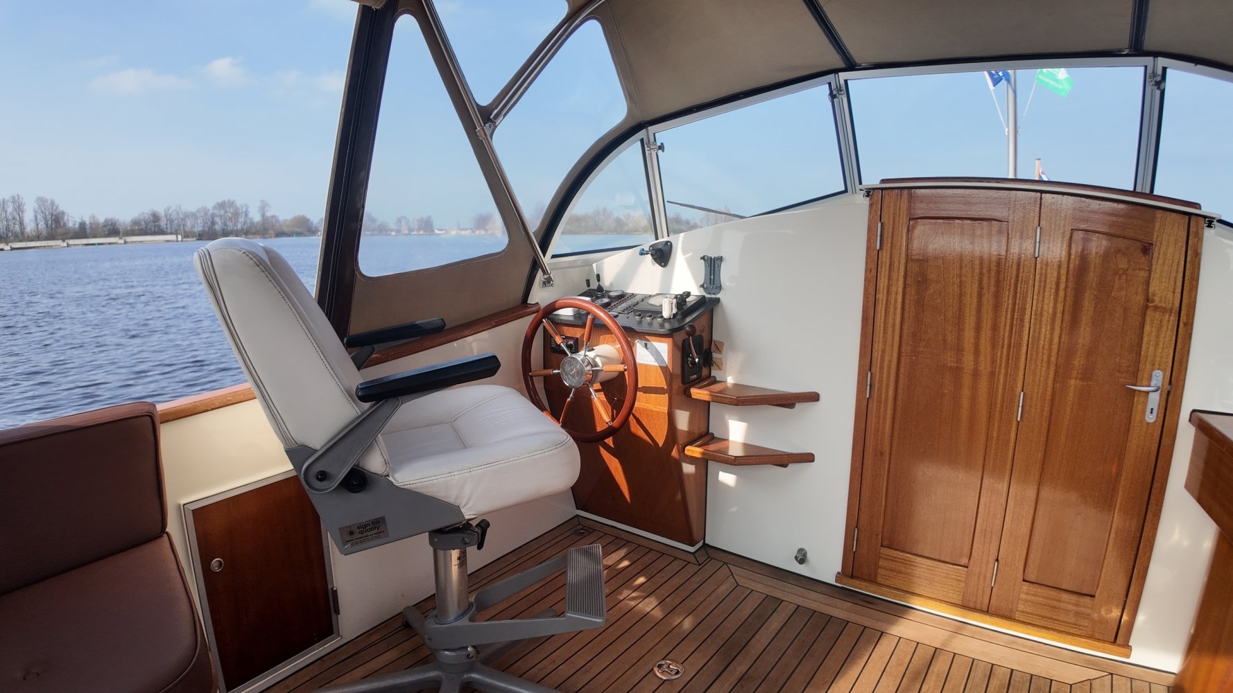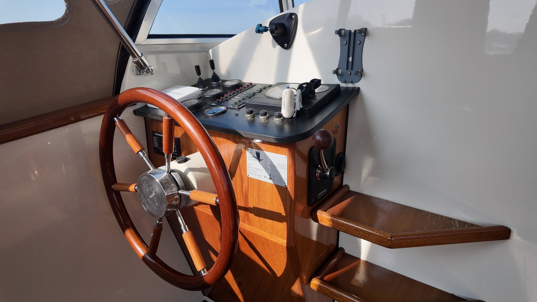 Teakholz auf den Bänken und dem Boden im Cockpit.